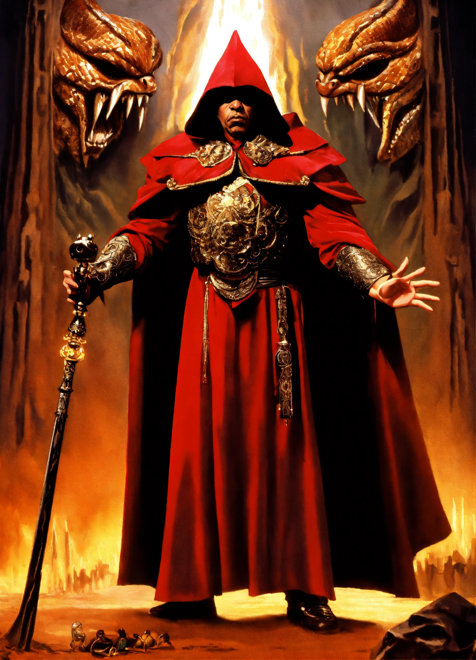 In the 1982 film, thulsa doom (portrayed by james earl jones) is the enacting lead antagonist. he is a stygian whose power as a strong and renowned wizard places him as the leader of the unnamed snake cult that grows to be more powerful than most aspiring cults of the same sort.