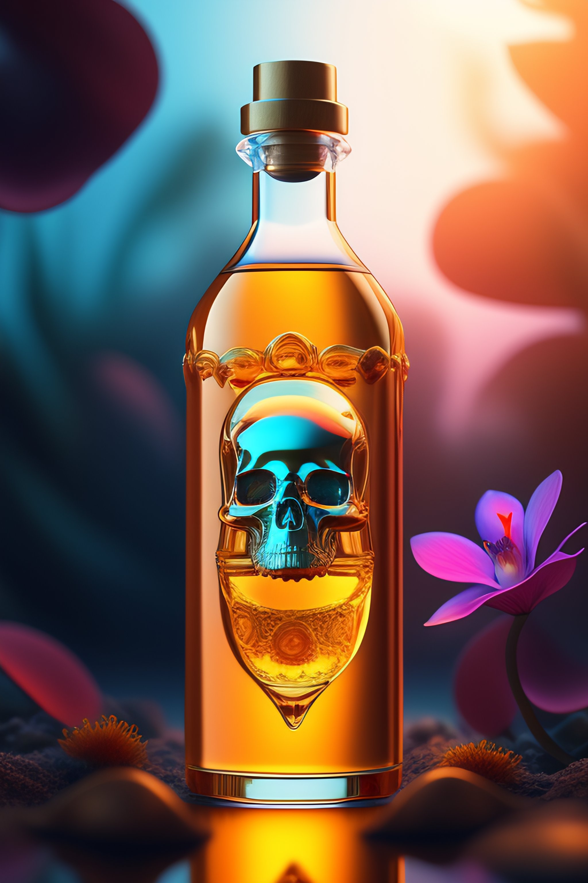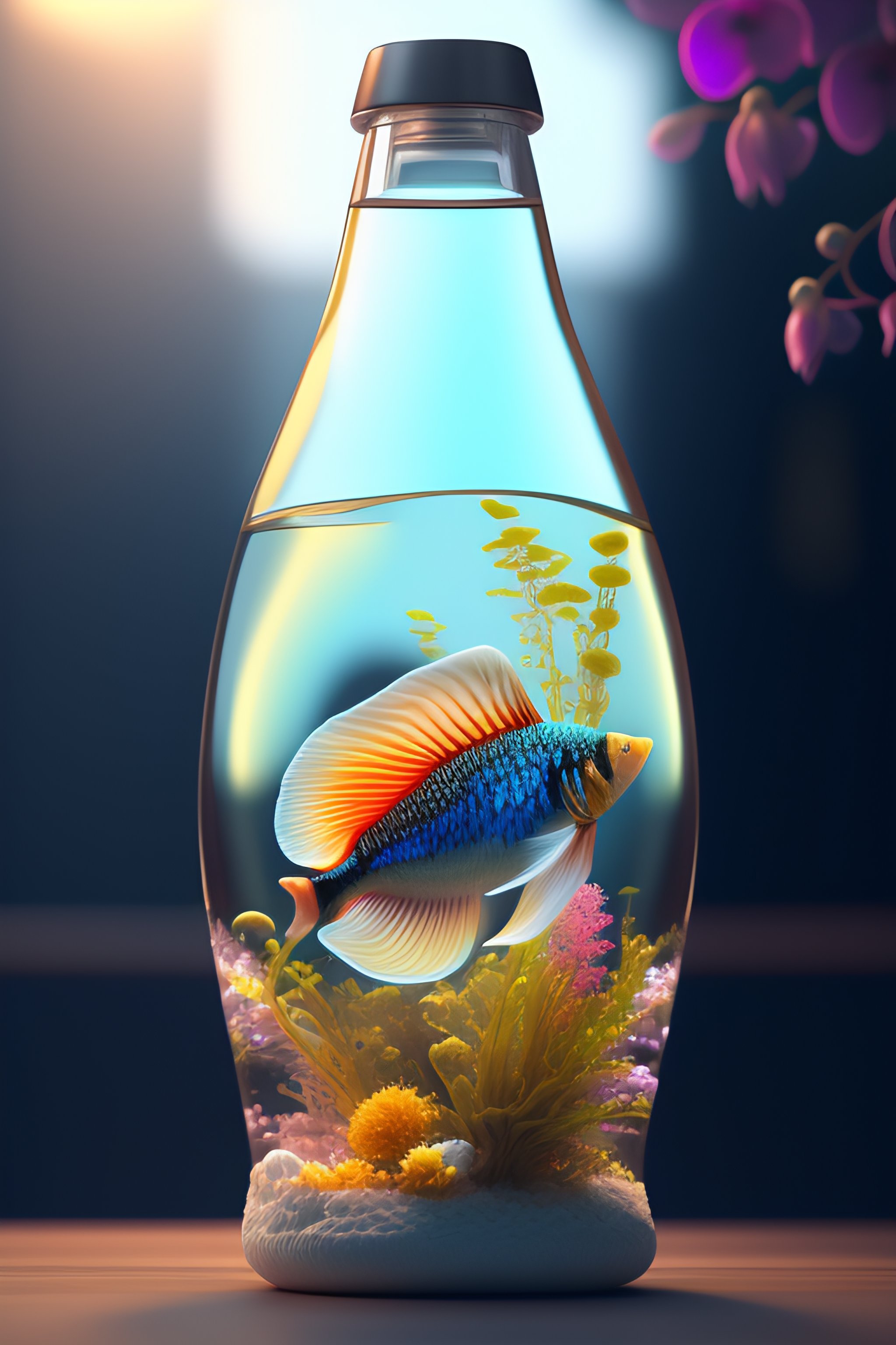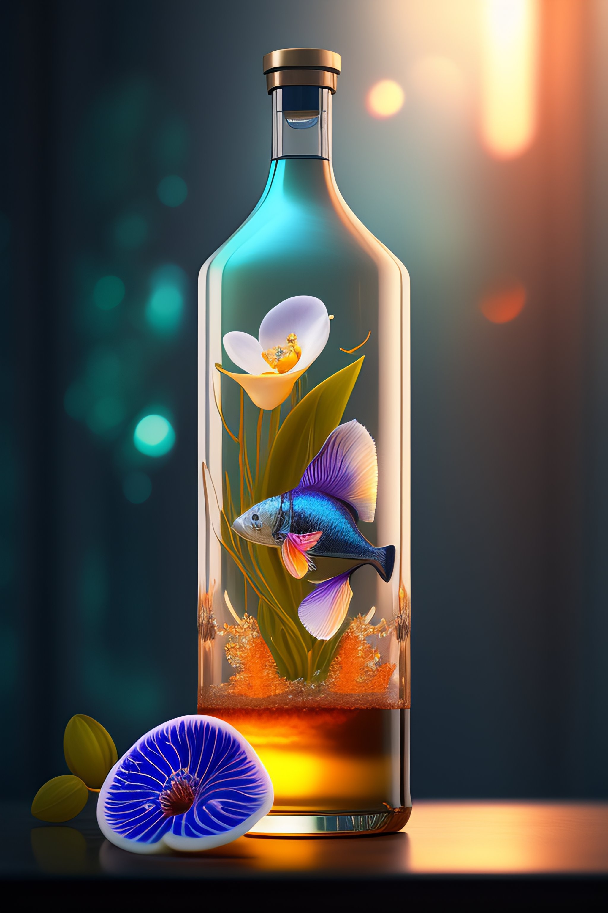 A bottle of coke, nautilus, orchid, skull, betta fish, bioluminiscent creatures, intricate artwork by tooth wu and wlop and beeple. octane render, trending on artstation, very coherent symmetrical artwork. cinematic, hyper realism, high detail, octane render, 8k