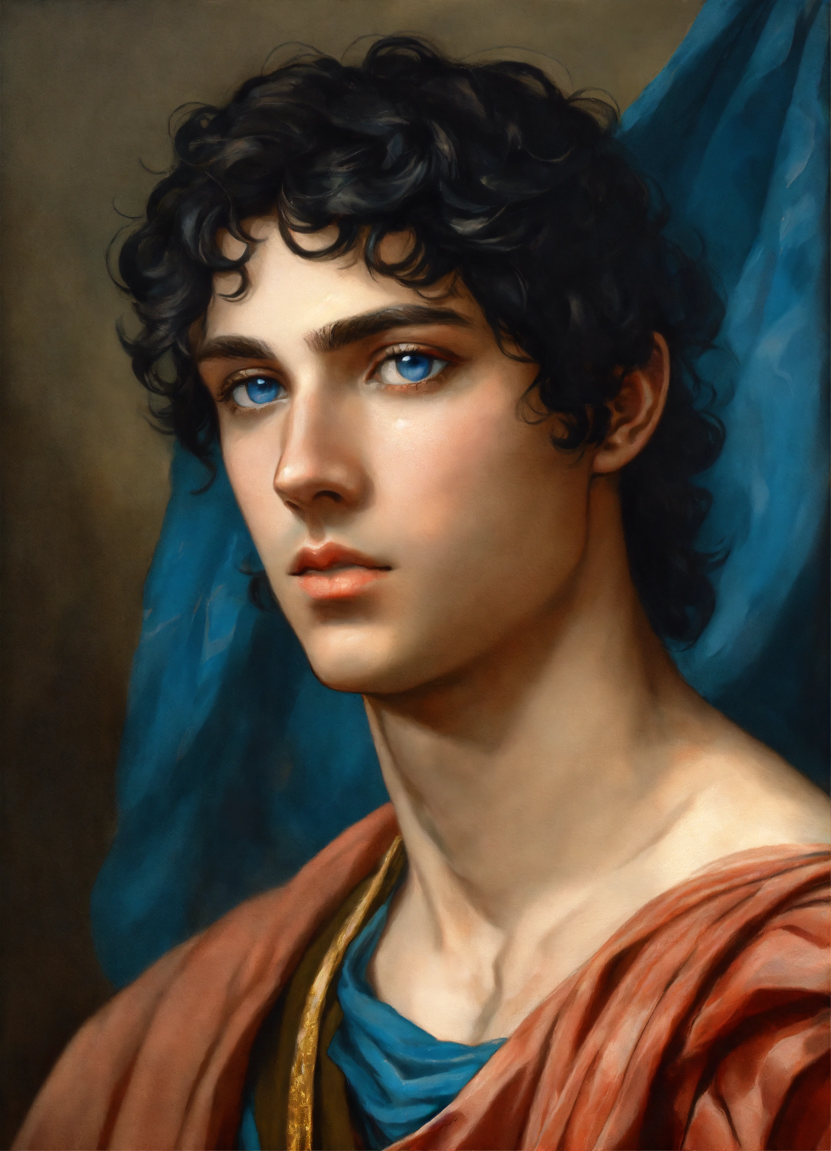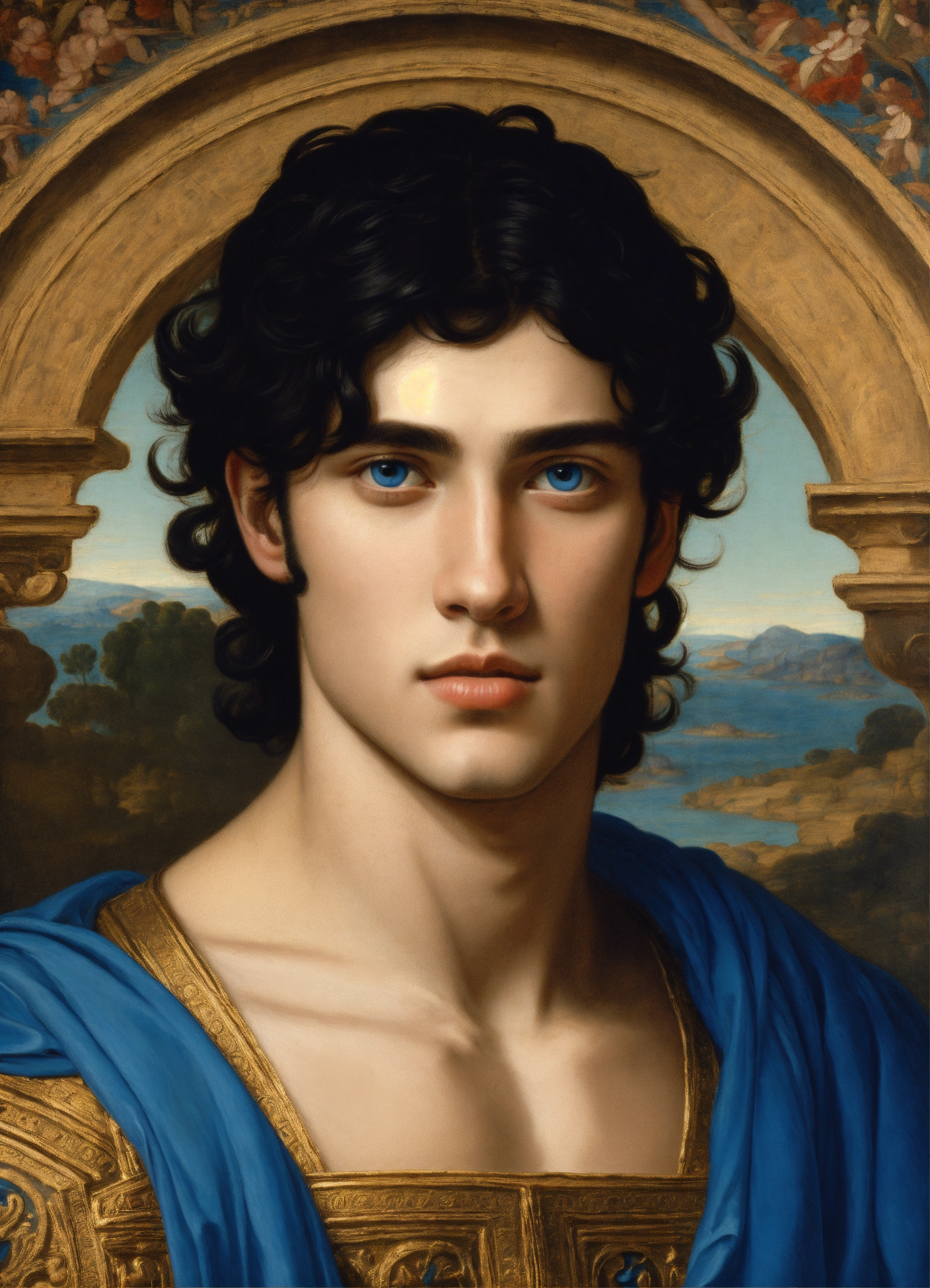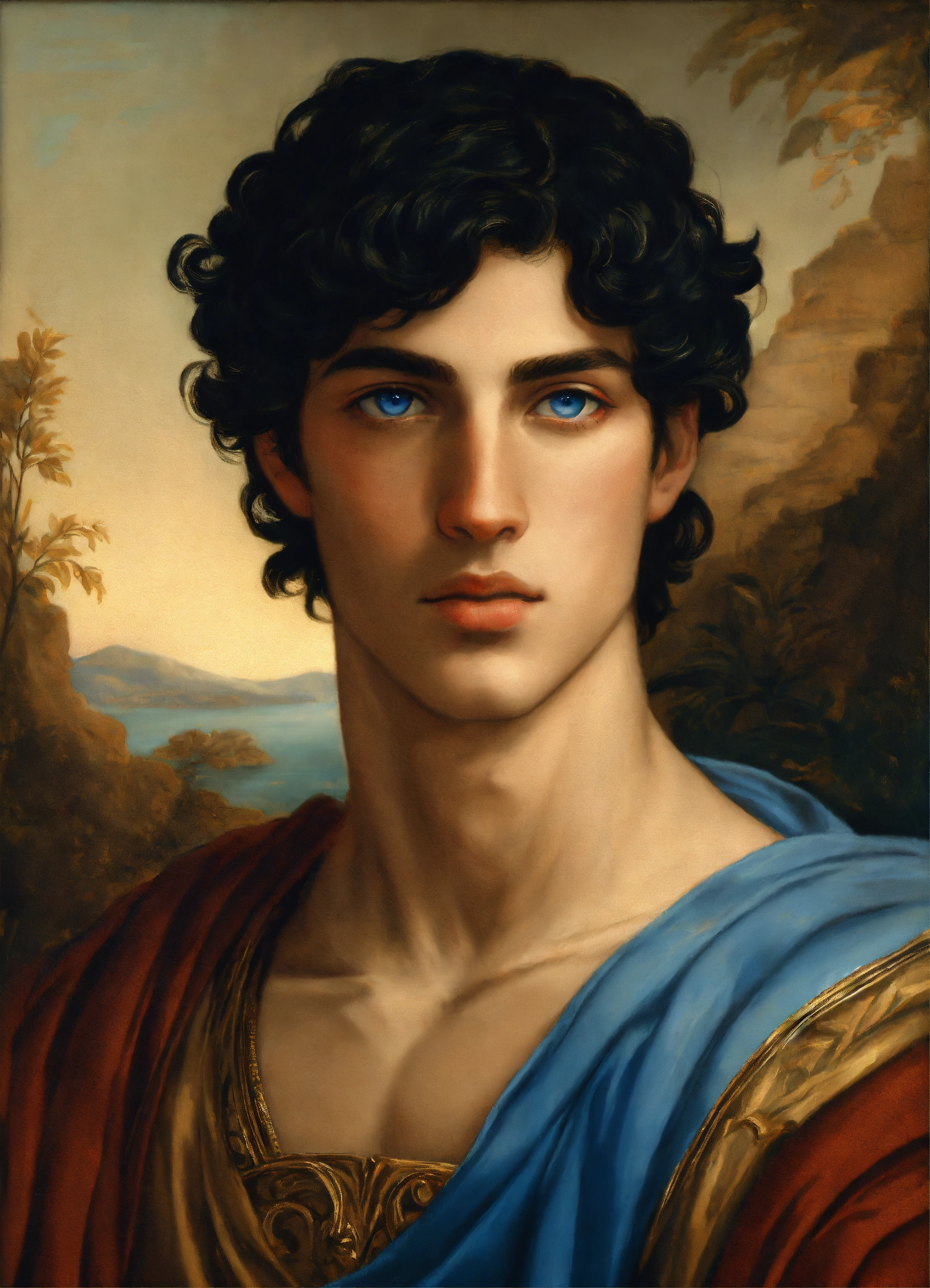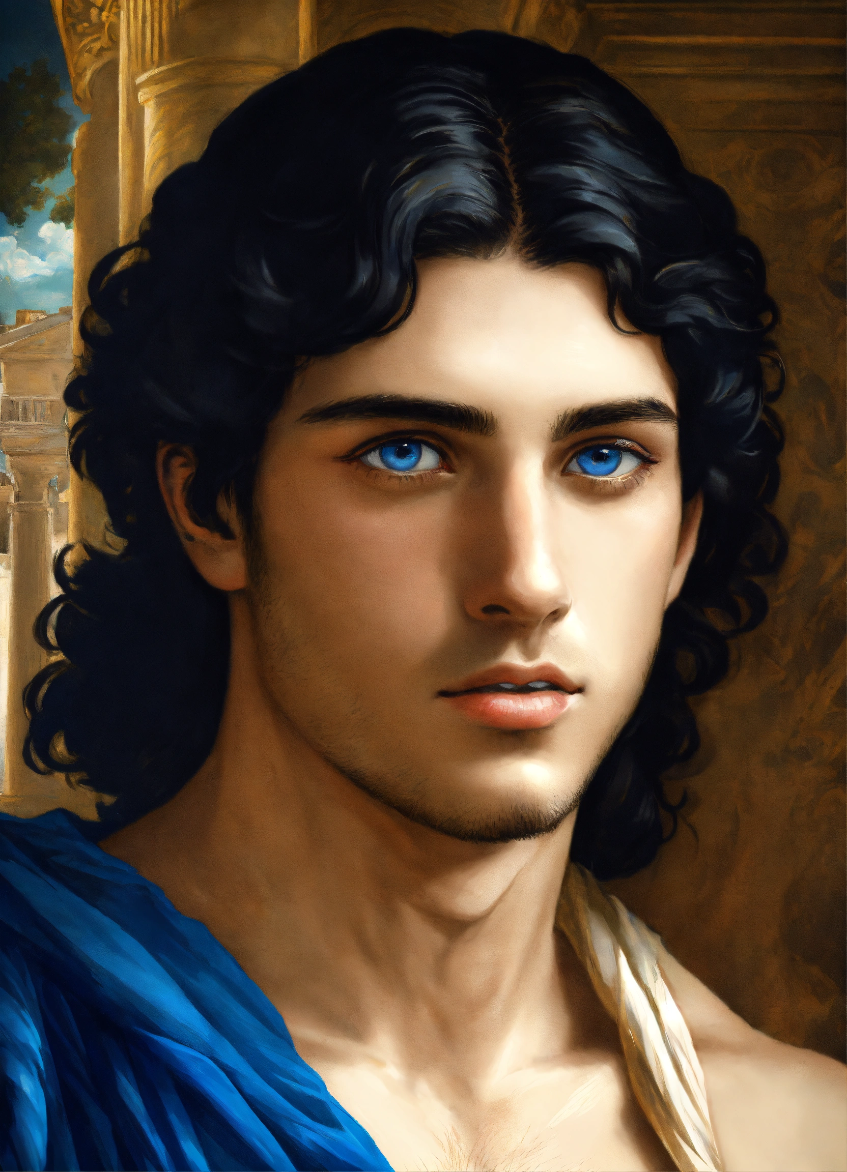 Male young greek with black hair and blue eyes