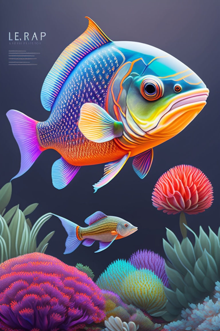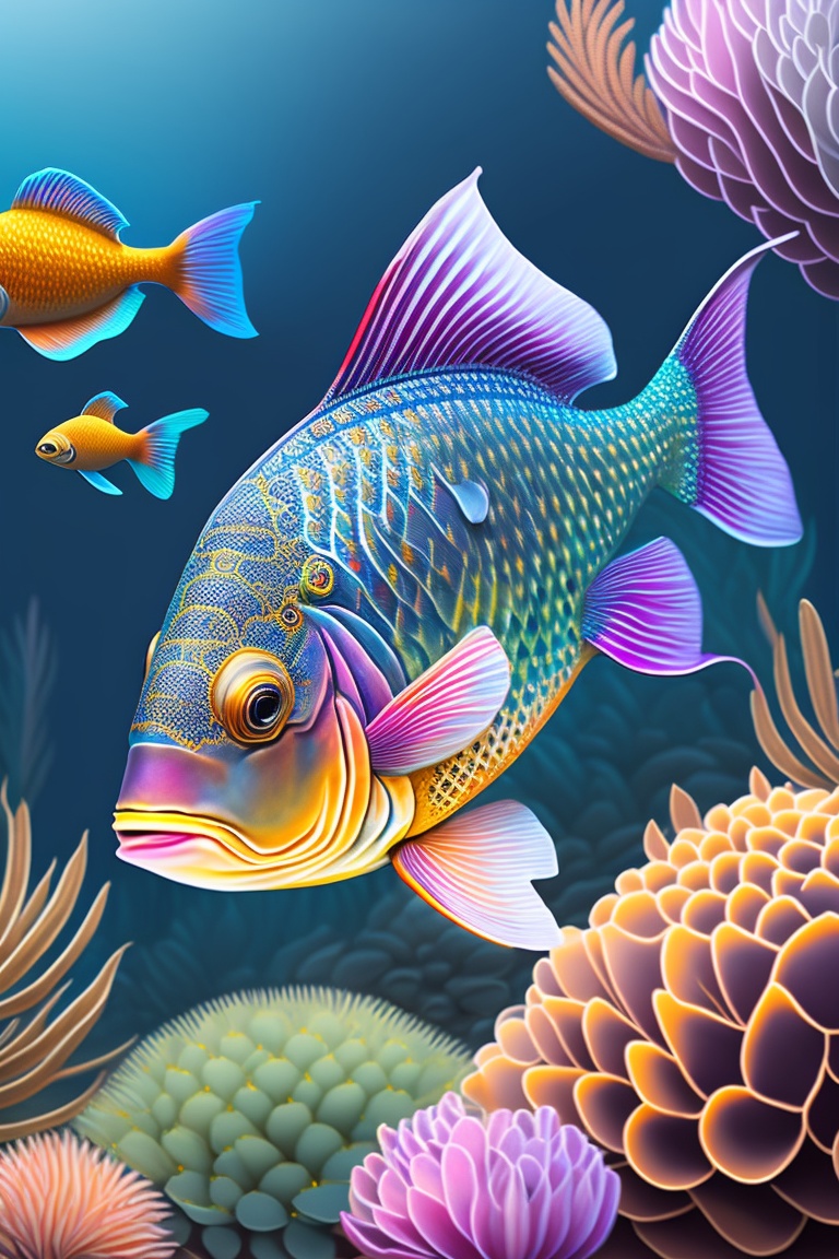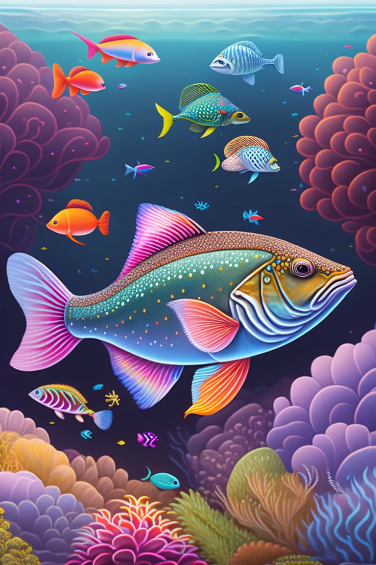 Large fish drawing, dynamic and intricate illustrations, the underwater world focused on fish. combines bold linework, vibrant colors, and meticulous detailing to bring these aquatic creatures to life
