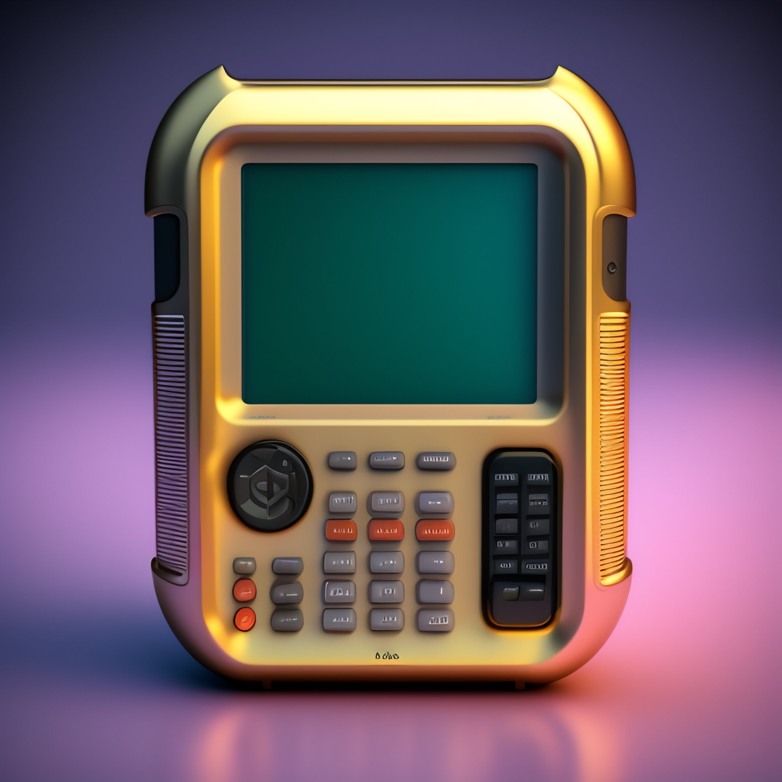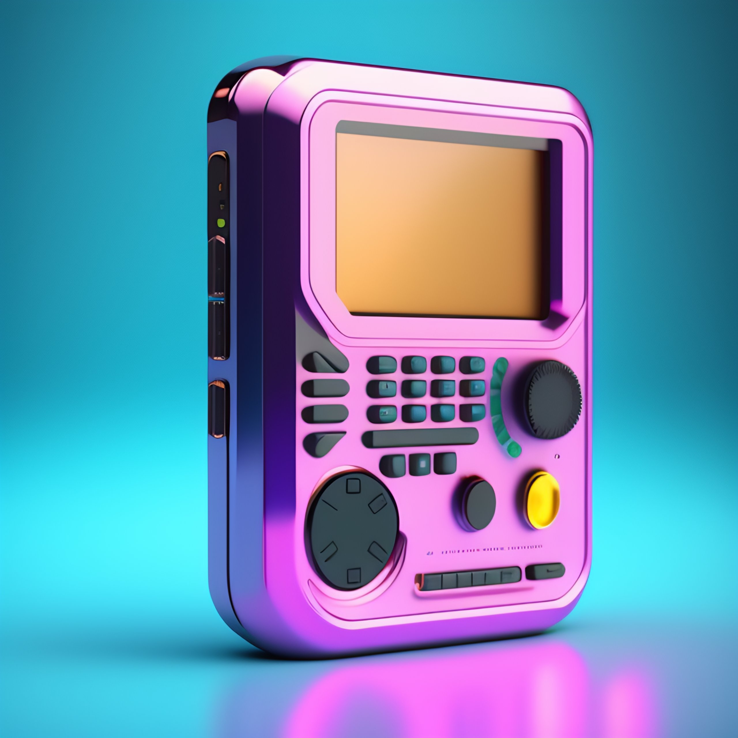 Vintage personal handheld computer device, 1990s, c4d render, vaporwave aesthetic, product photography