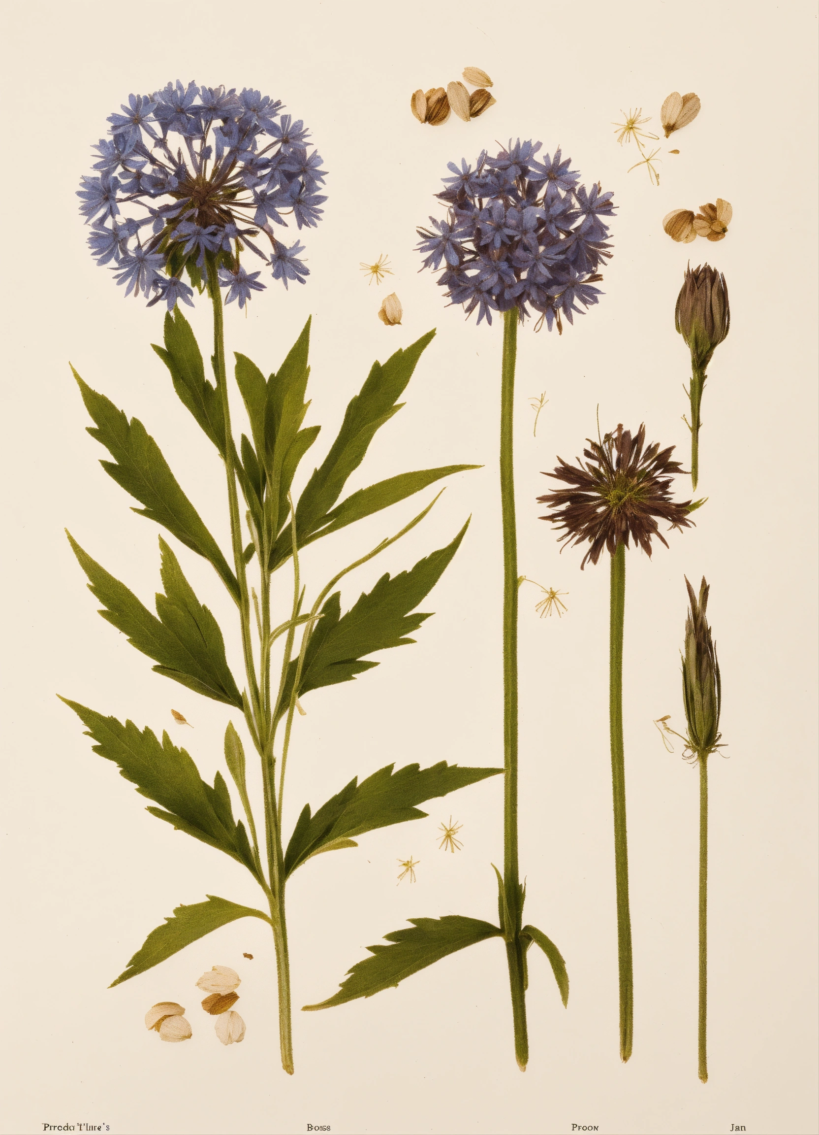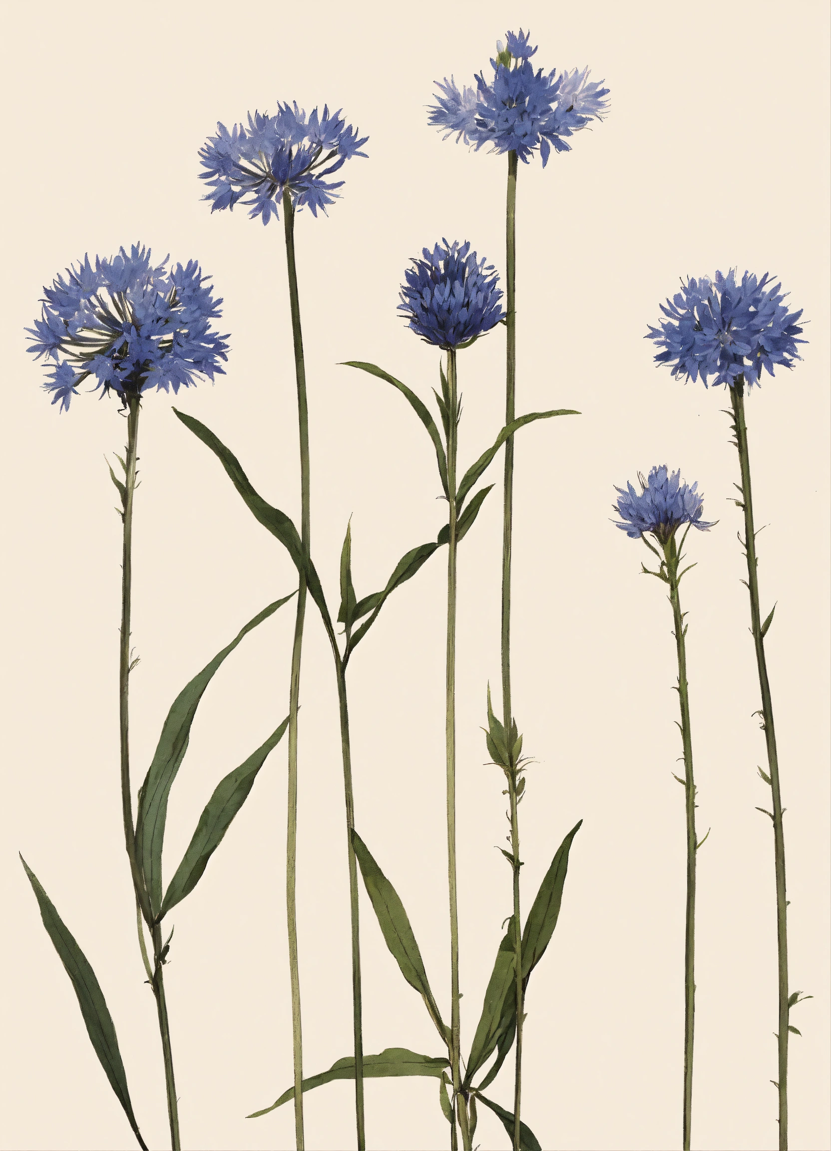 Minimalistic pressed dried bachelor's button illustrations