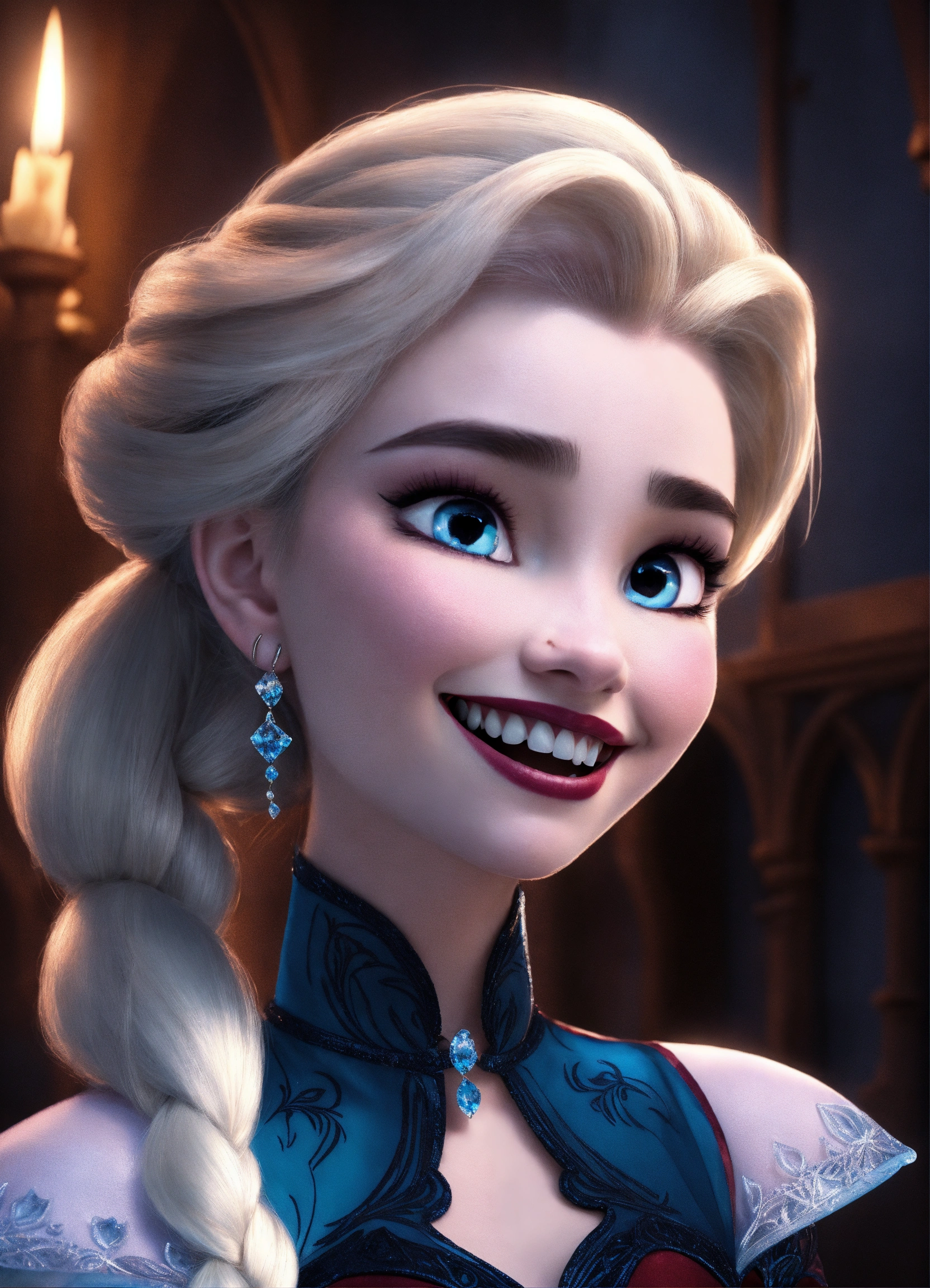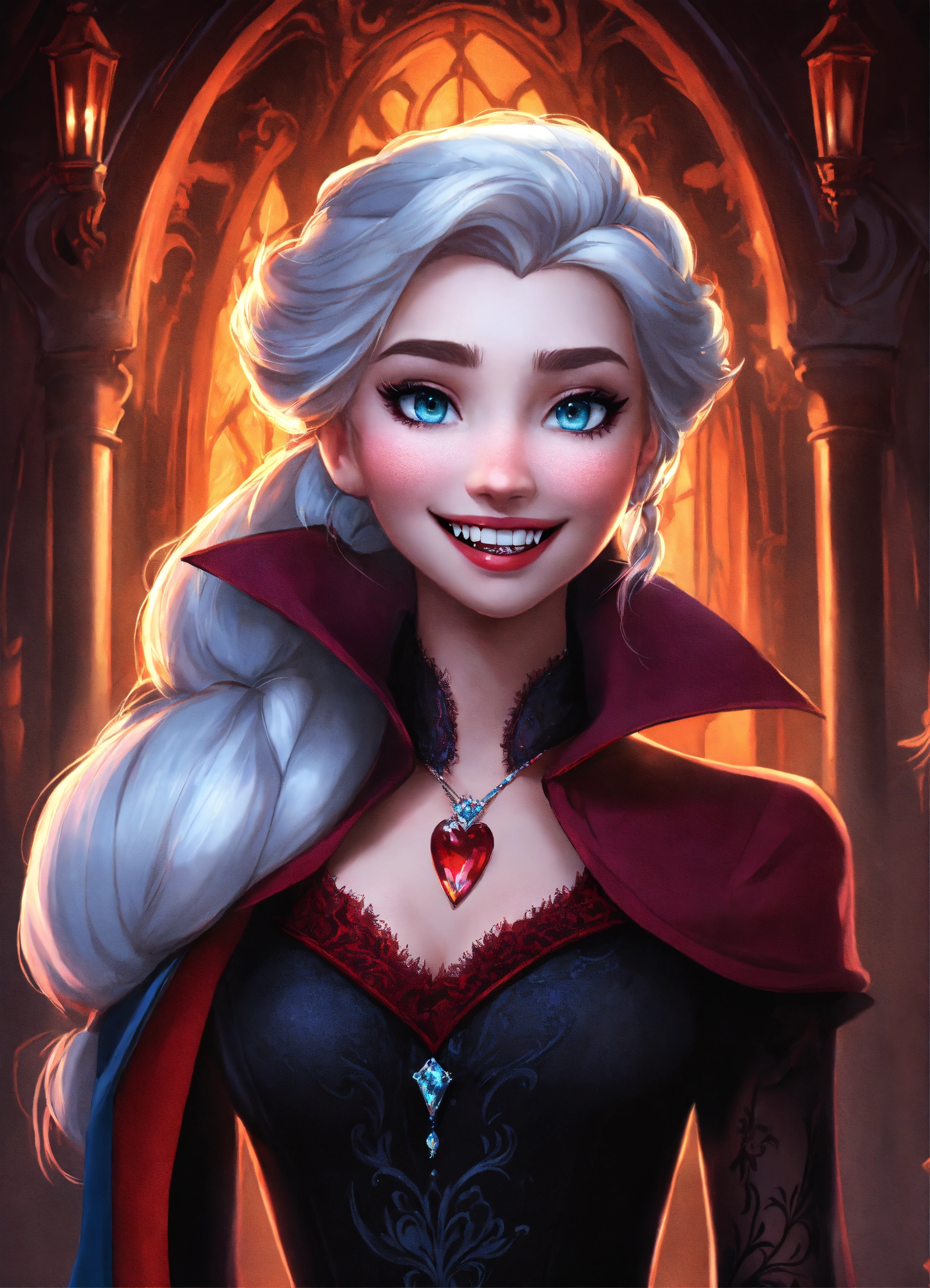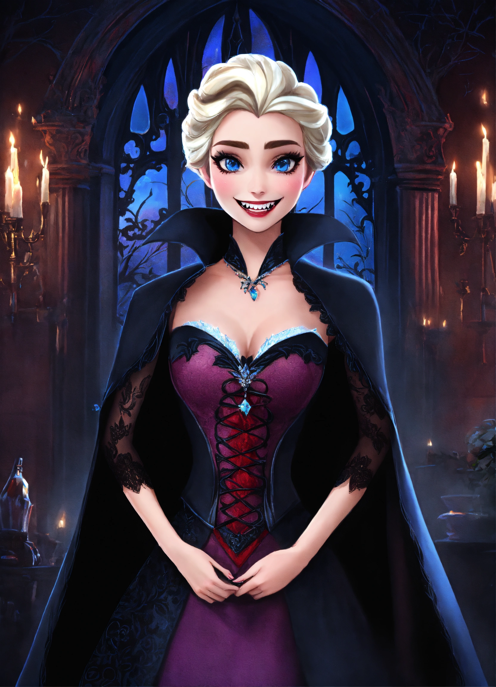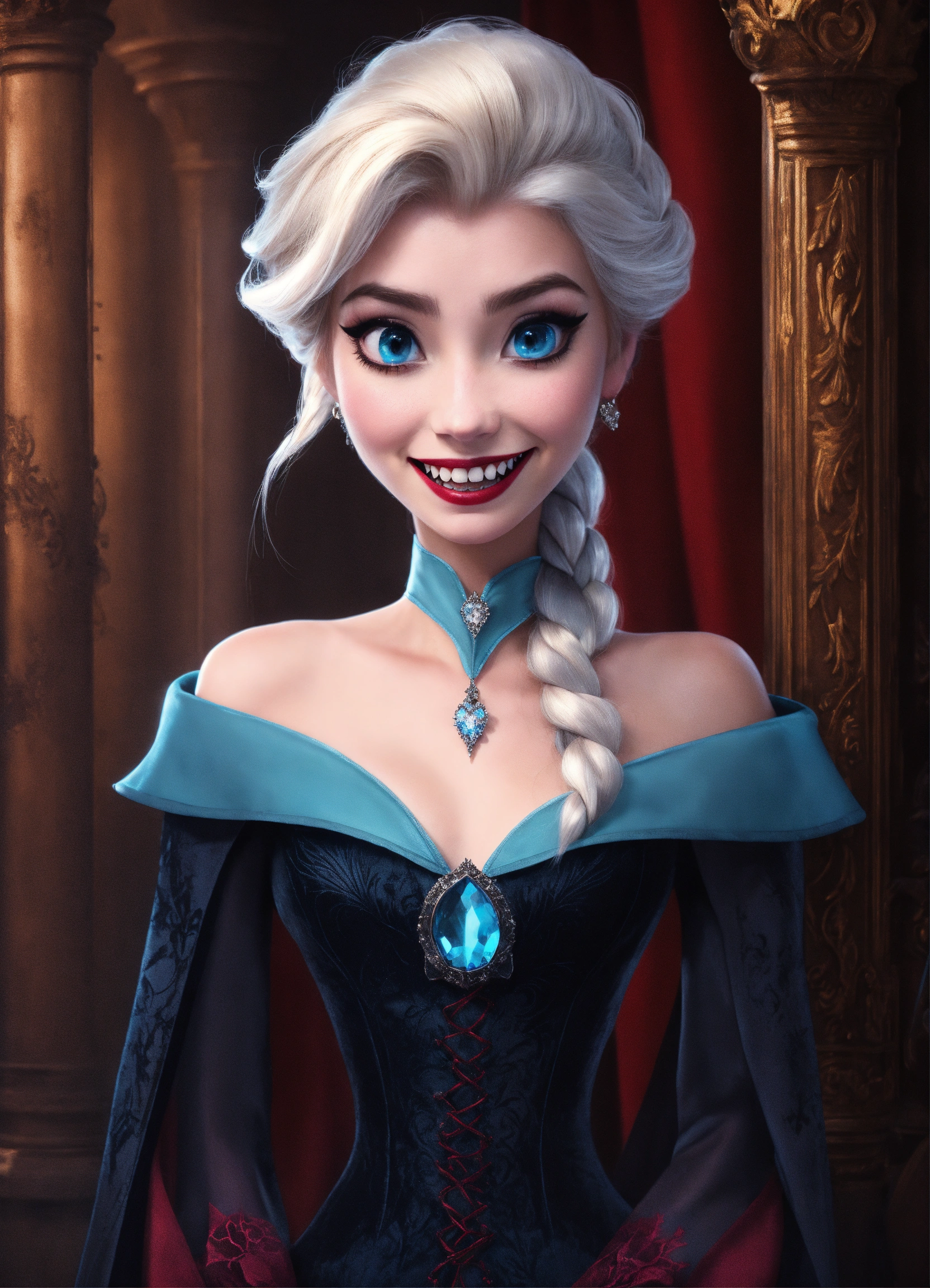 Disney elsa as a gothic vampire with teeth fangs showing