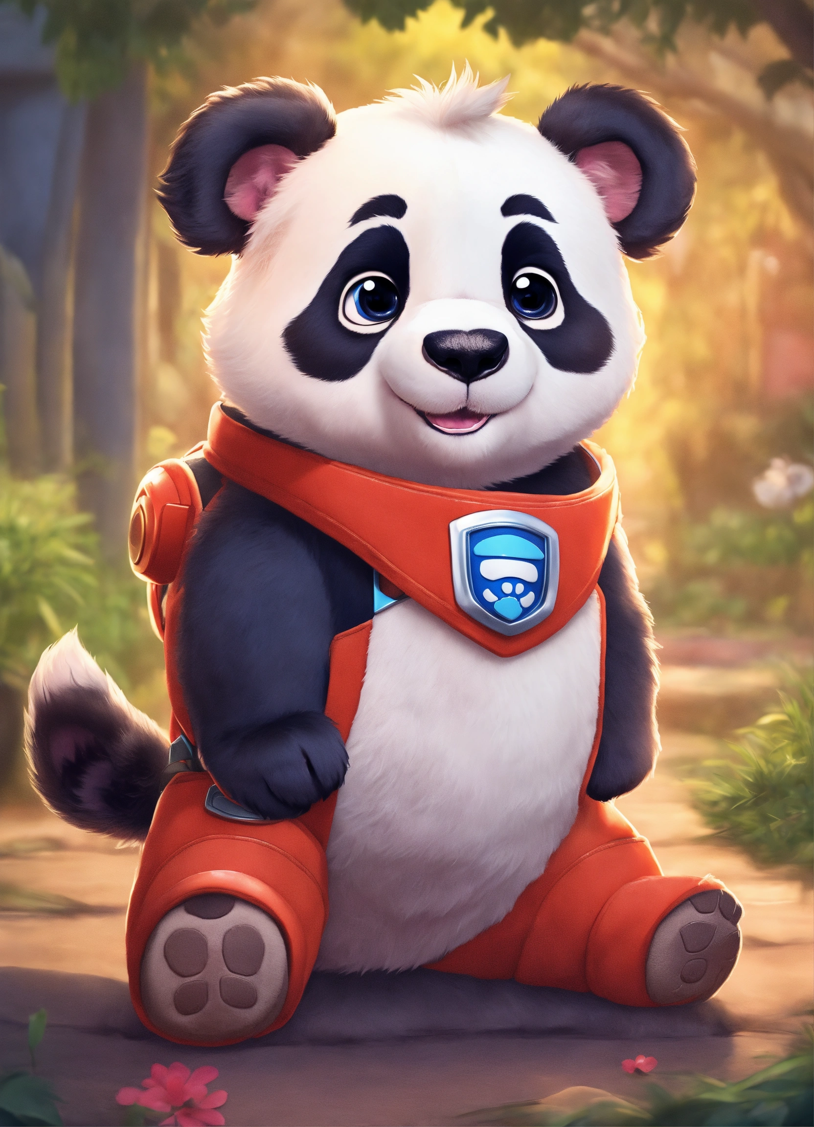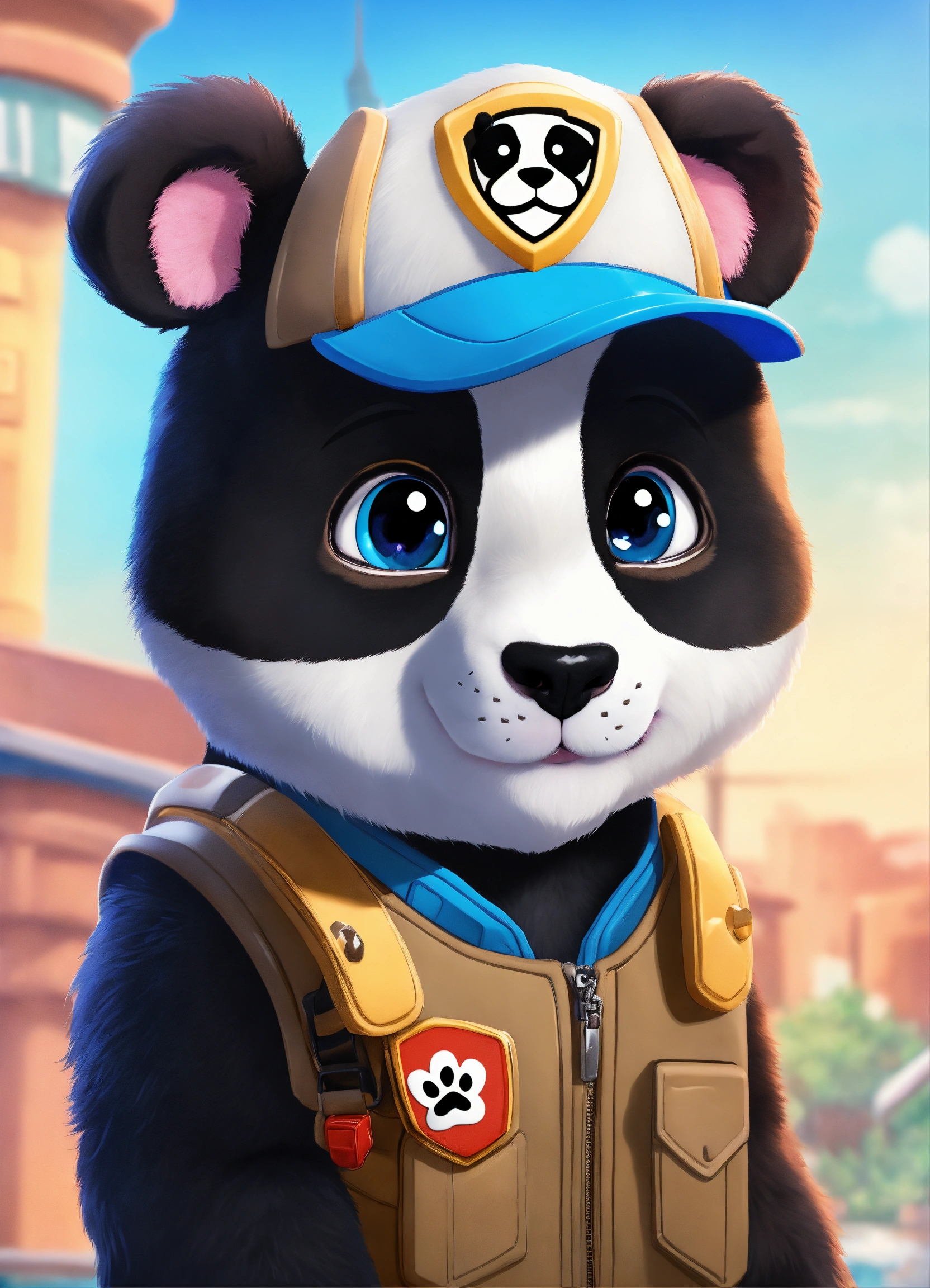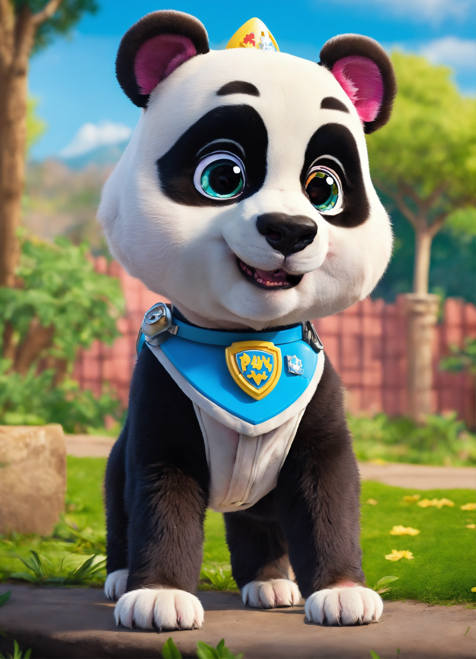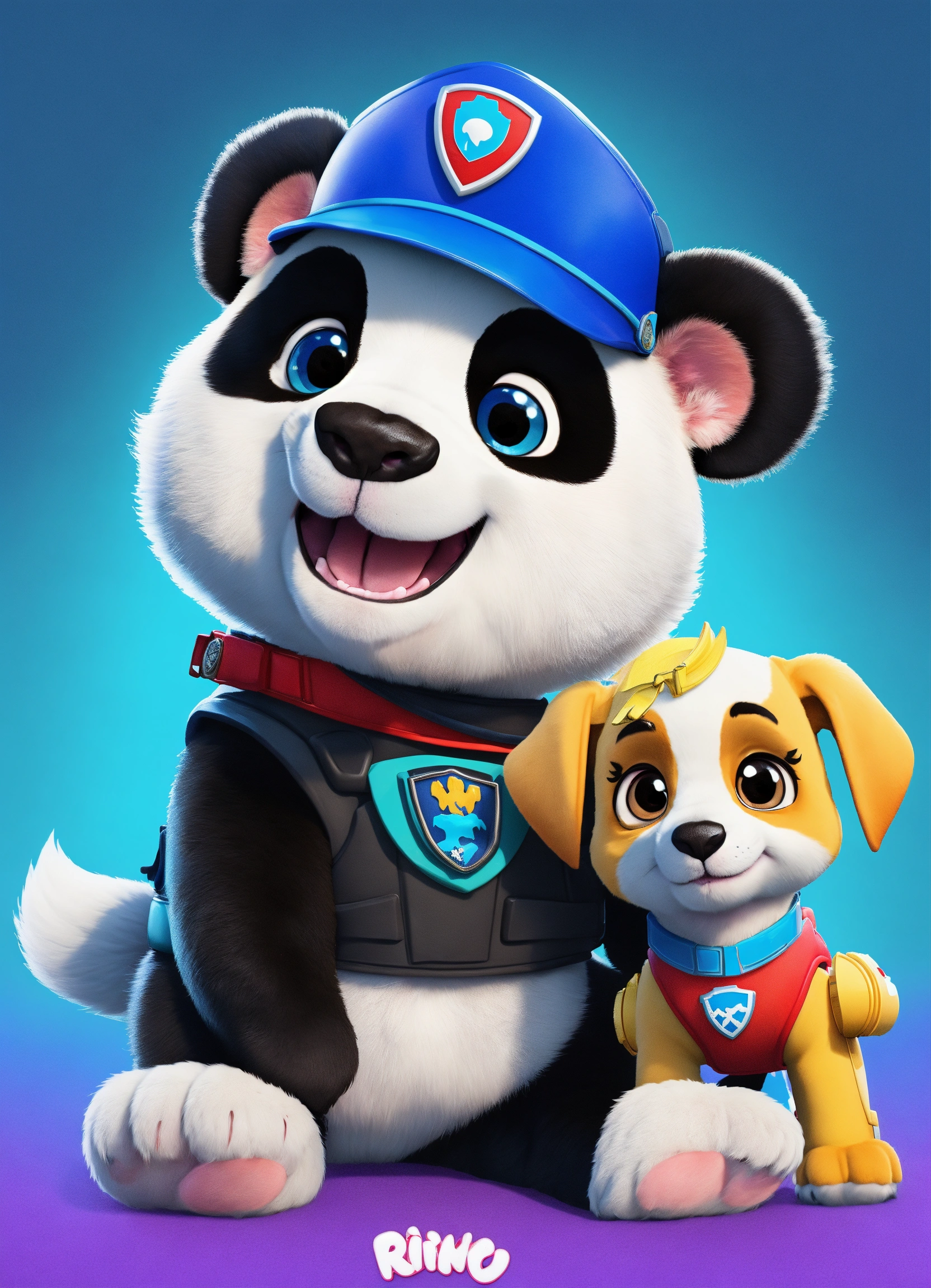 Mix of a panda and a furry cute puppy rino with a face of a paw patrol
