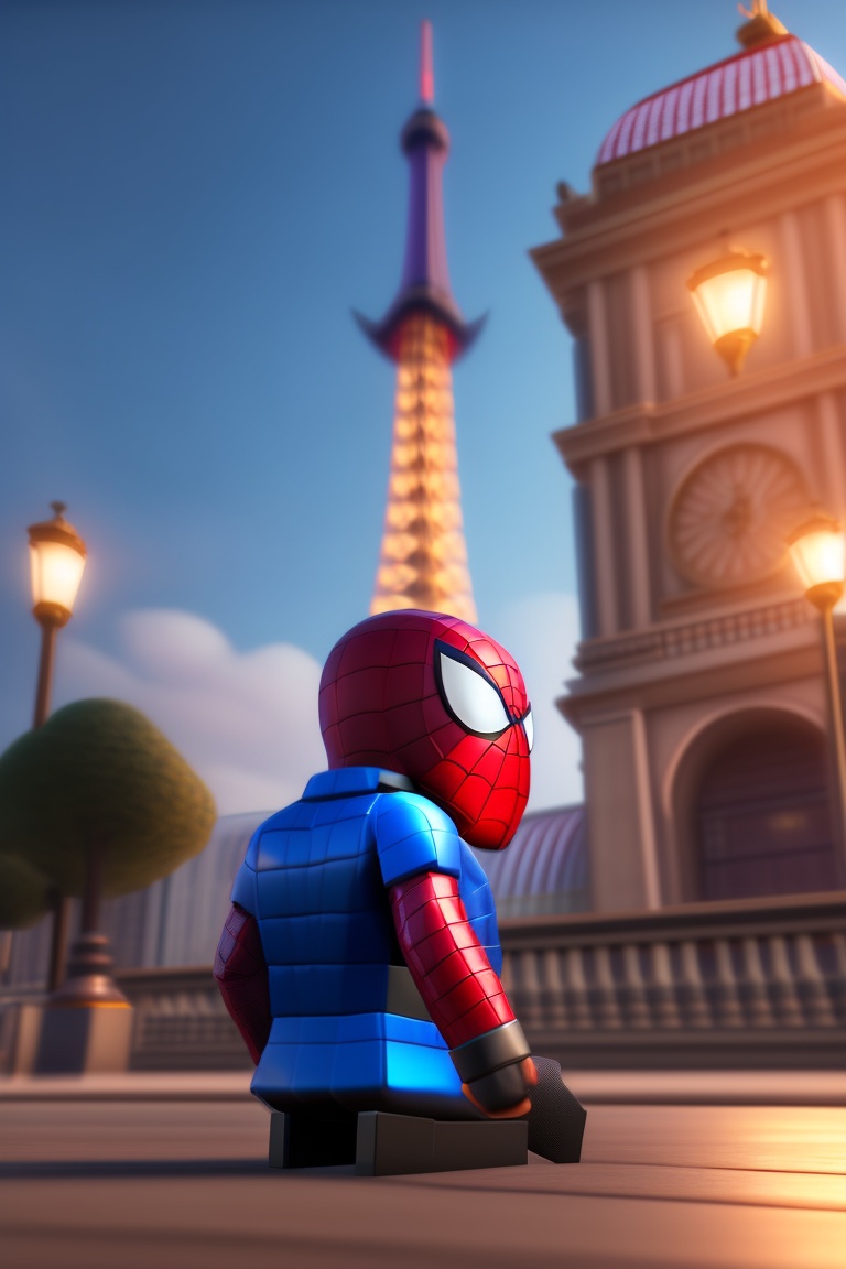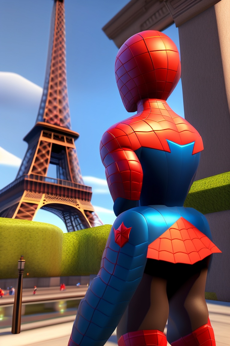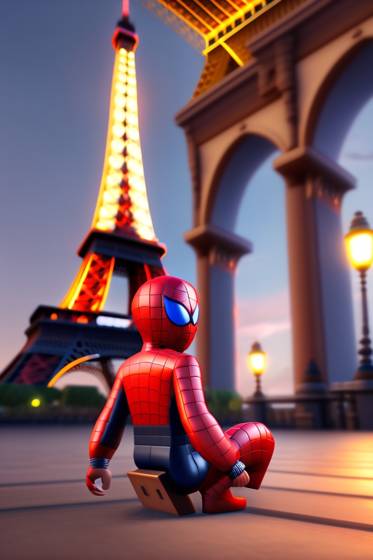 Roblox spiderman a business suit sitting at the eiffel tower