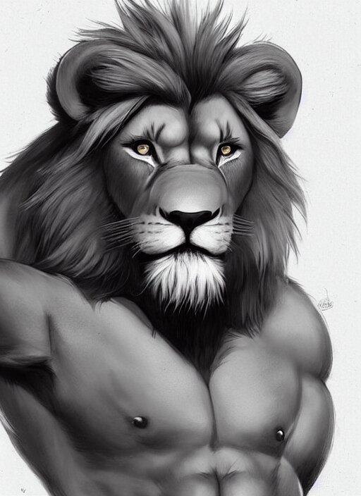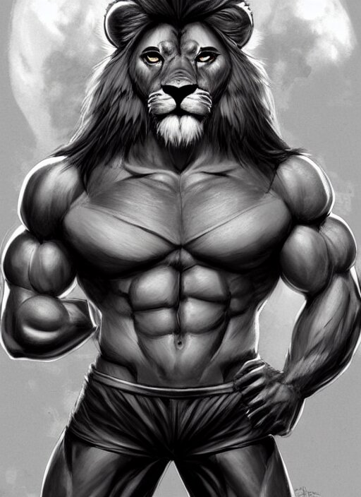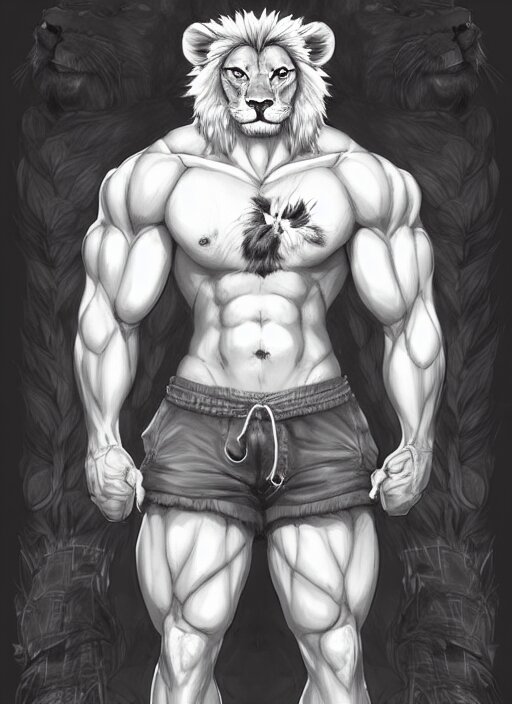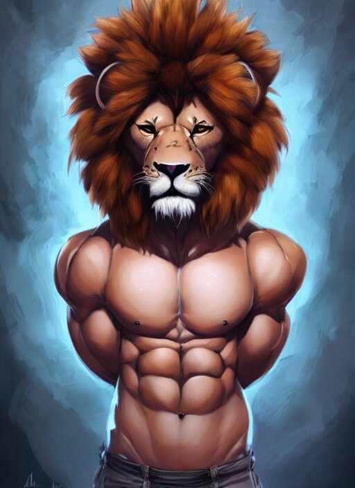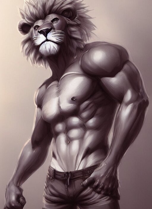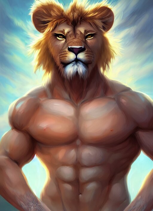 Award winning beautiful portrait commission art of a muscular male furry anthro lion fursona with a cute beautiful attractive detailed furry face wearing gym shorts and a tanktop. character design by charlie bowater, ross tran, artgerm, and makoto shinkai, detailed, inked, western comic book art