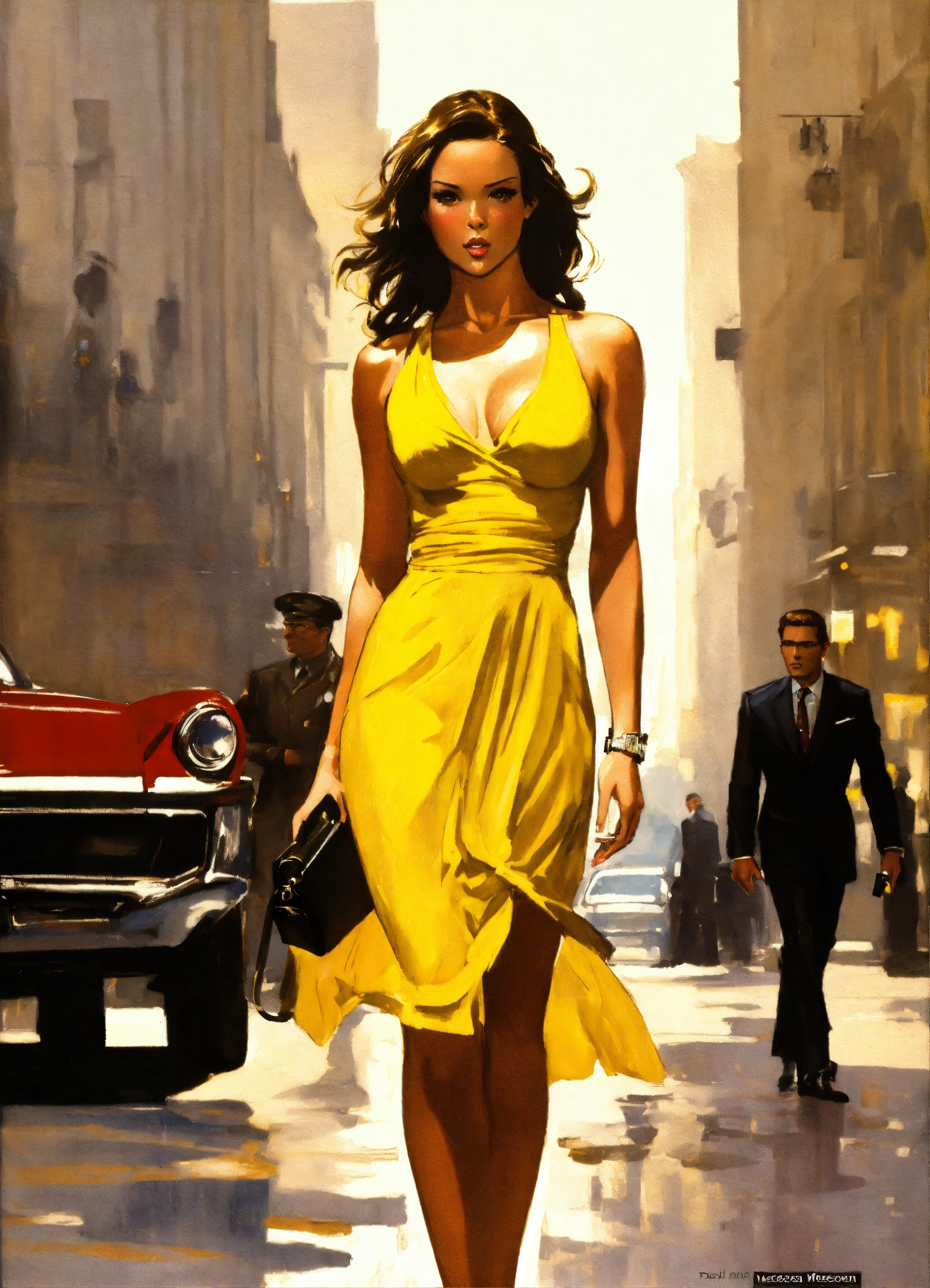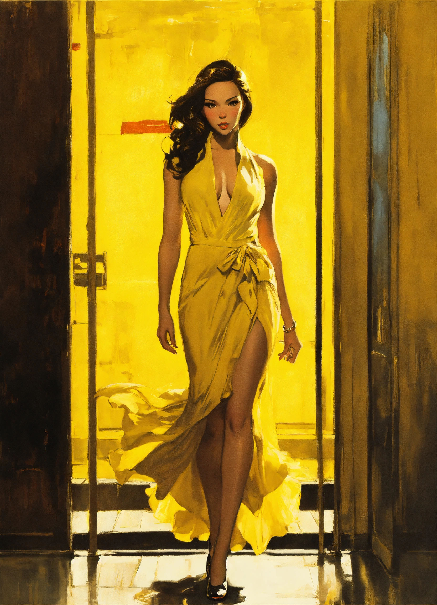<robert mcginnis> full body rebecca ferguson in mission impossible yellow dress