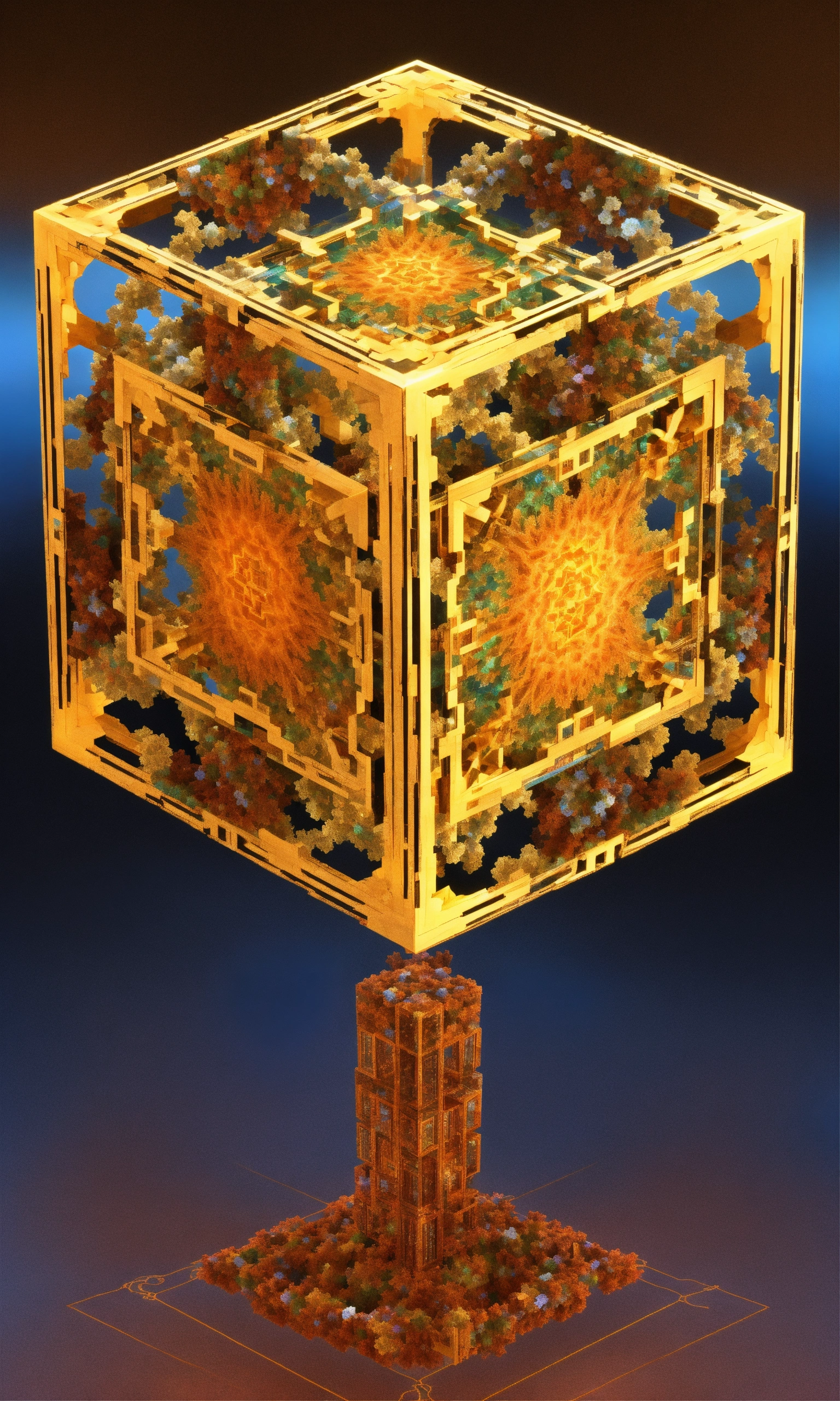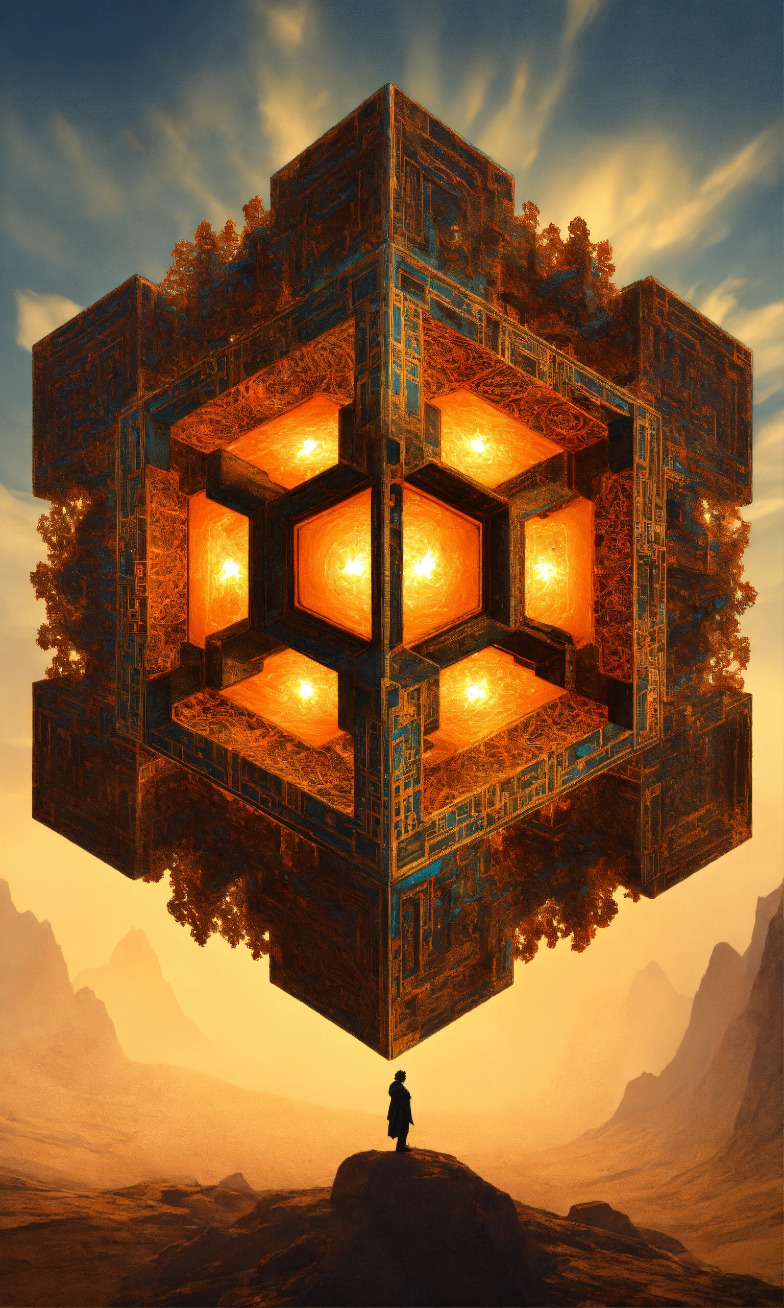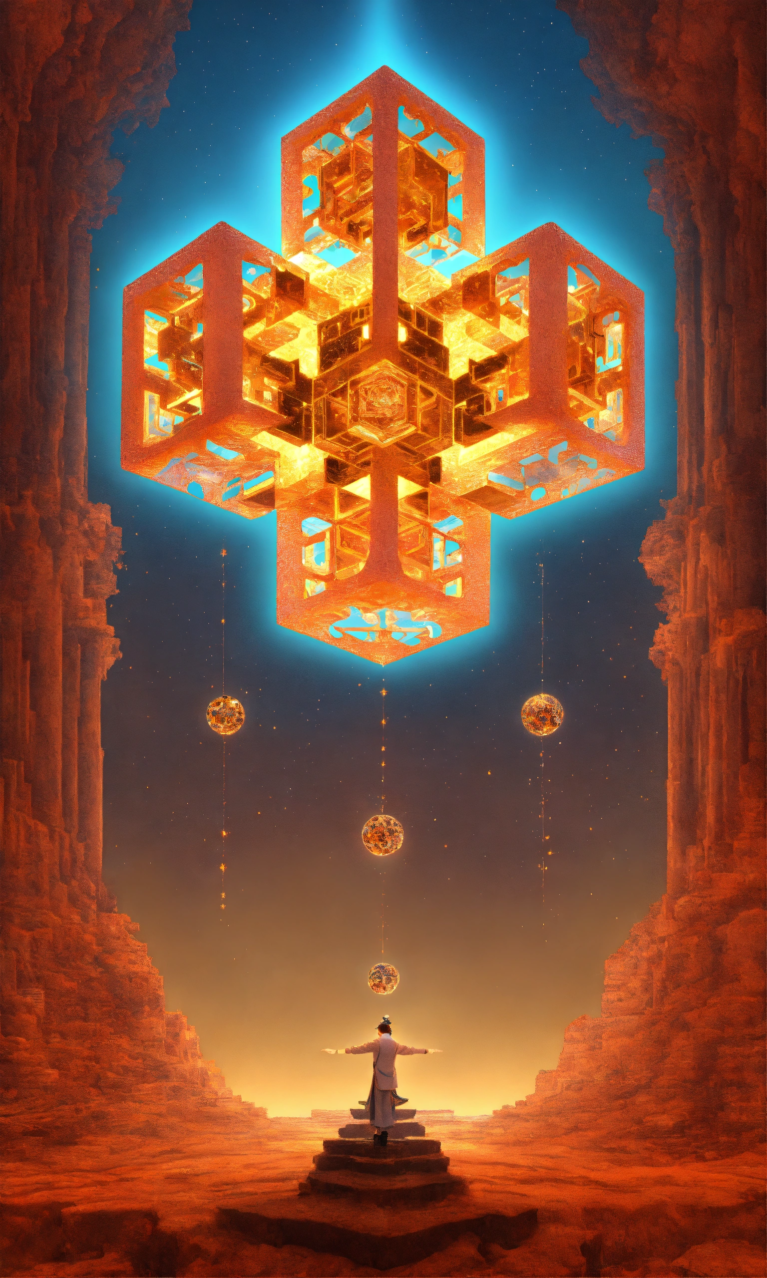 Taoist tesseract body fractal three point perspective hypercube melting mandelbrot hands