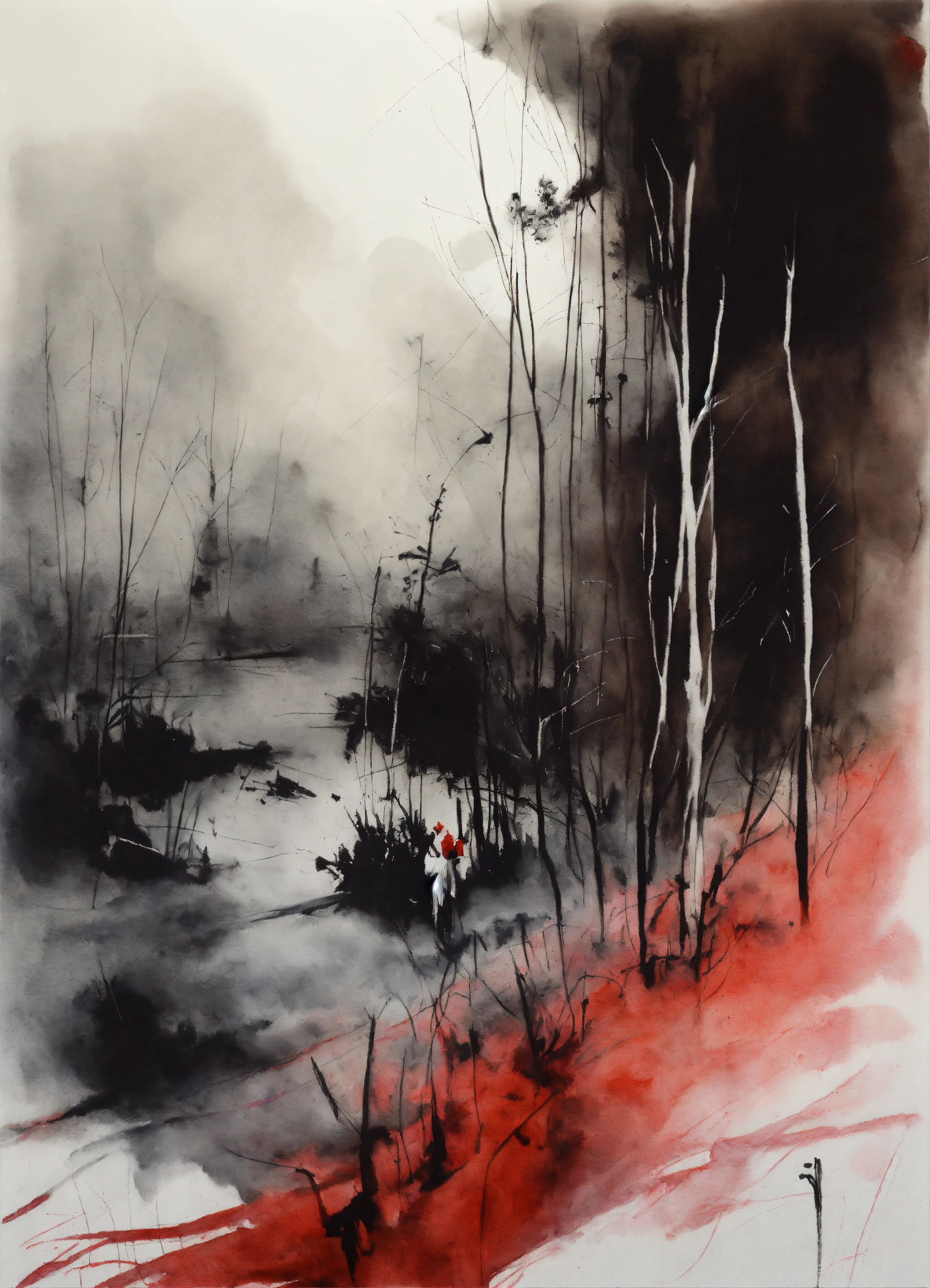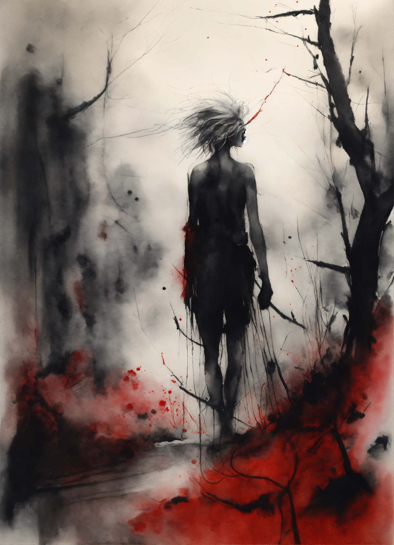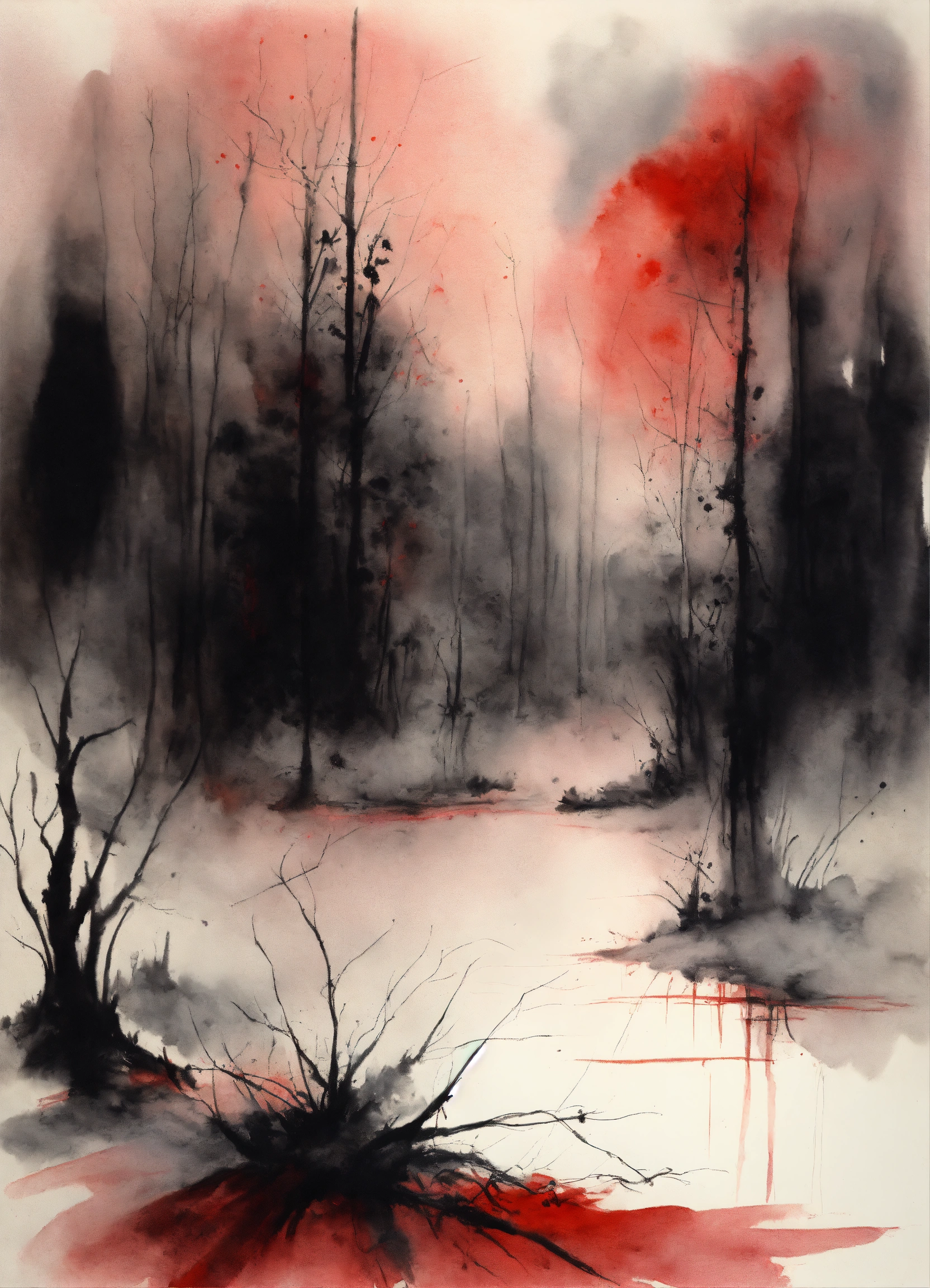 Stephen gammell style, dessin, aquarelle, aquarelles, noir et blanc et rouge, de marais, de sombres créatures, dégoulinant, des gens qui dansent