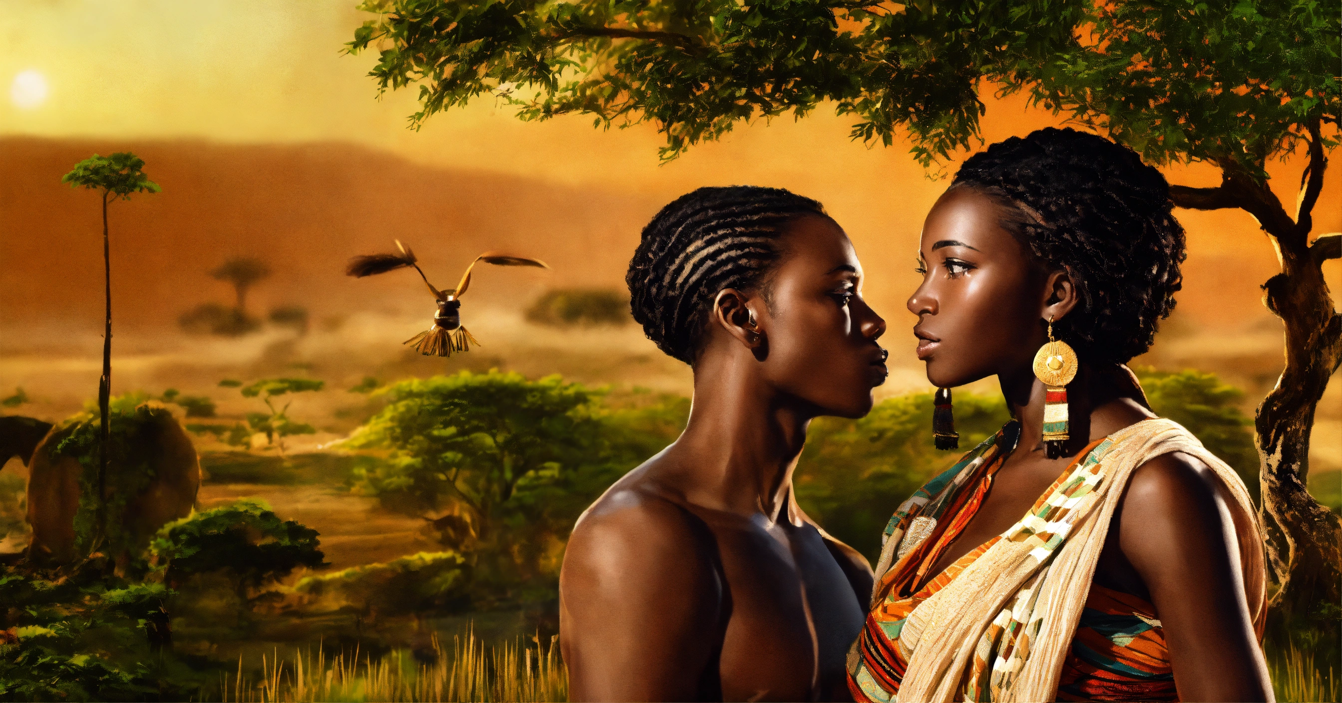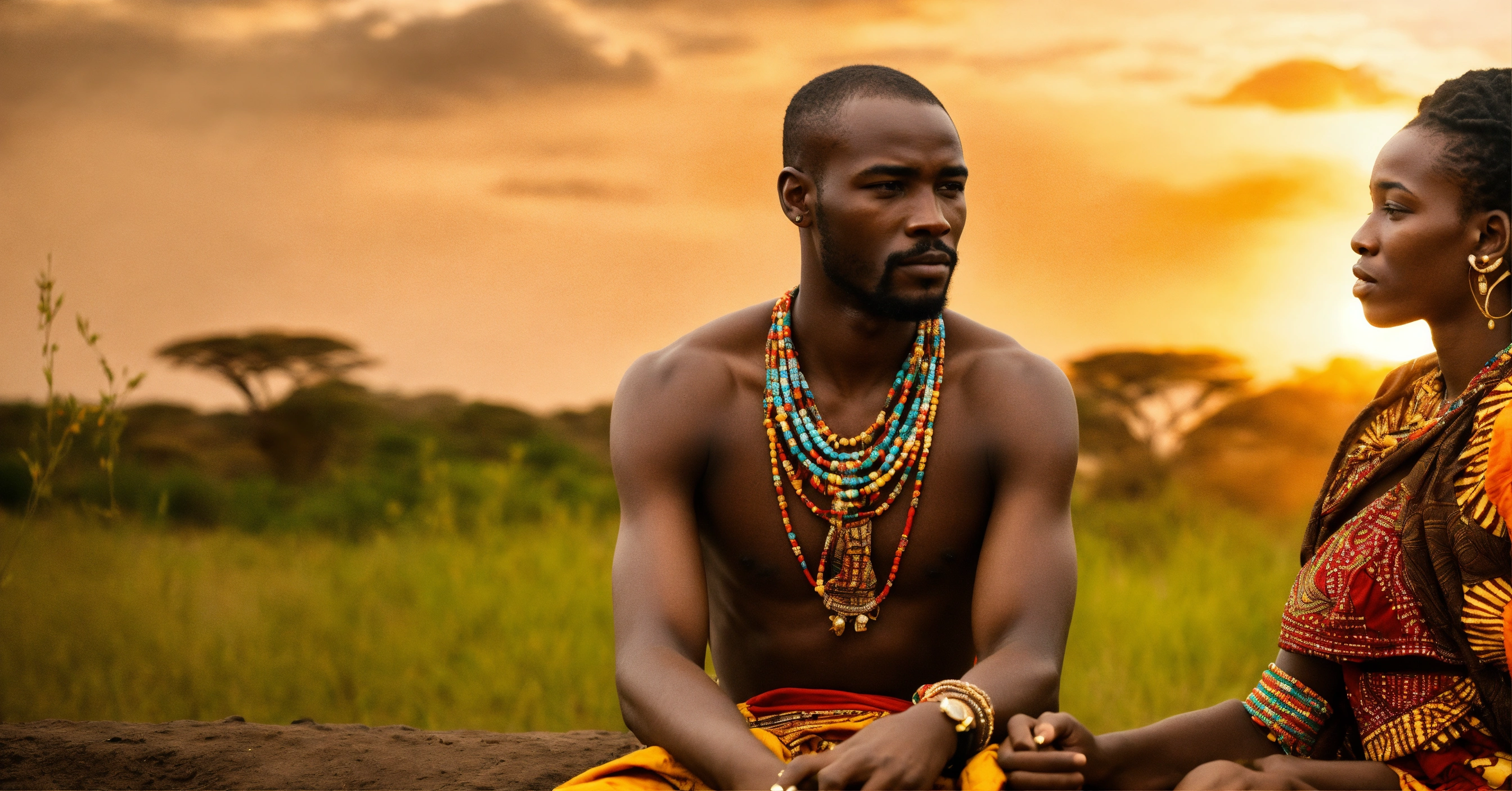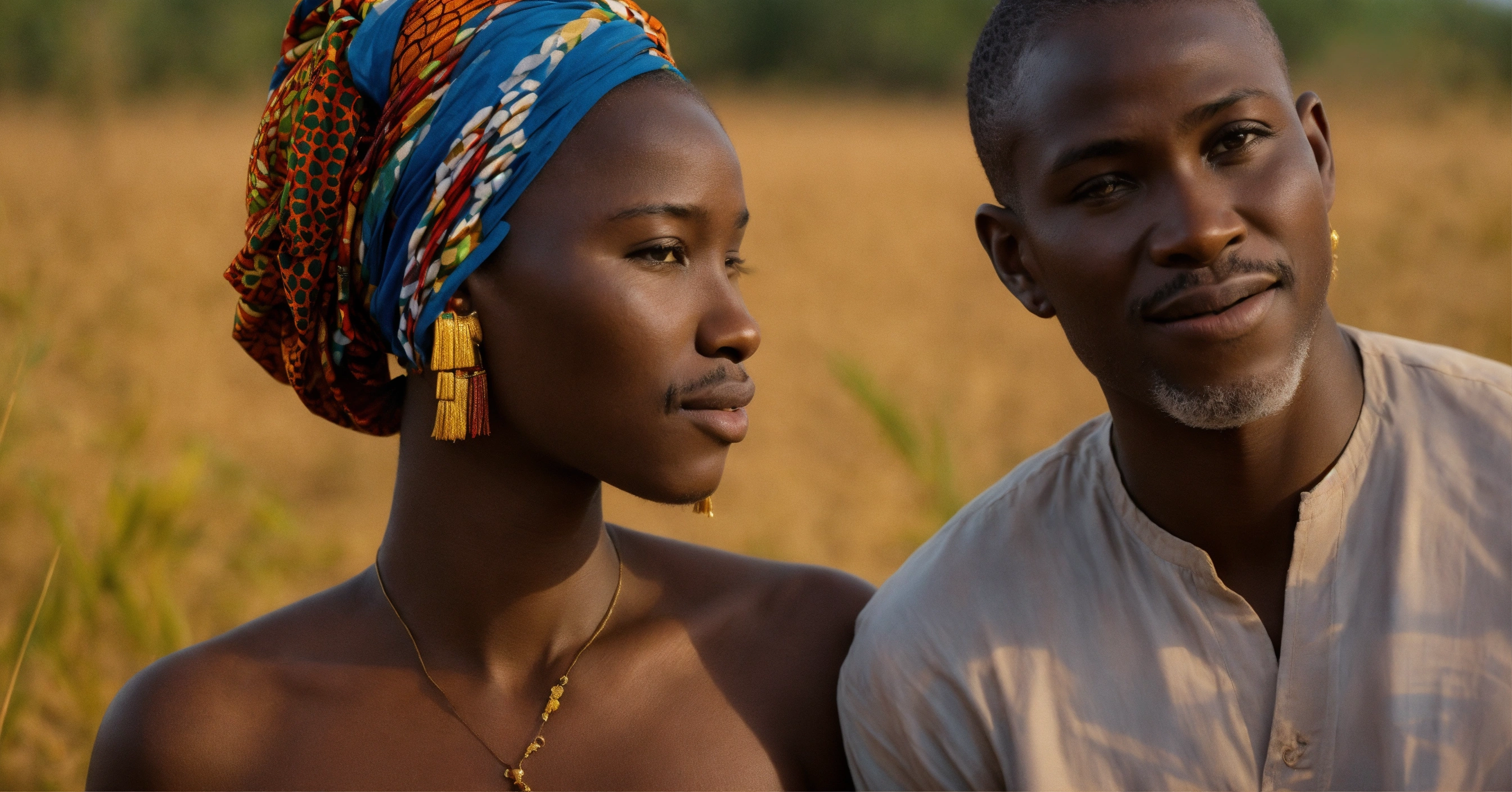 Créez une image qui représente un homme africain et une femme africaine dans une relation complexe. mettez en avant leurs expressions faciales, leurs émotions et les éléments de leur environnement qui reflètent la complexité de leur relation