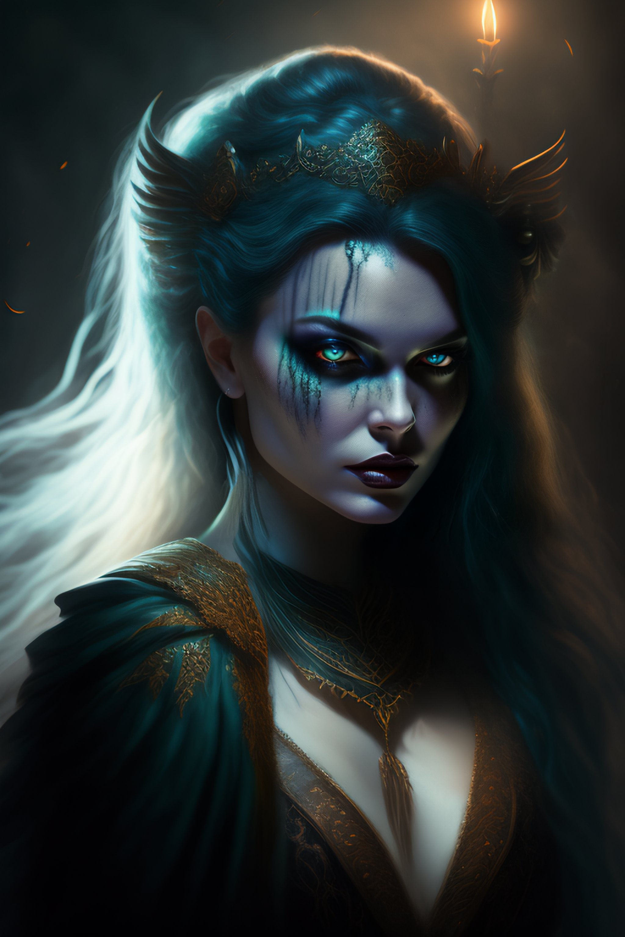 Ghostly rotting dead evil undead siren, graceful, flowing robes, wispy, glowing dark eyes, darkness, grotesque