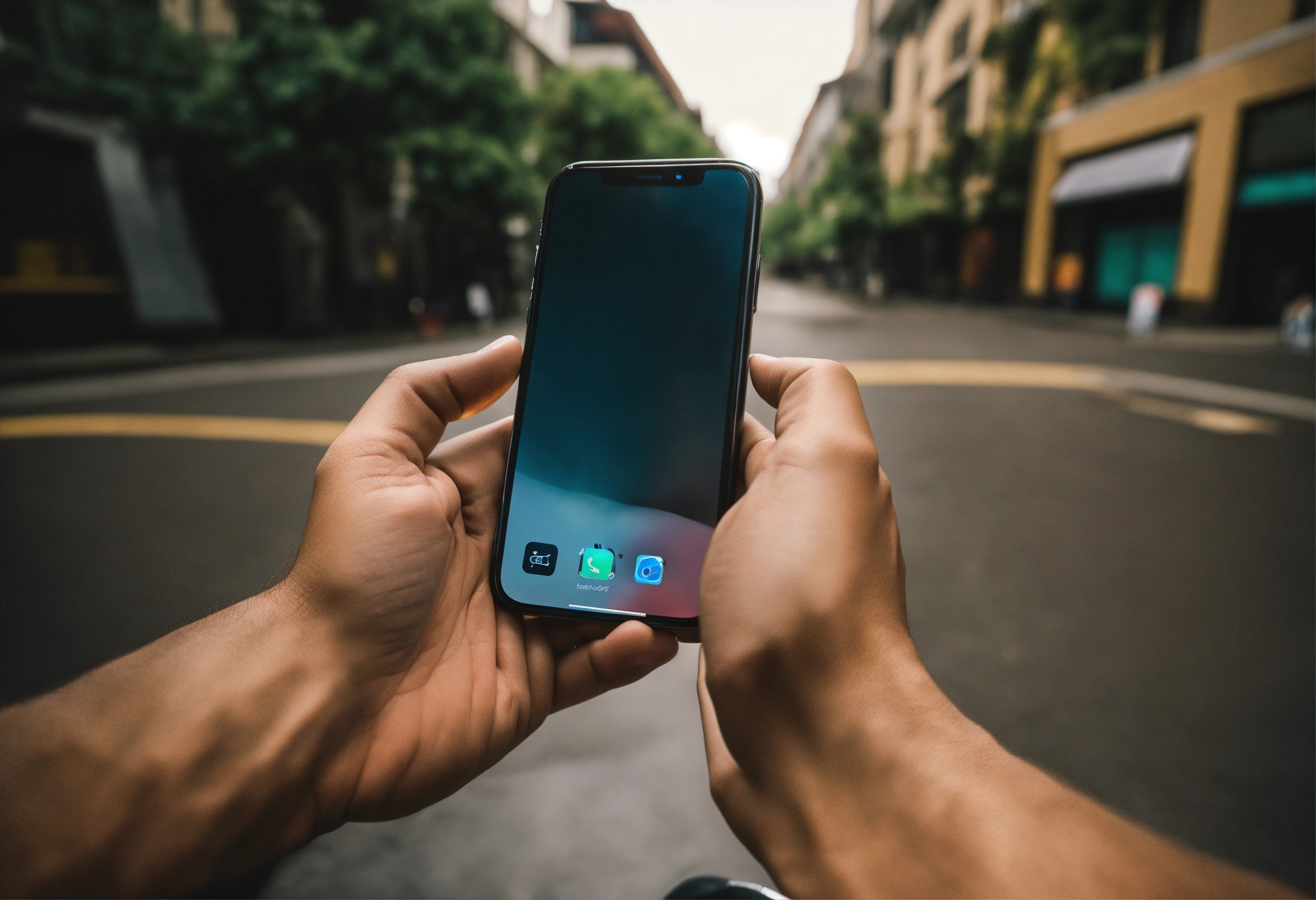 Man hand holding iphone pov one finger tap to phone