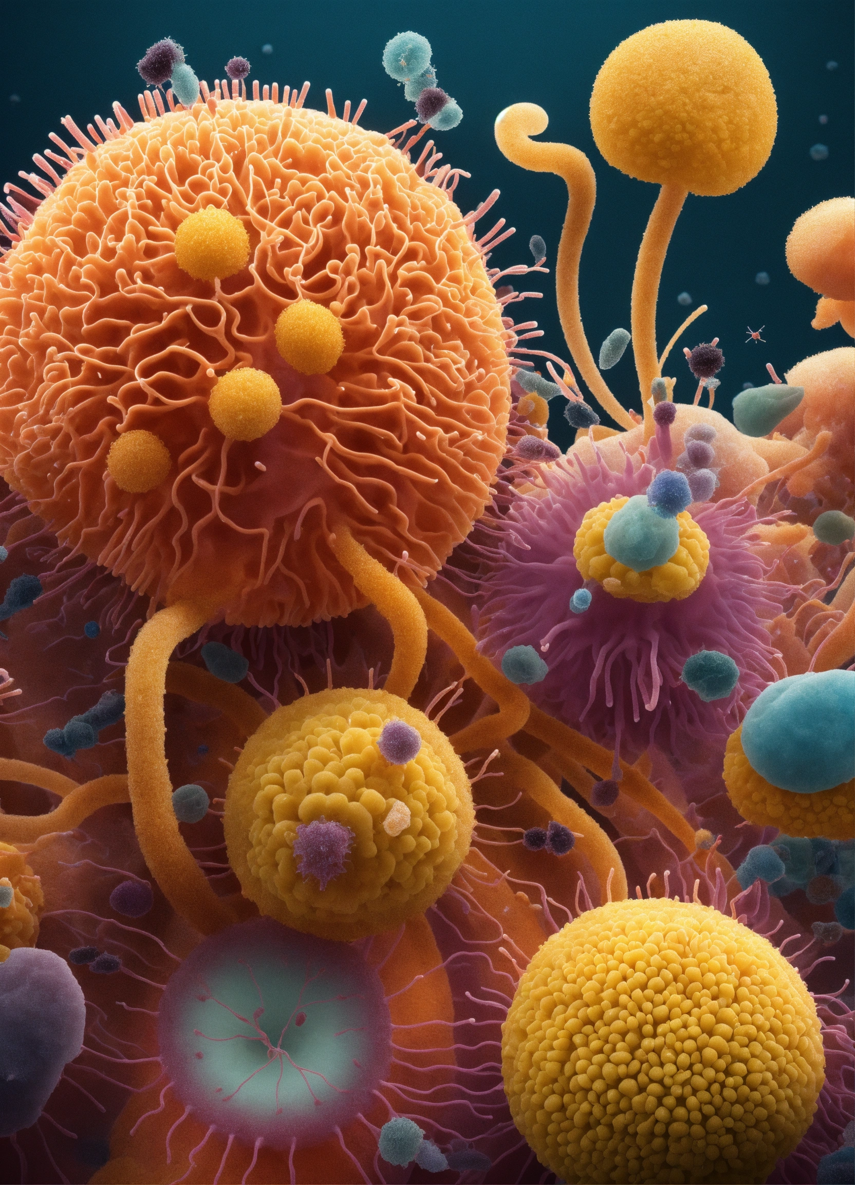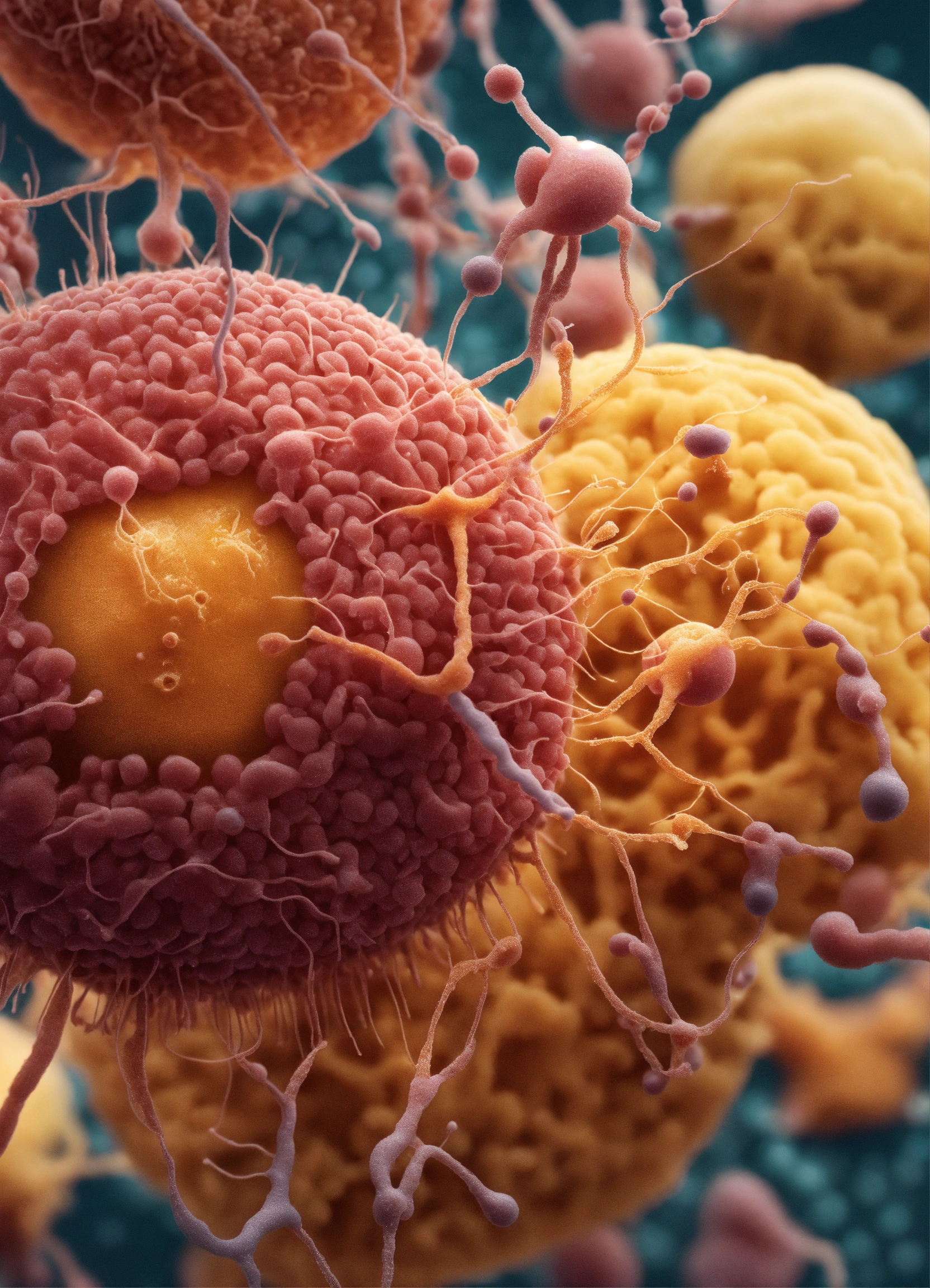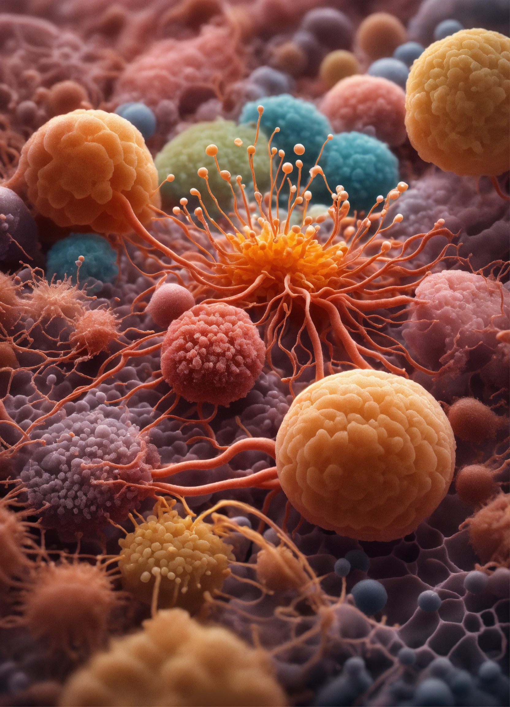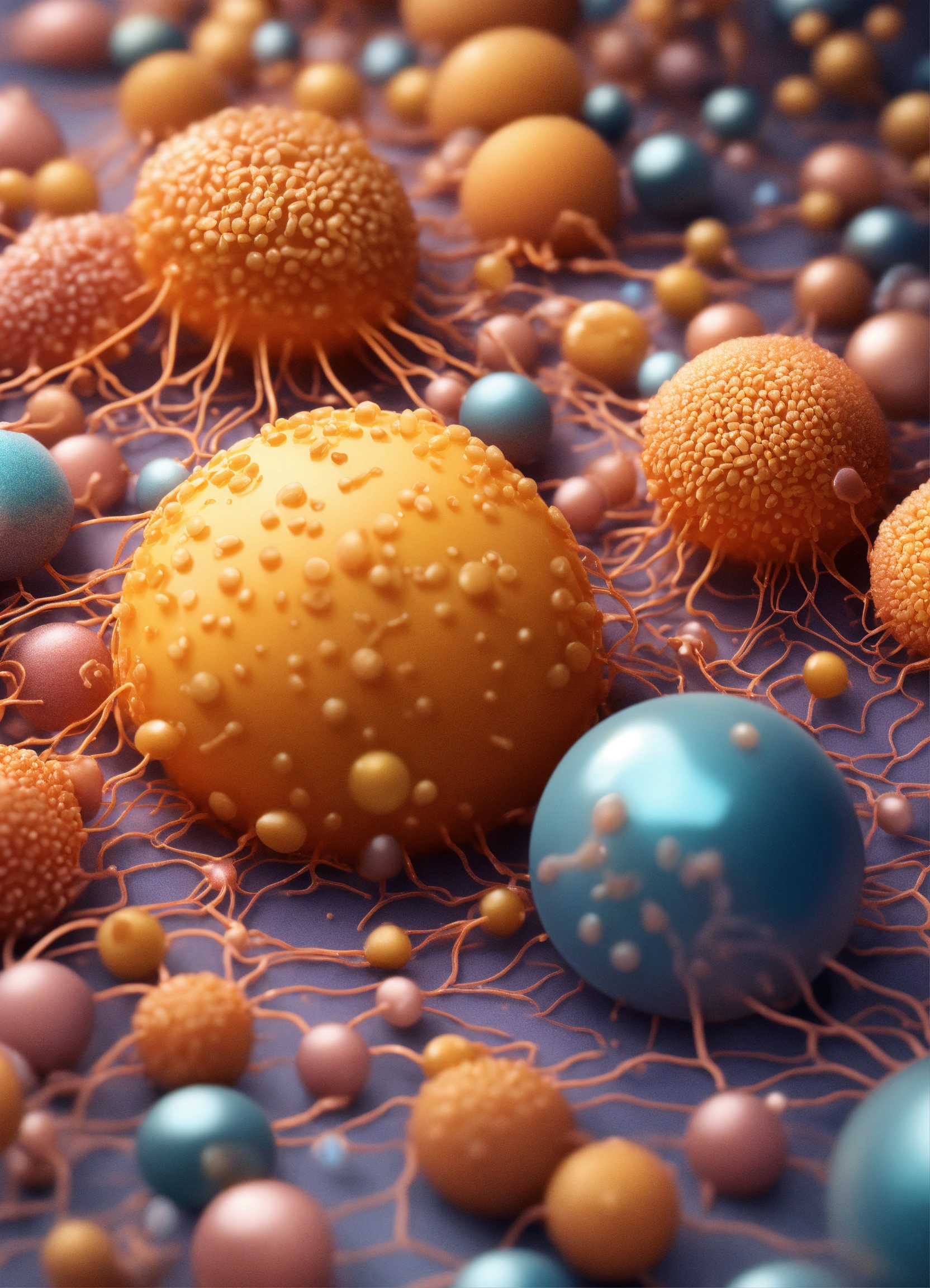 Hyperrealistic illustration of microscopic organisms connected to each other