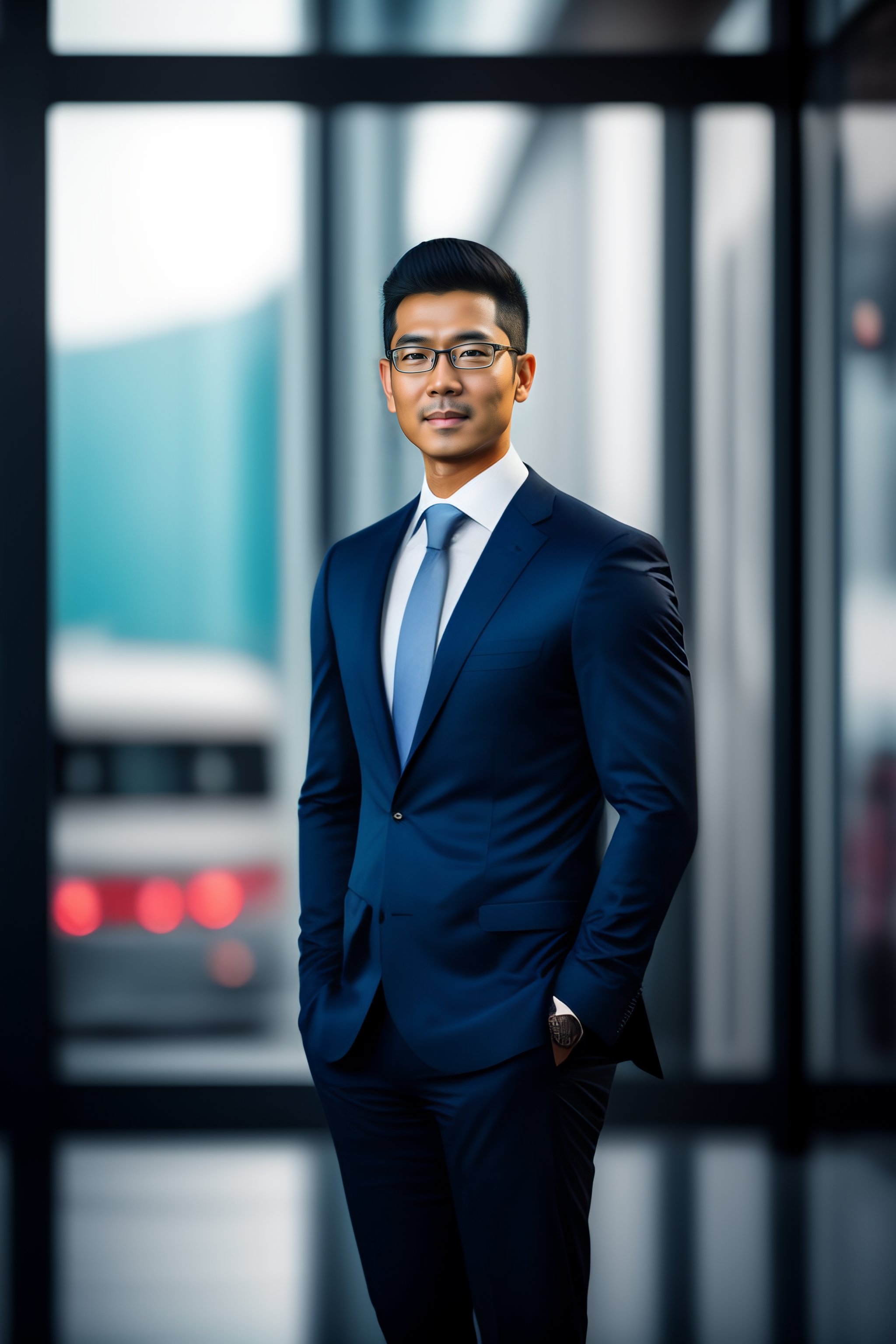 Take my google profile picture and make a professional image with background in a corporate environment