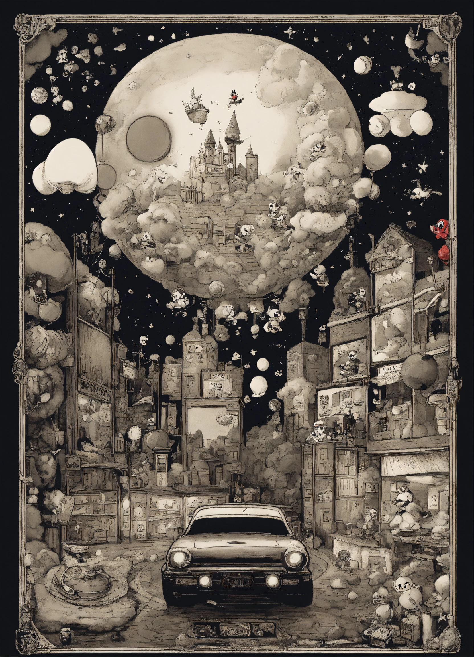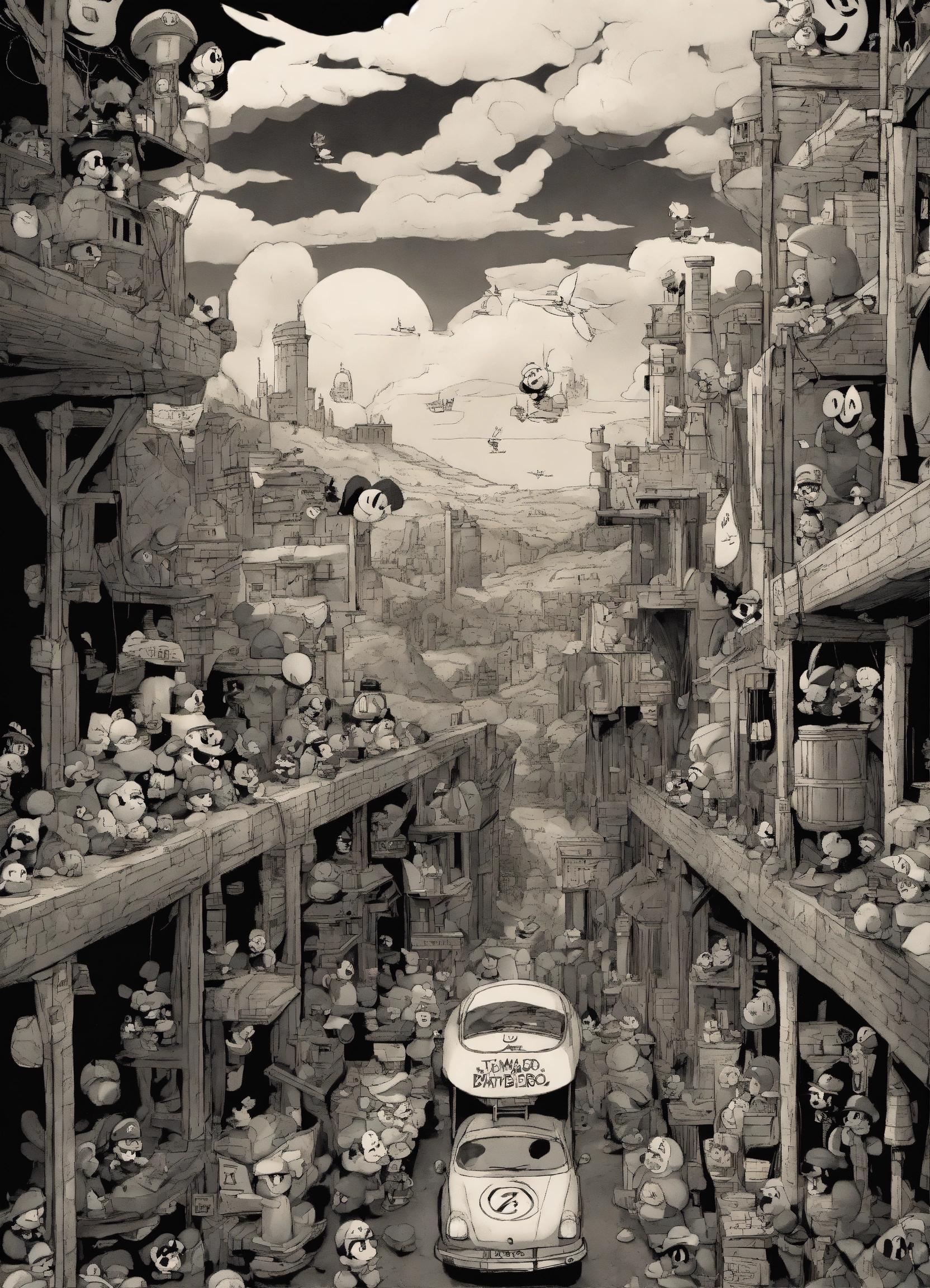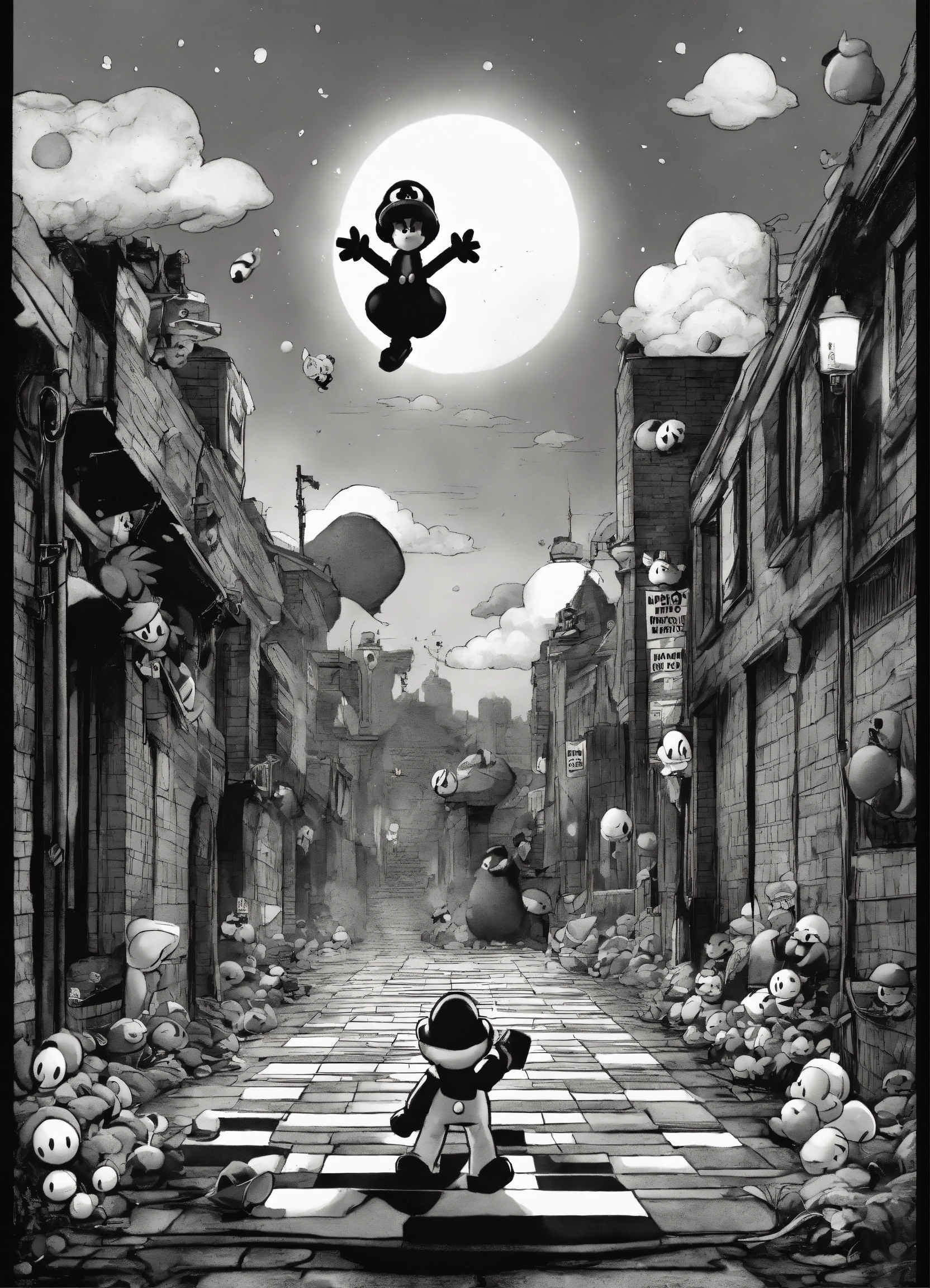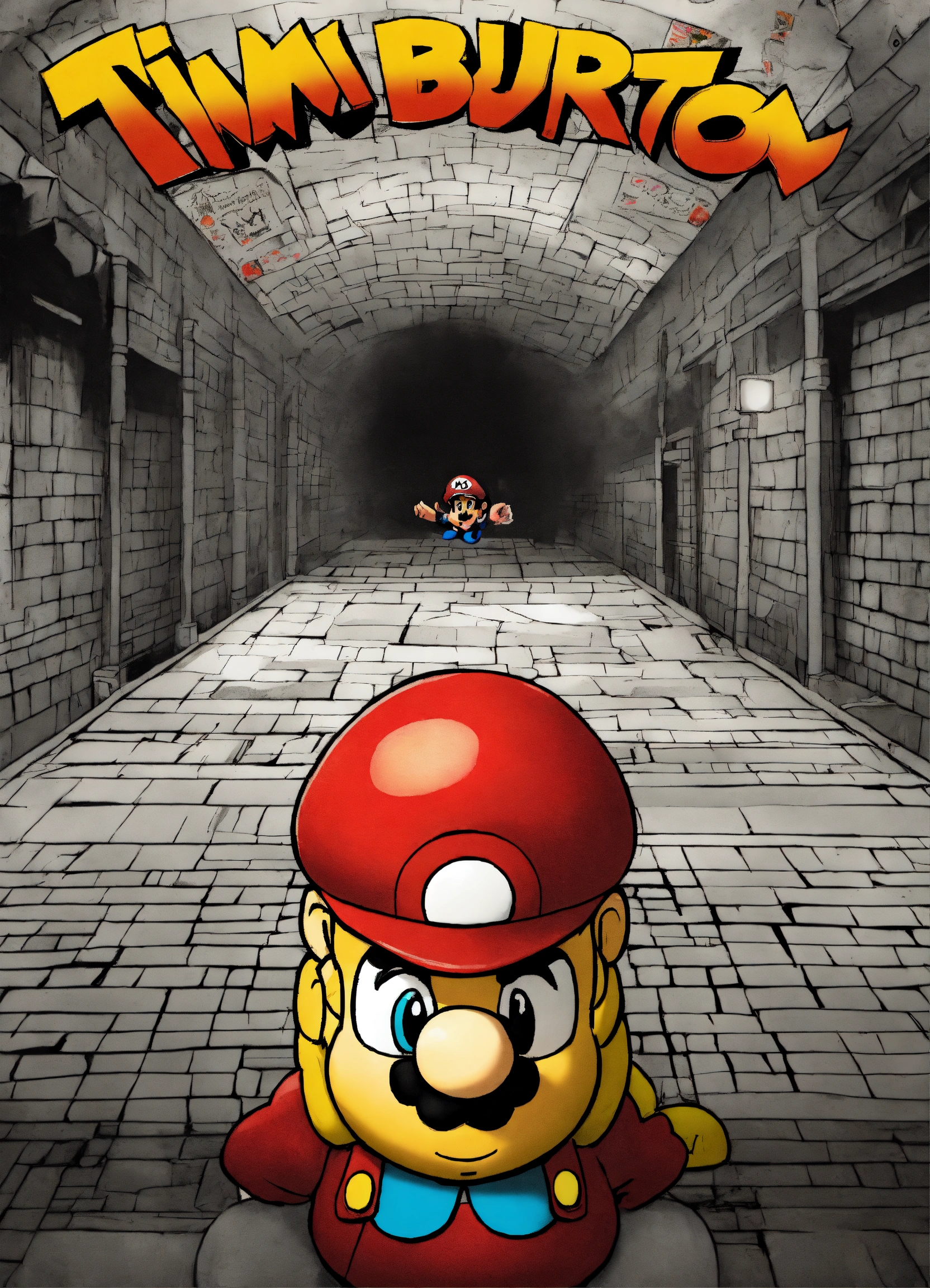Comic poster design for containing tim burton blanco y negro con super mario bros