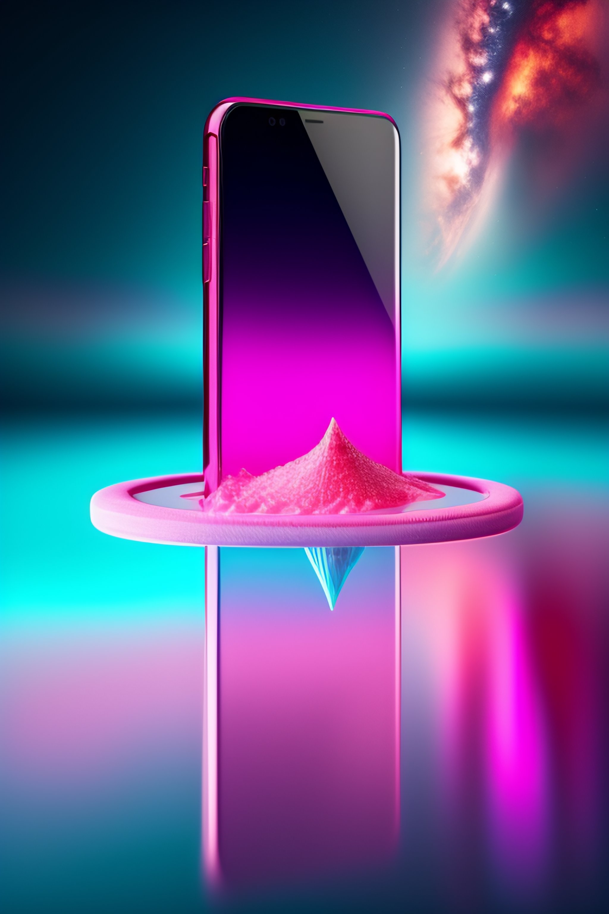 Pink iphone floating on top of a pool
