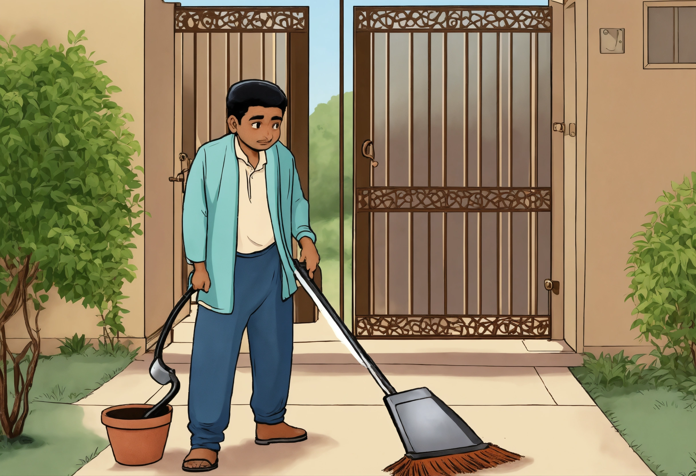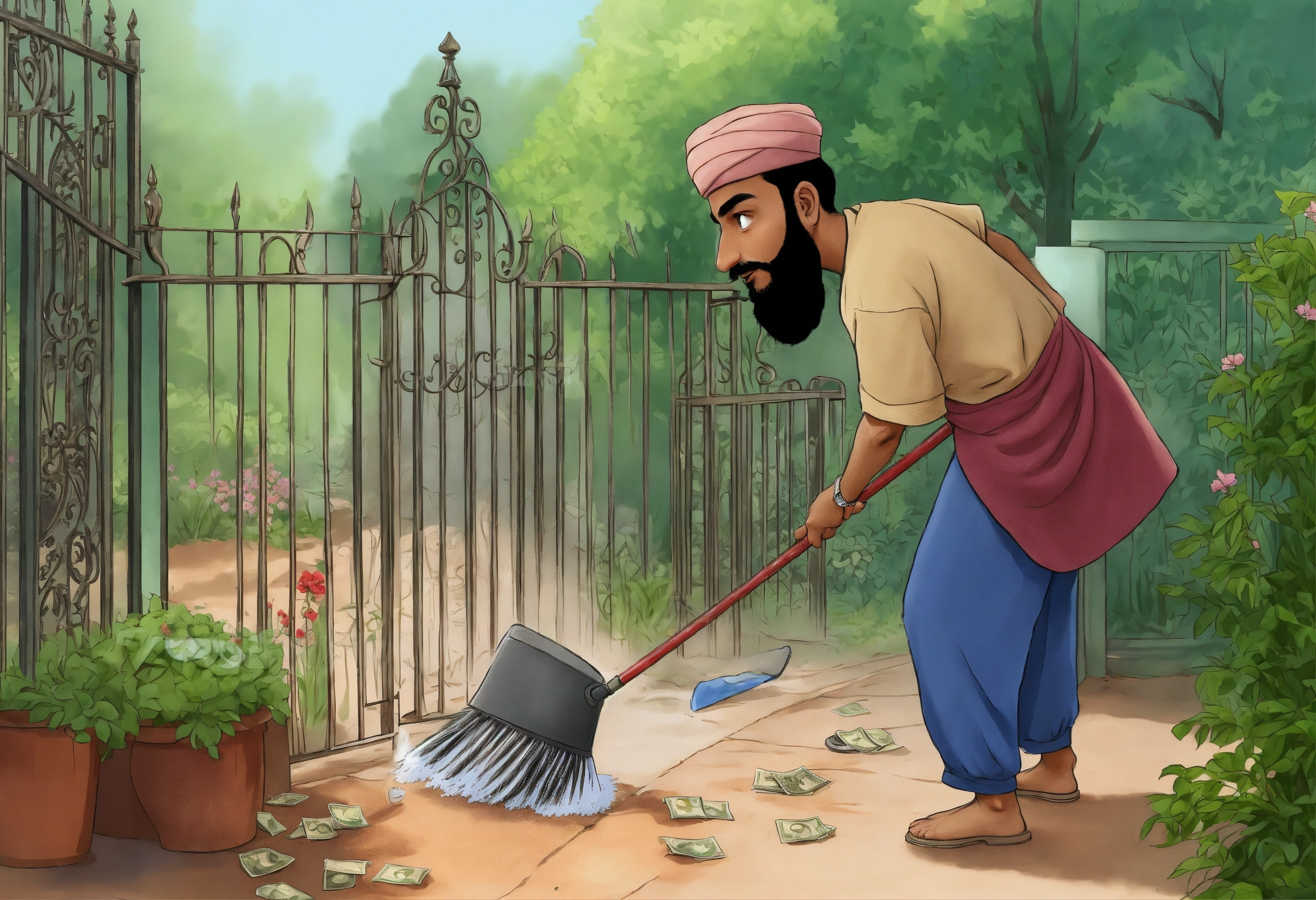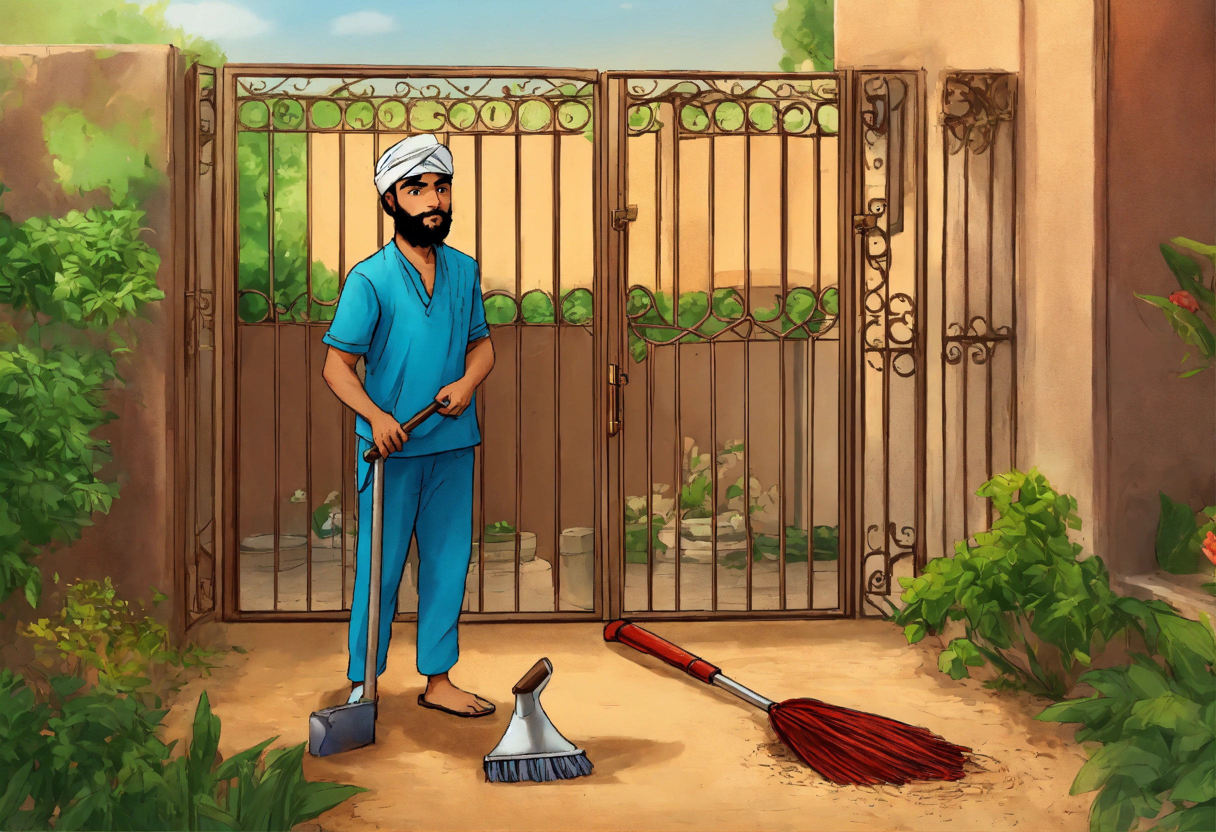 Ahmad ali came back to do his duty at the gate with a heavy heart. malik was cleaning the garden. seeing him, he came to him "what happened? the owner didn't give you money either?". "in cartoon image
