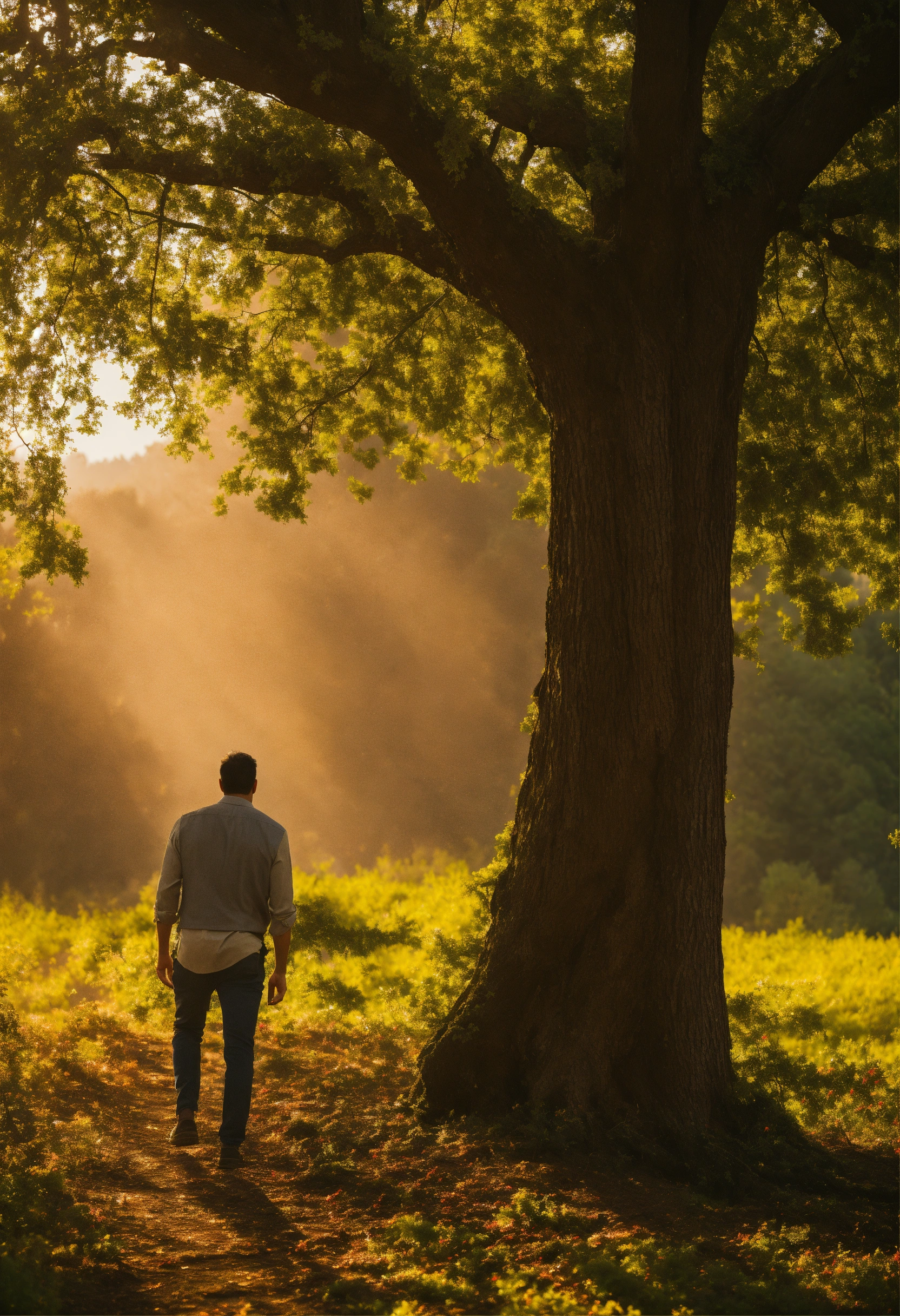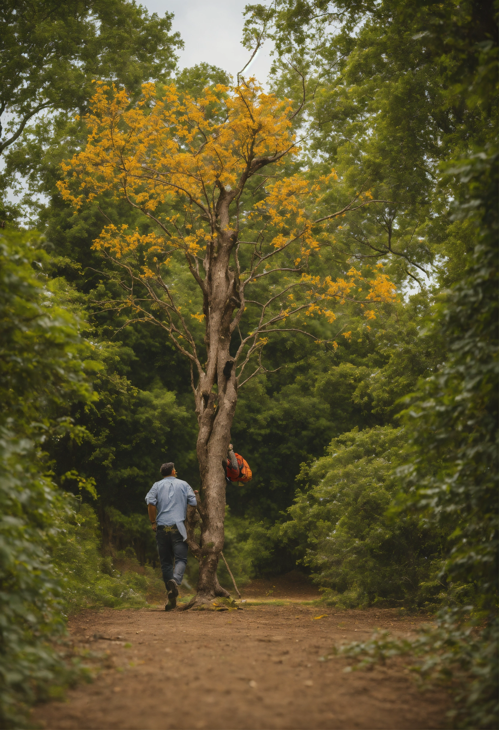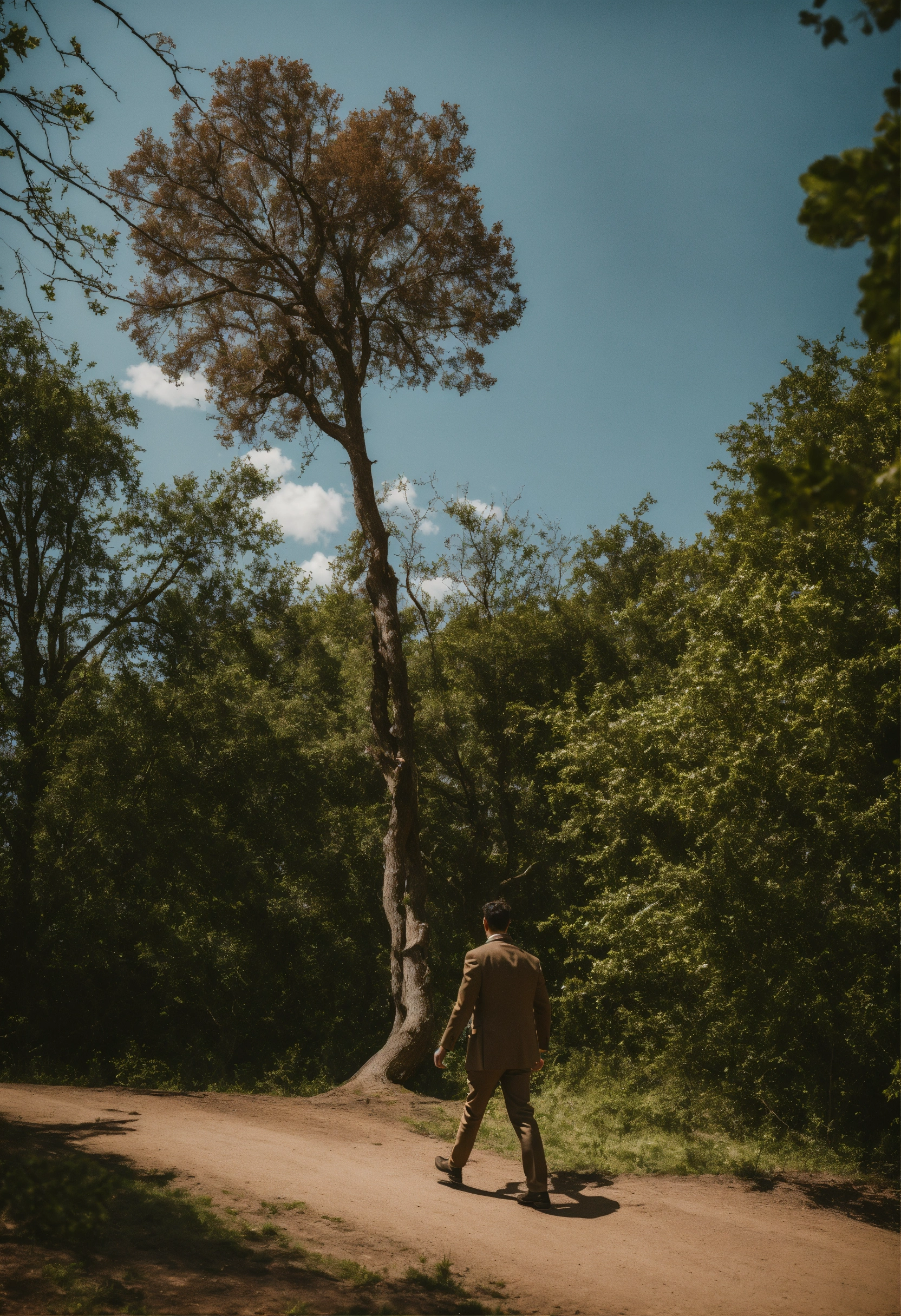 A man walks and looks up