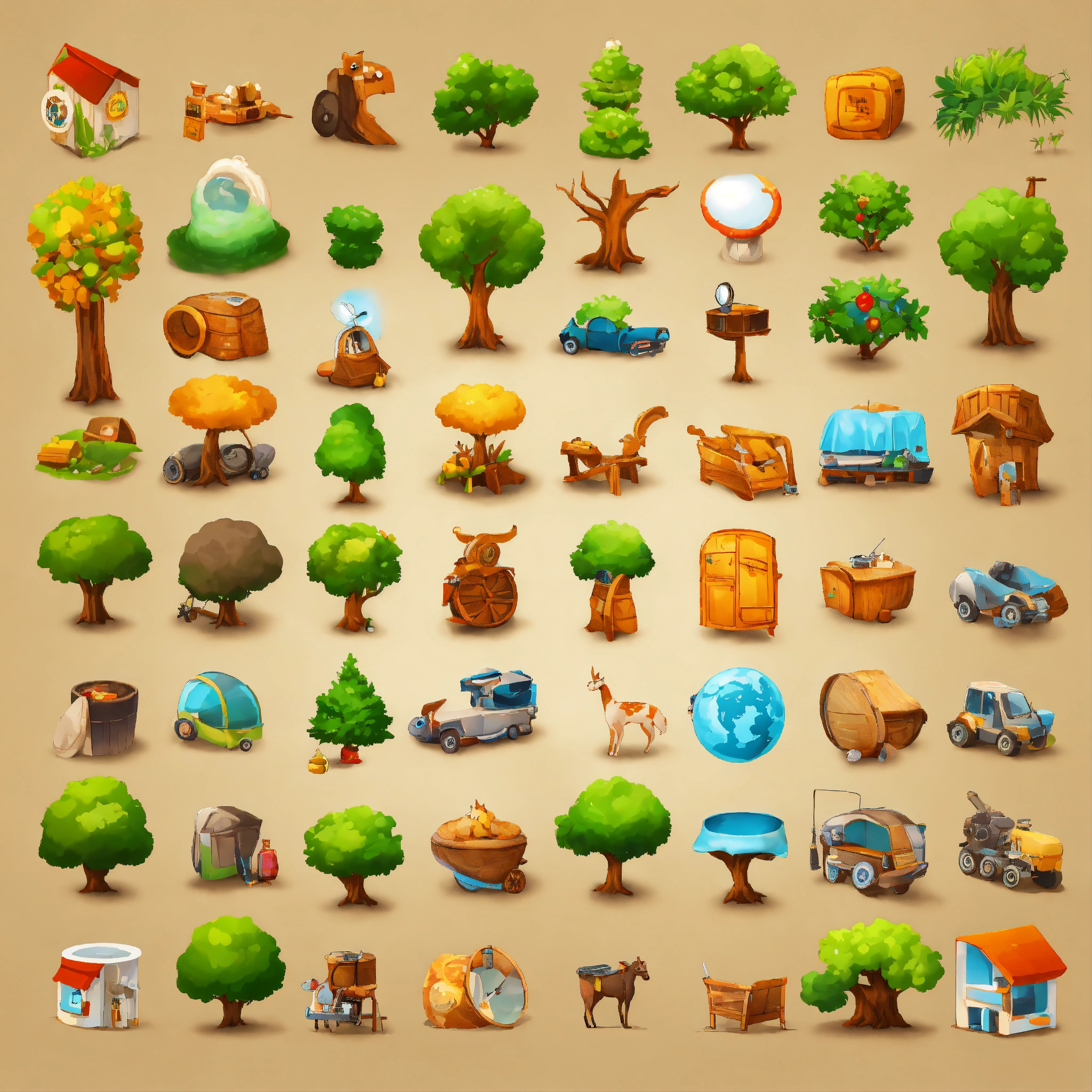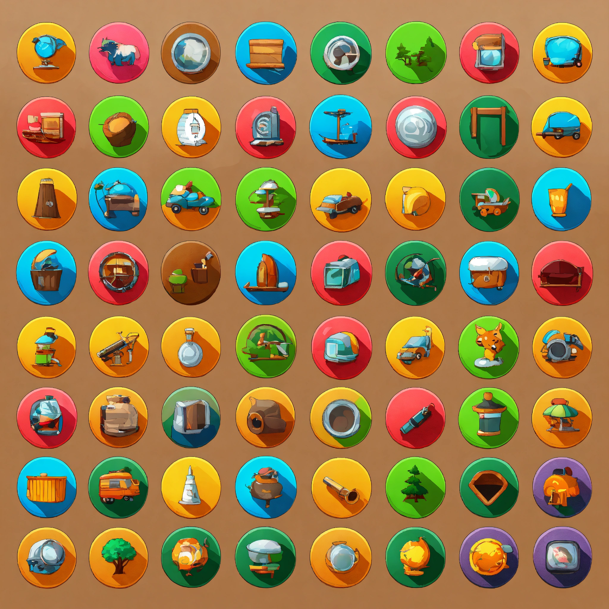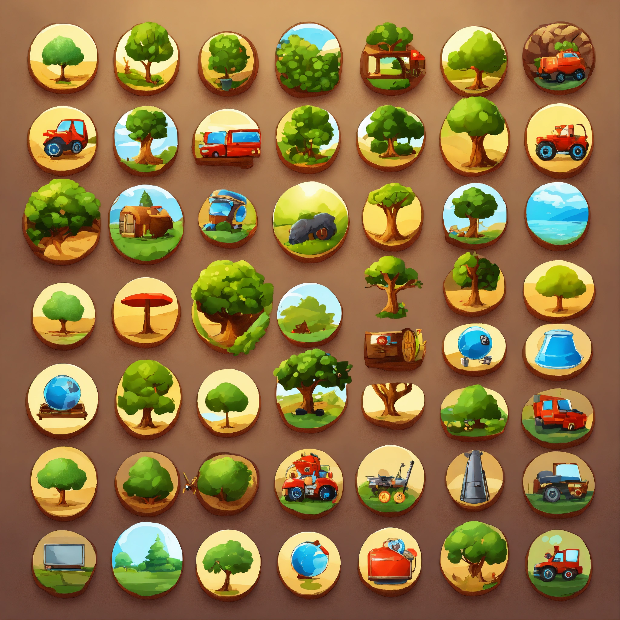 Cartoon high quality - pack of round icons for website - trees, animals, characters, monsters, environments, furniture, guns, hands, objects, vehicles