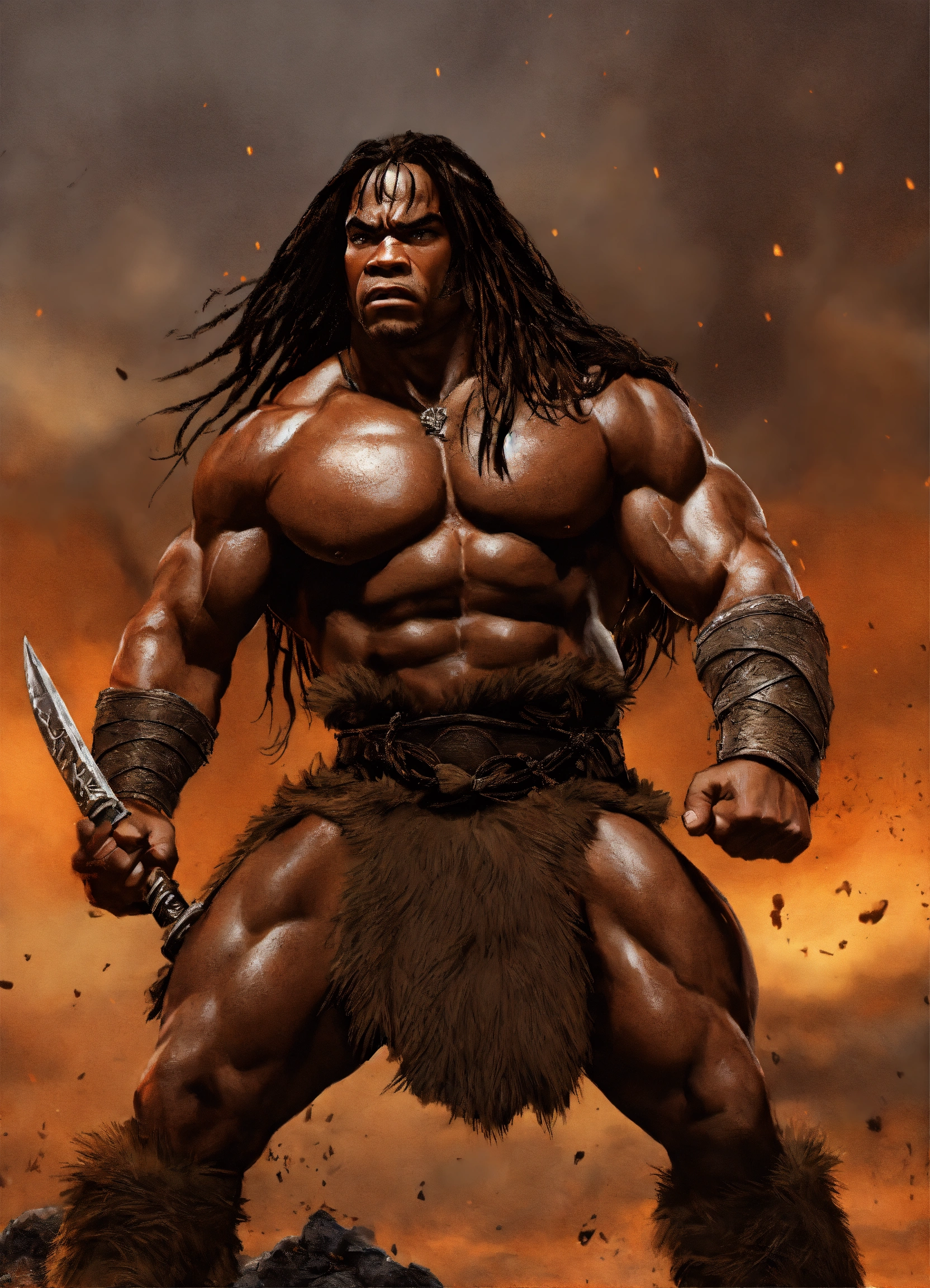 Angry kai greene as conan the barbarian high definition cinema 8k ubreal render drawn by todd mcfarlane