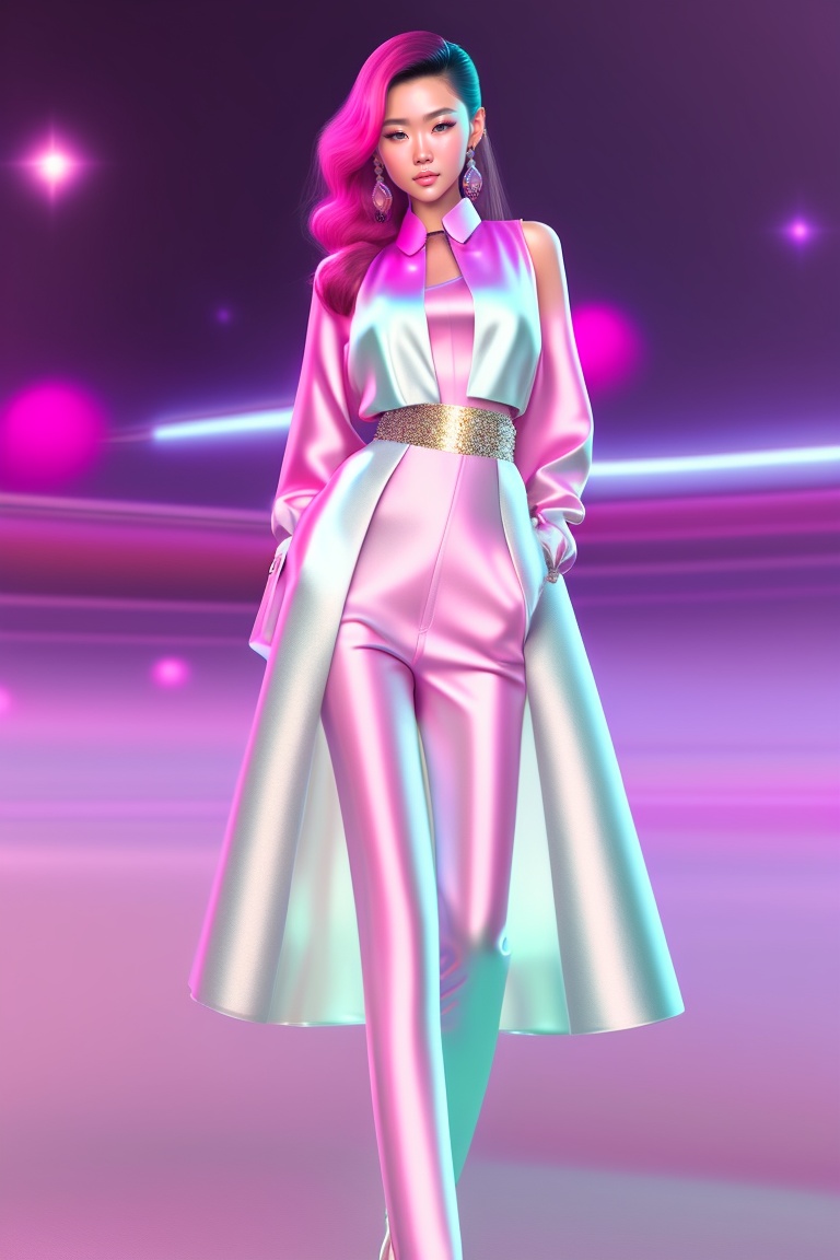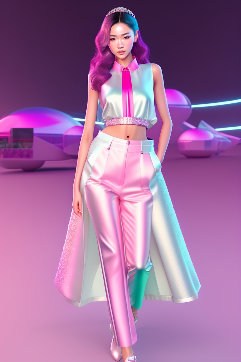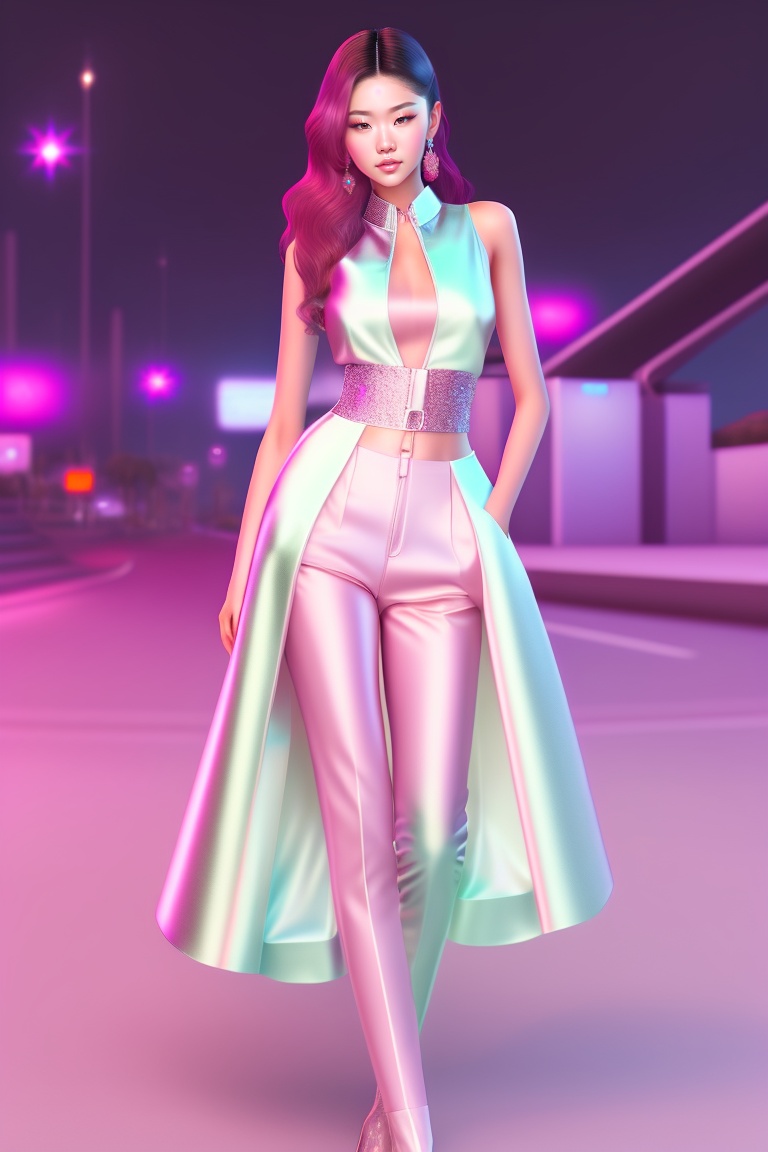 2000 style, glamour, y2k, 2000s, fashion suit, cute korean girl, modern korean fashion hairstyle, lifestyle, pink color, glitter, bijou, sportchic, cargo trousers, top with rushes from chiffon, crop top, details, sinematic, 8k, photorealistic, metropolis environment