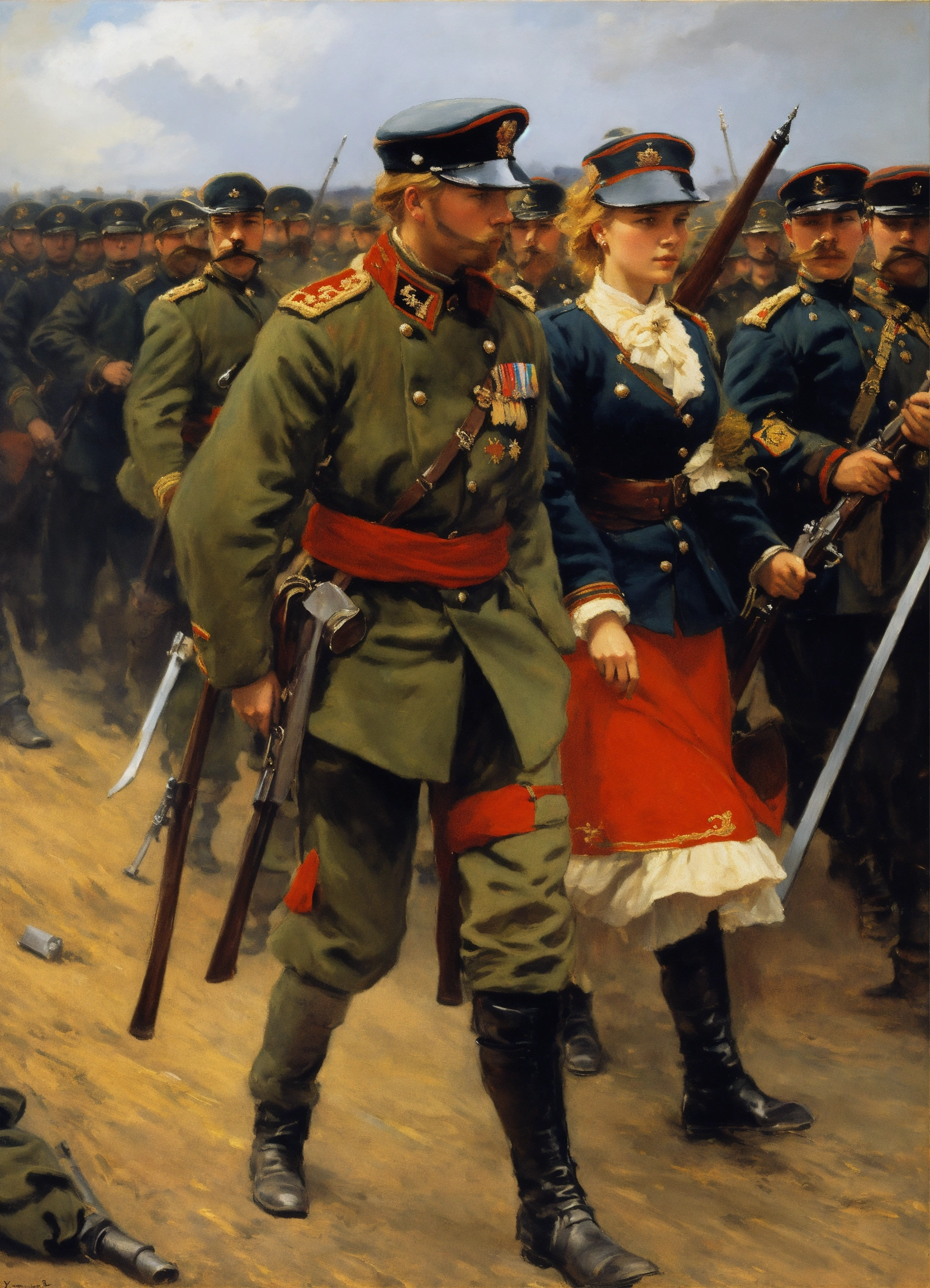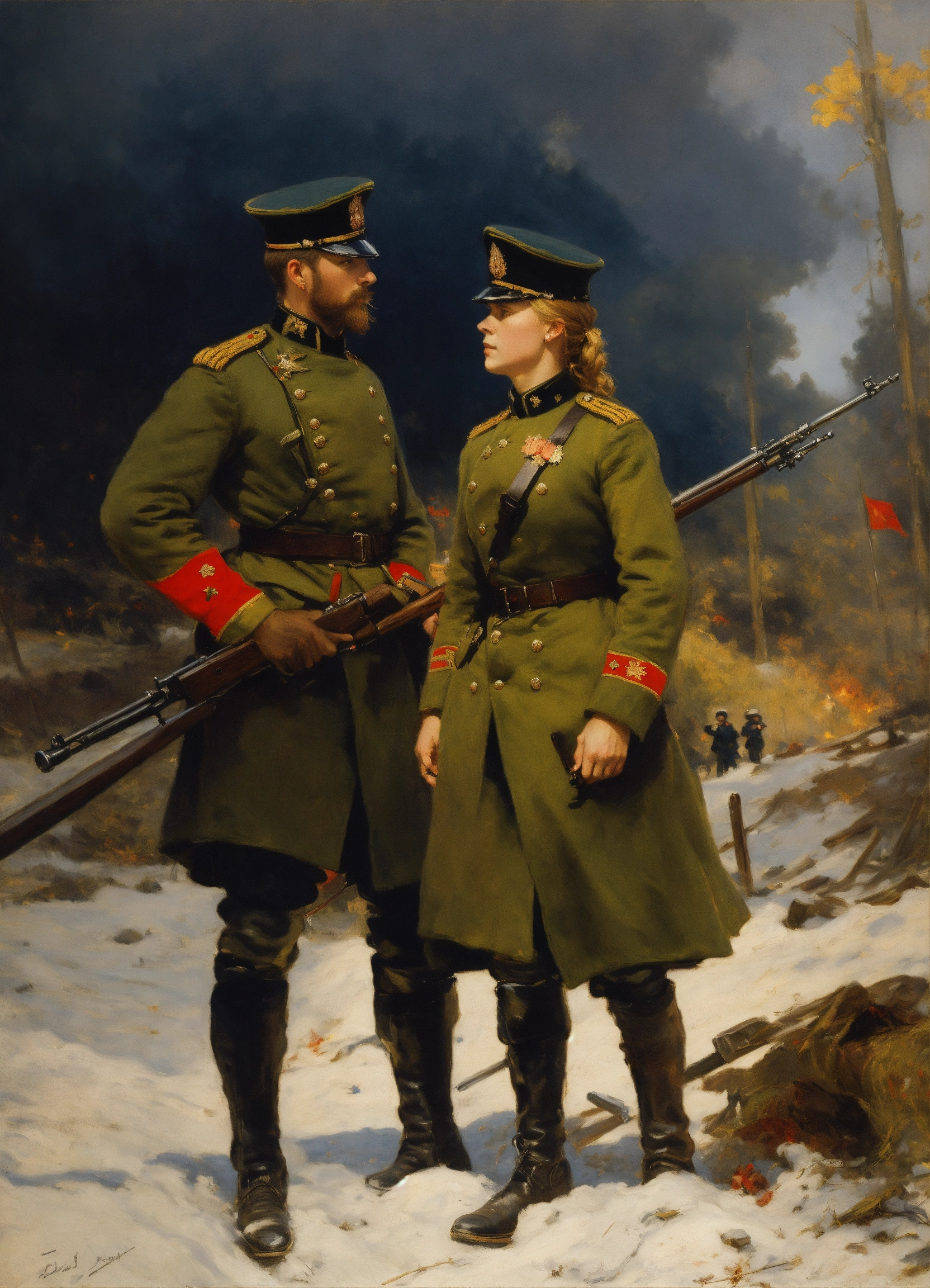 Artwork by ilya repin male and female soldiers in battle of tannenberg