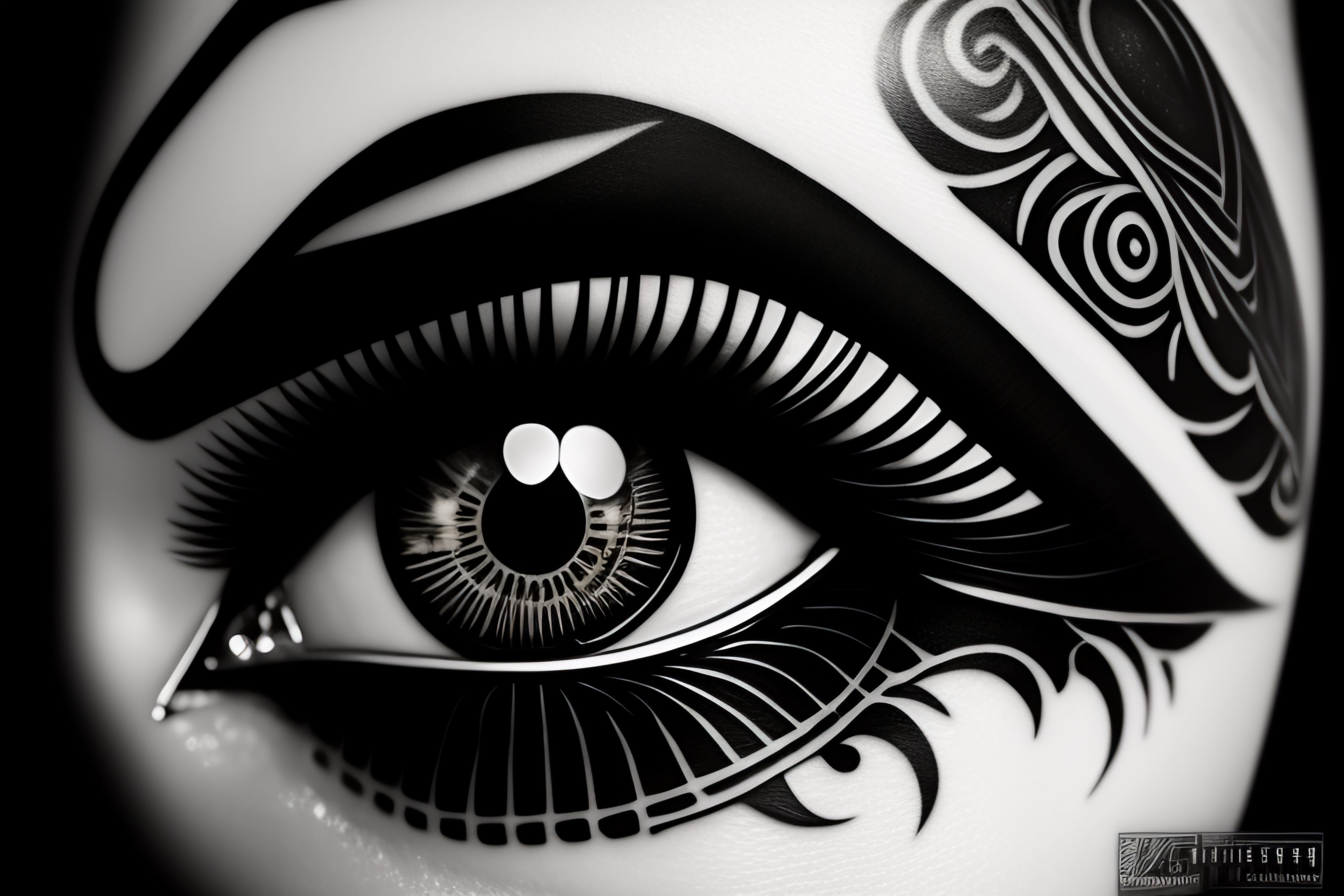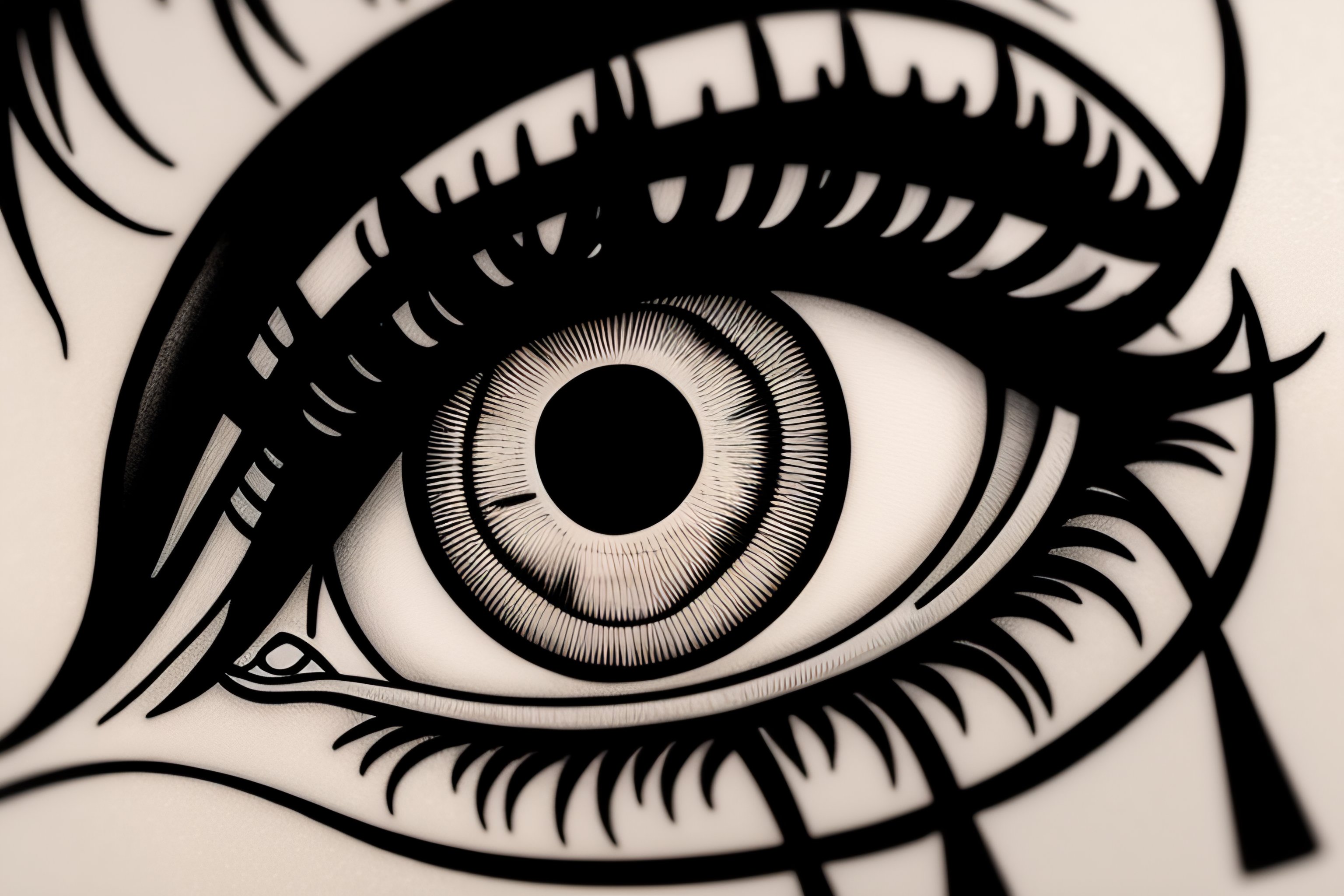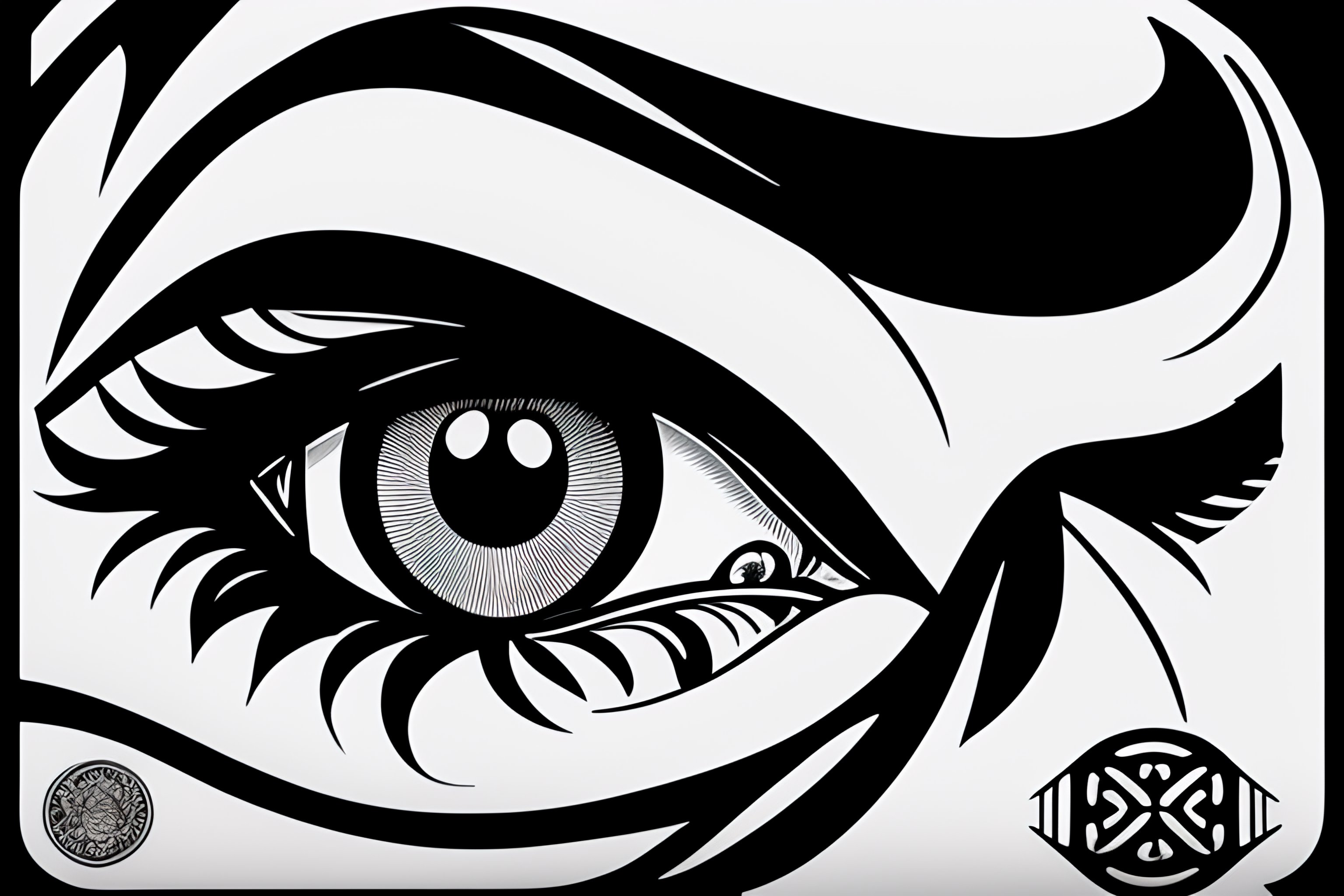 A tattoo stencil of vintage anime eyes in blackwork style!, crying, in high definition, art station, very very detailed, many sharp edges
