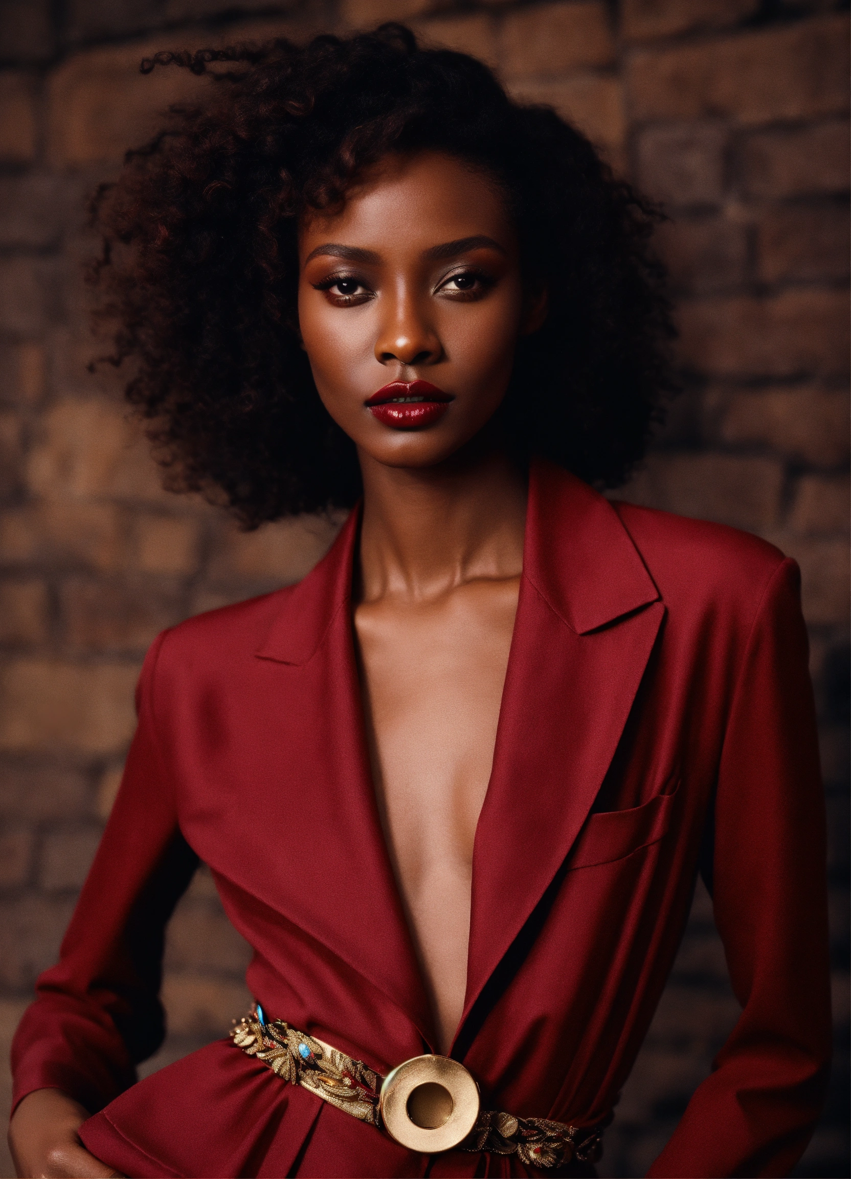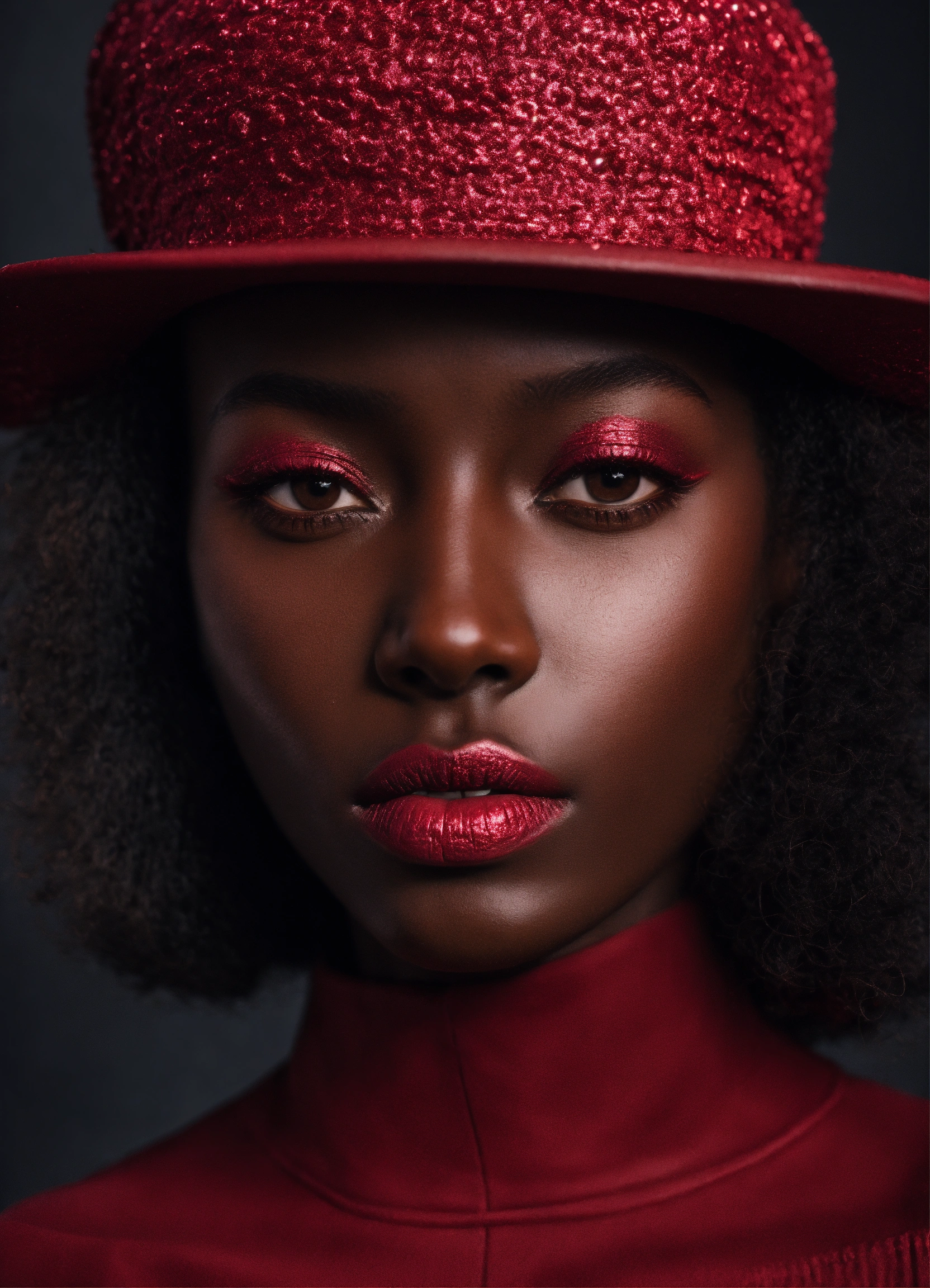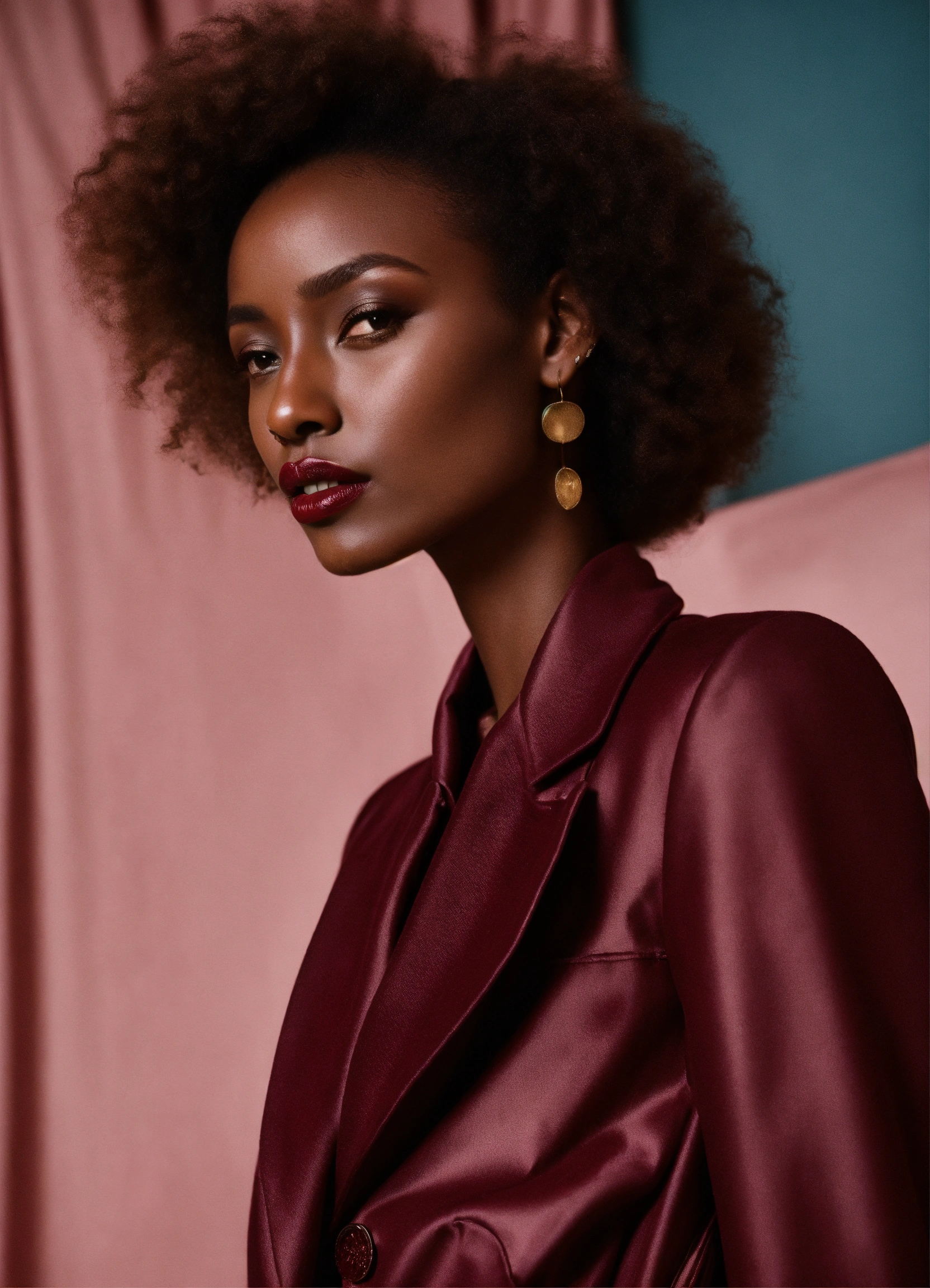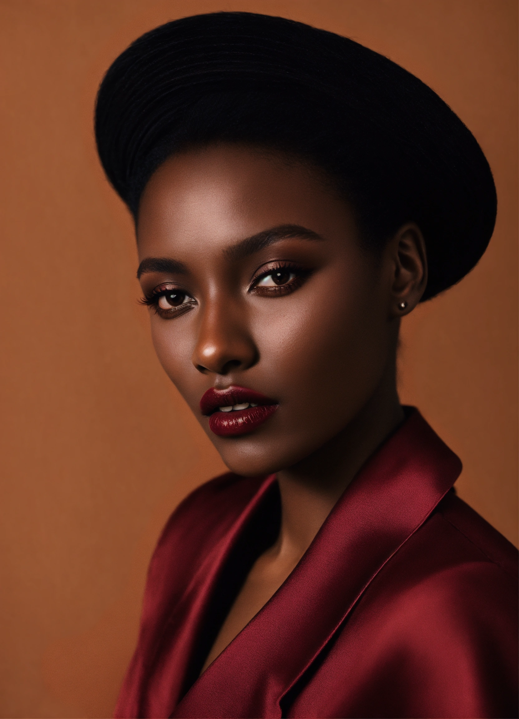 Senait gidey vintage fashion model deep cocoa skin bright maroon lipstick