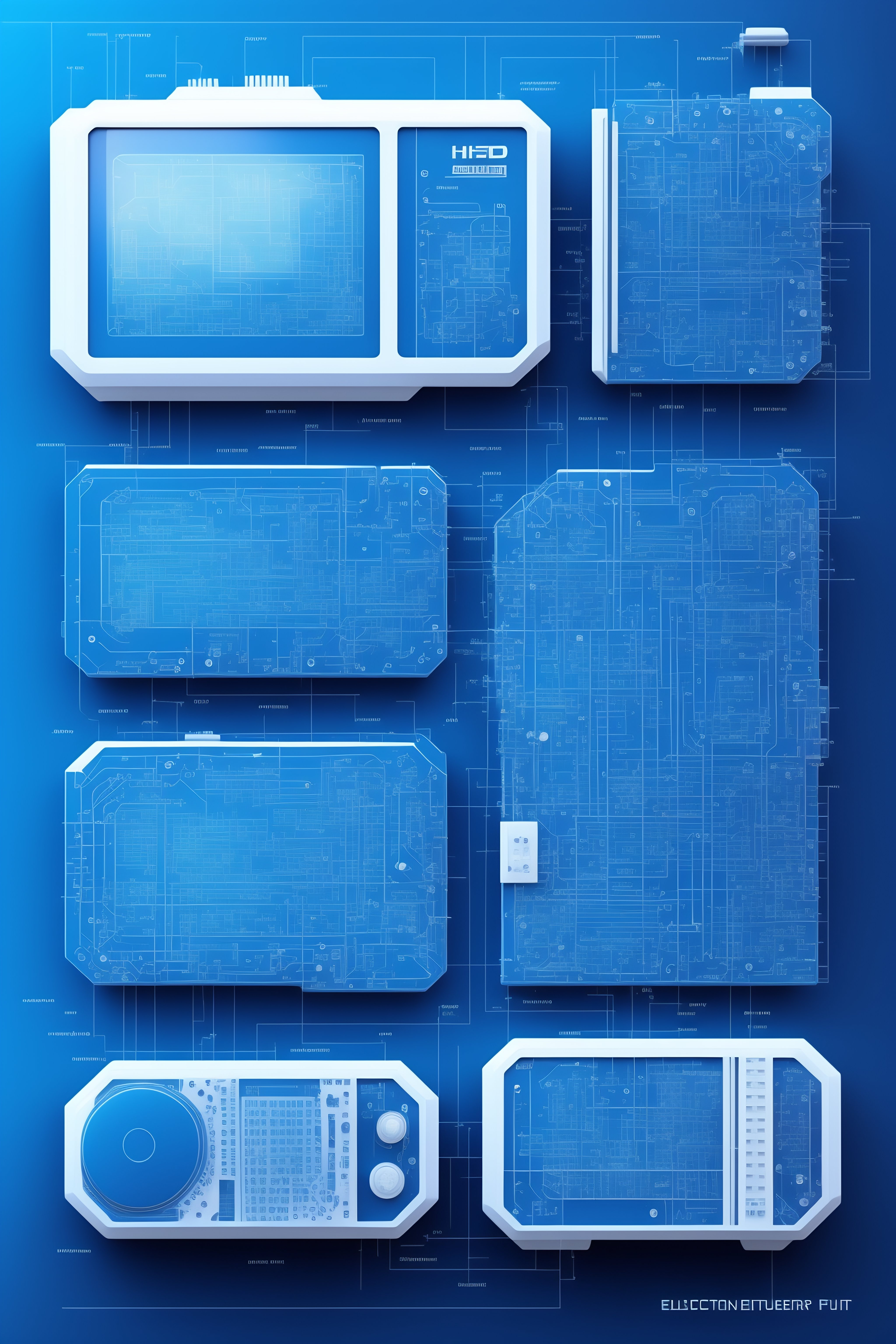 Detailed blueprint of an electronic device of the future
