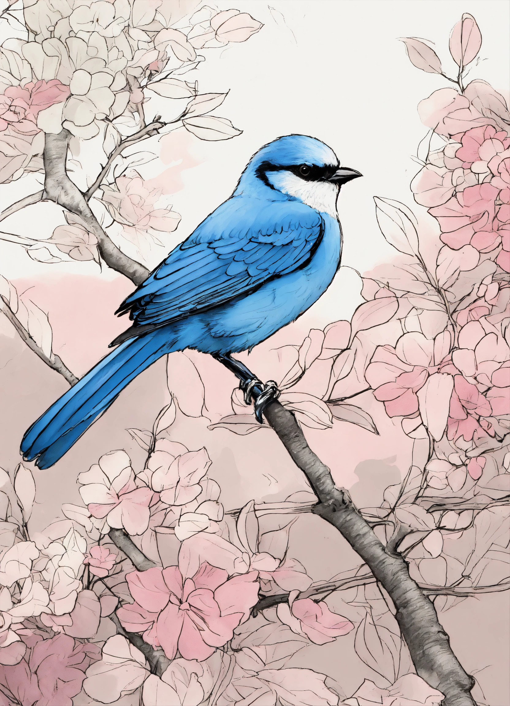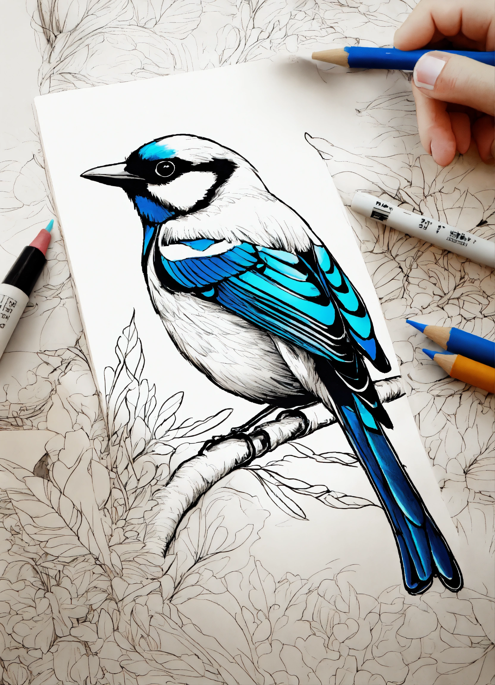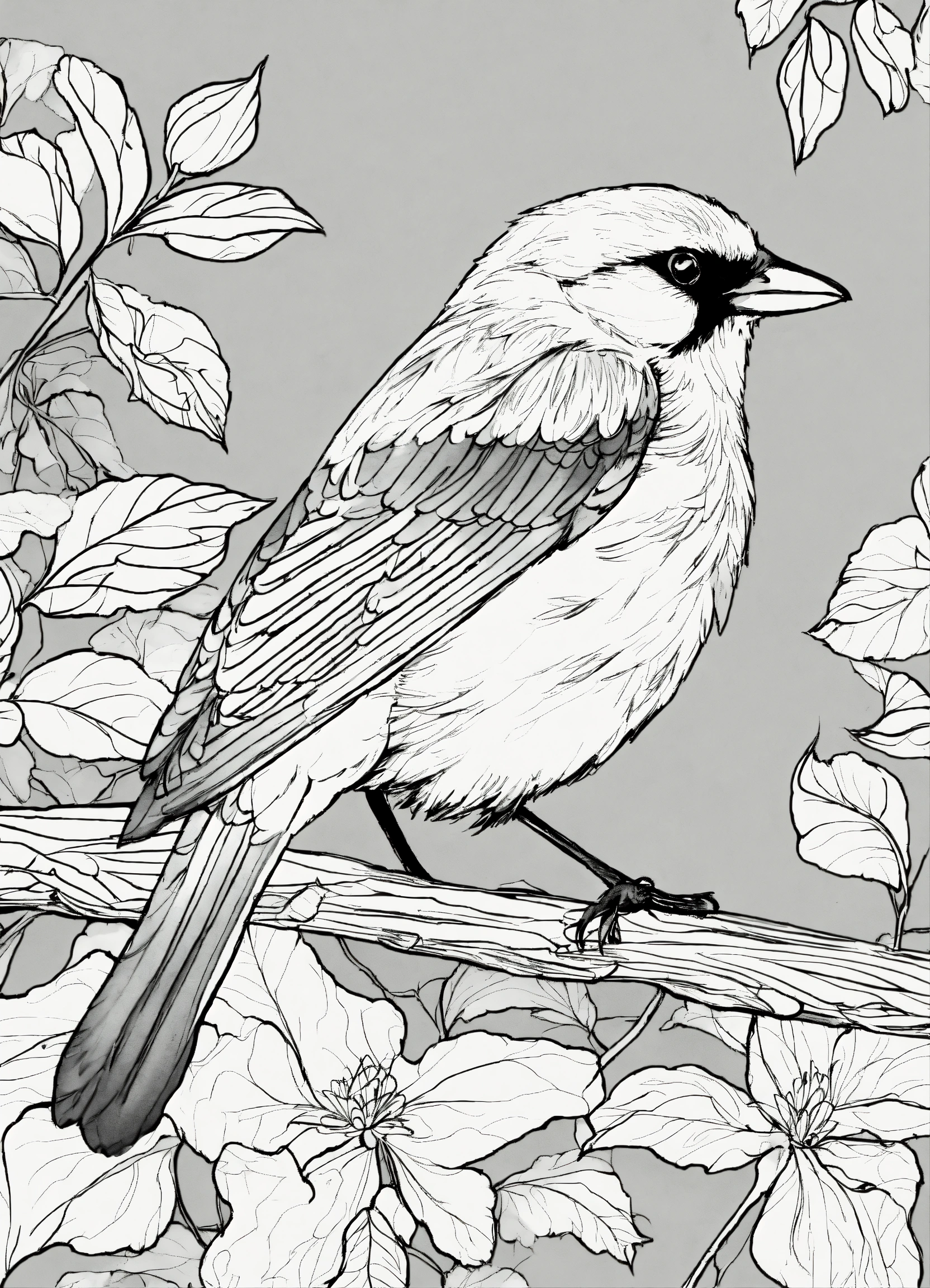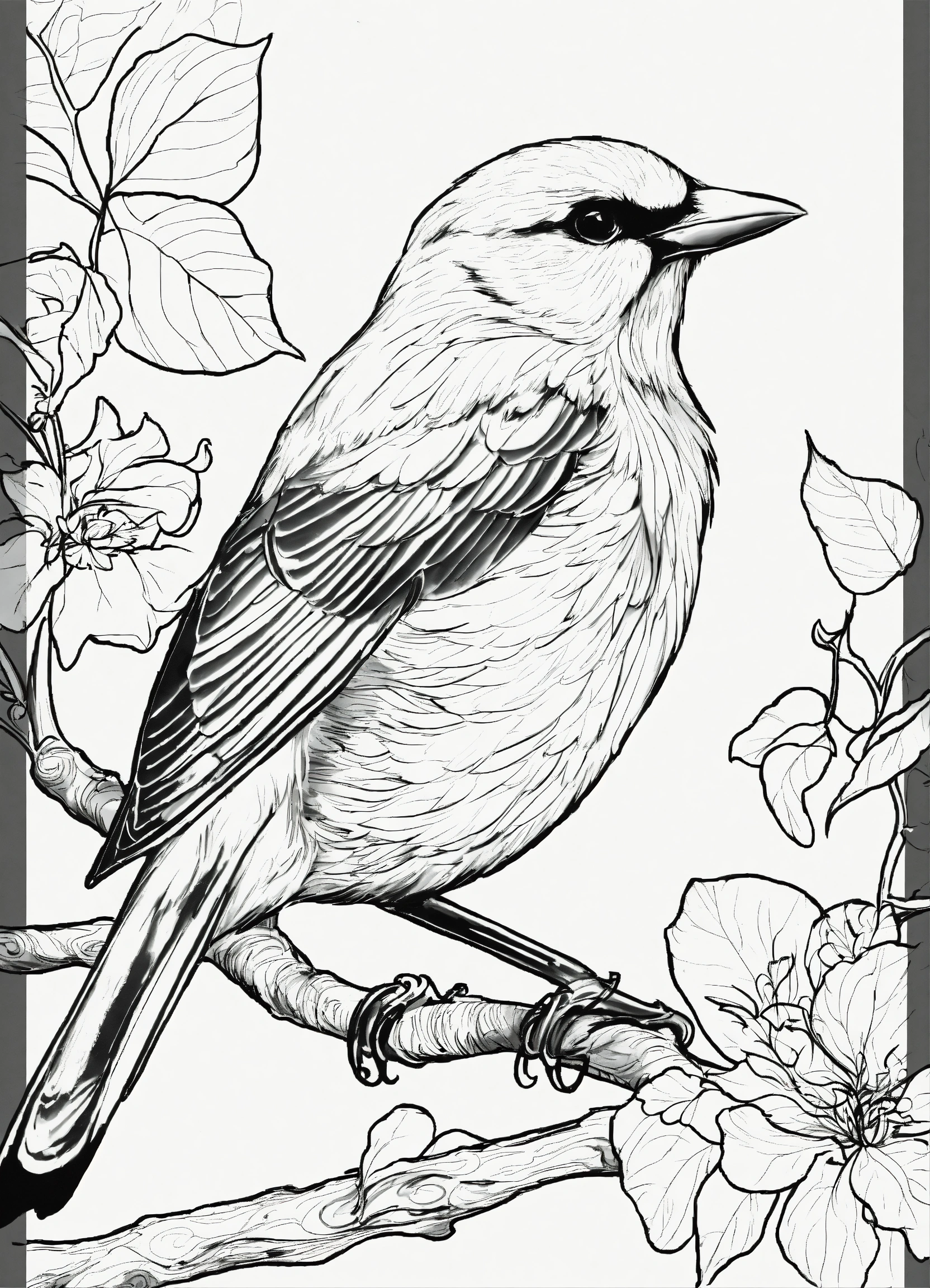 Create a picture with a bird and sketch it with the colors black and white, turn it into a base for coloring