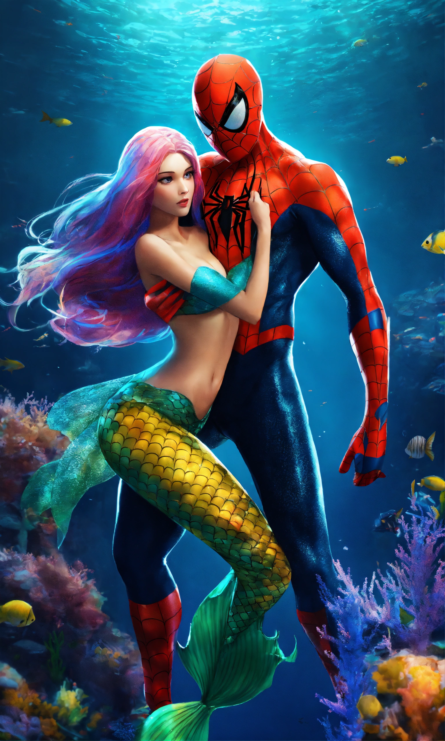 Spiderman with a girl mermaid