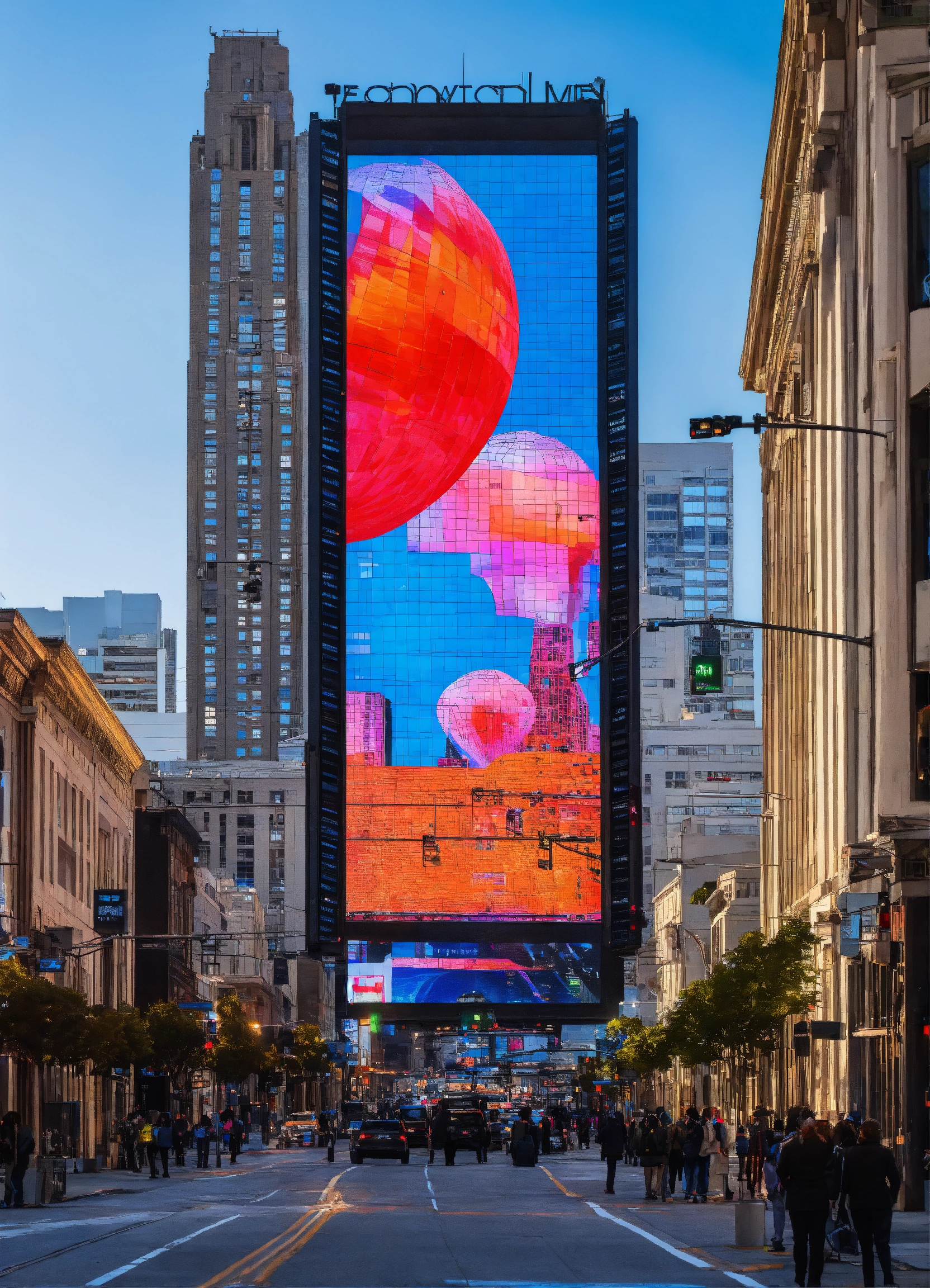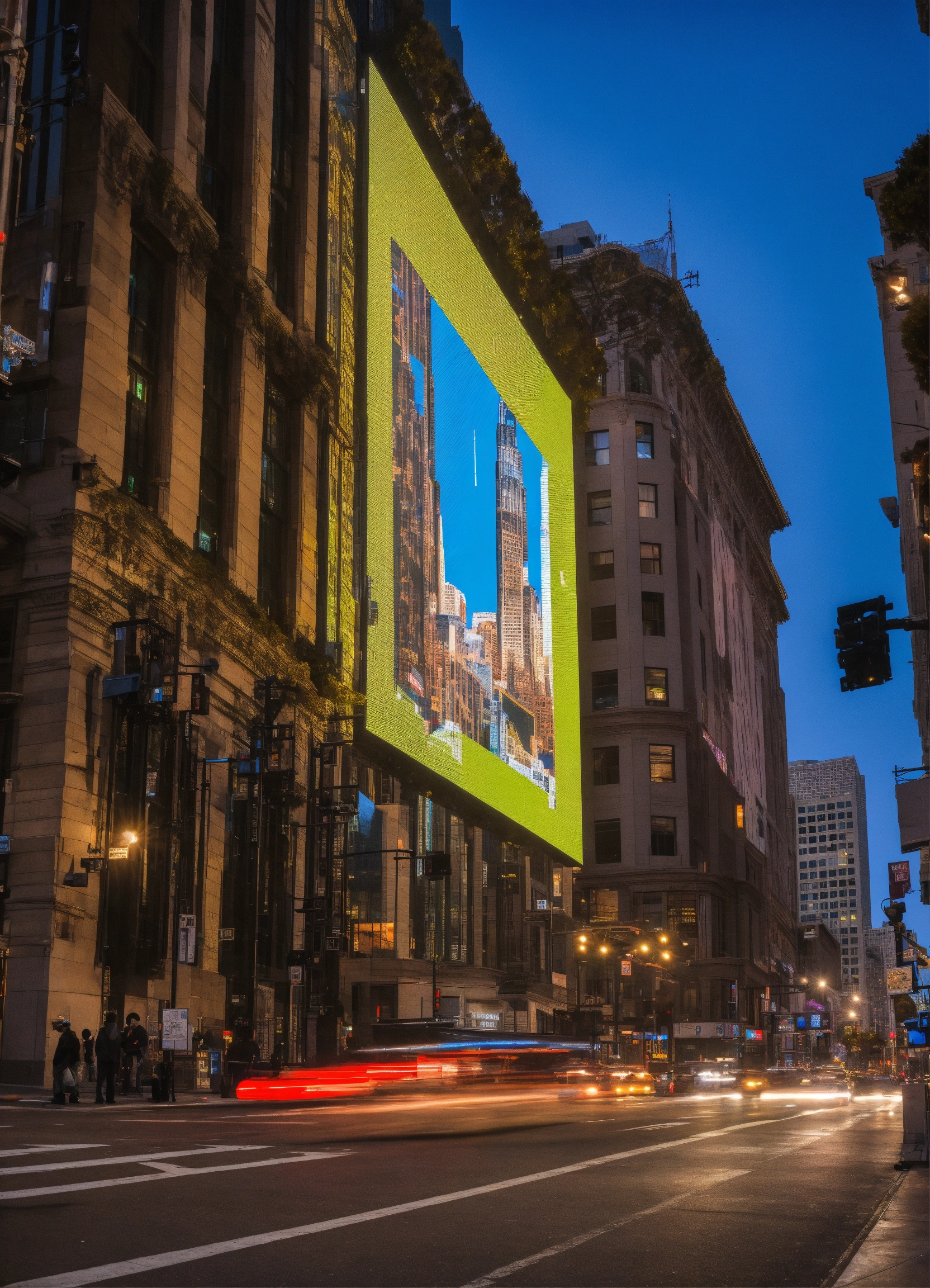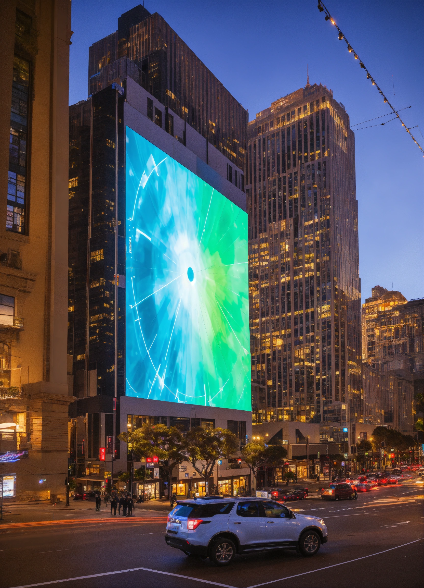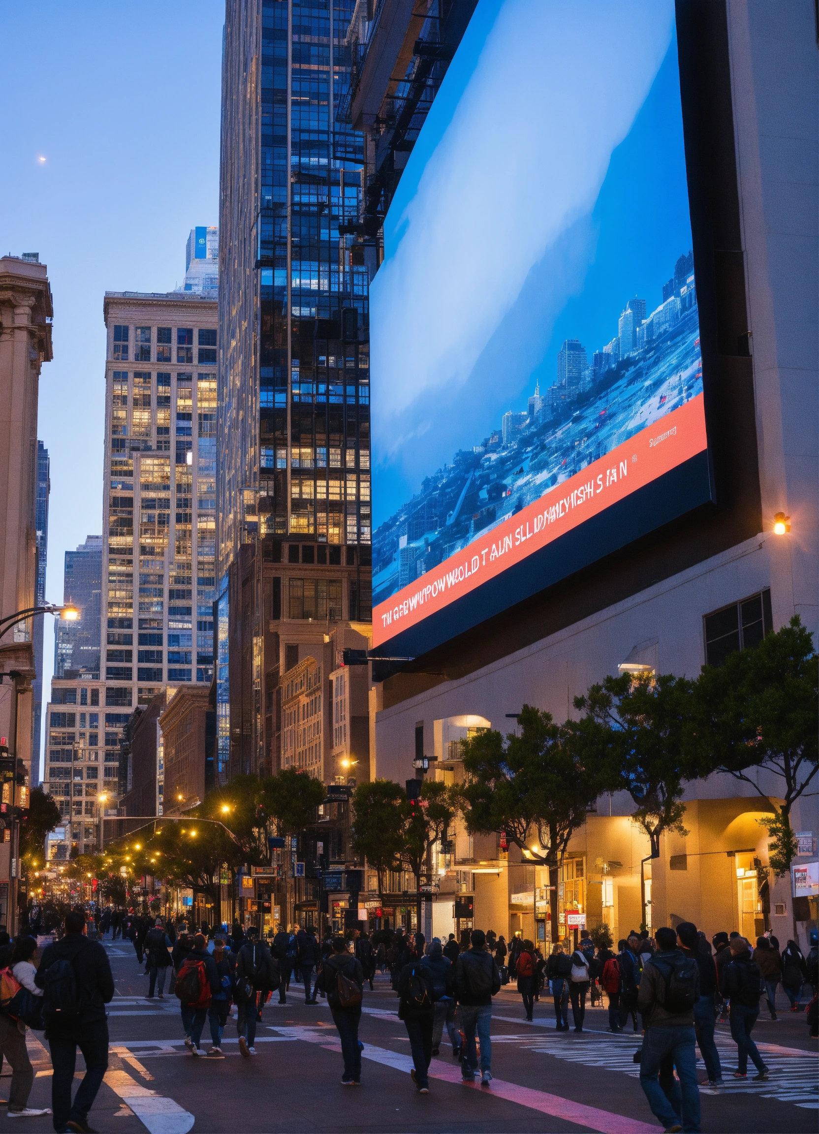 In downtown sf people learn about technology on giant led screens on buildings