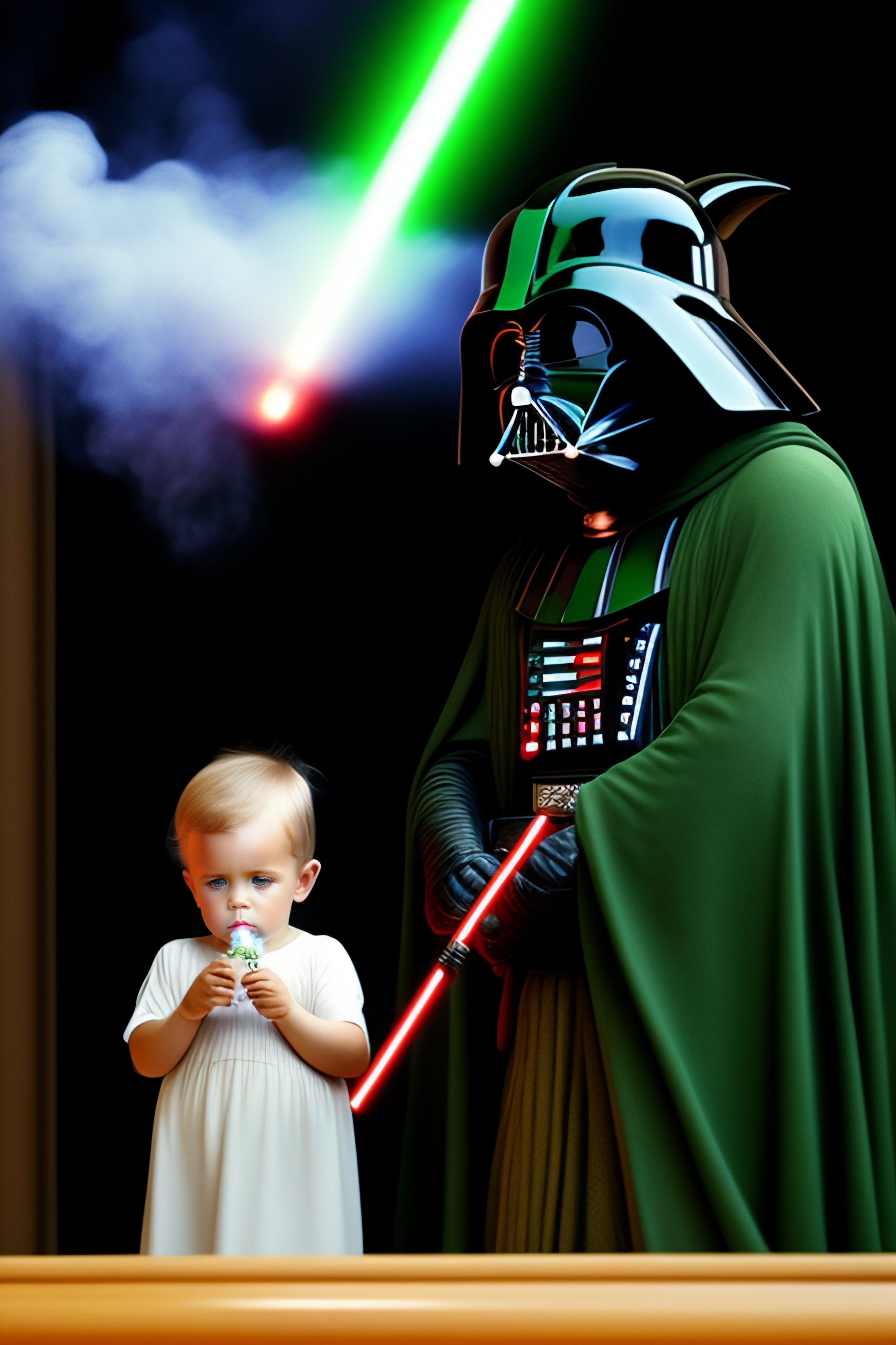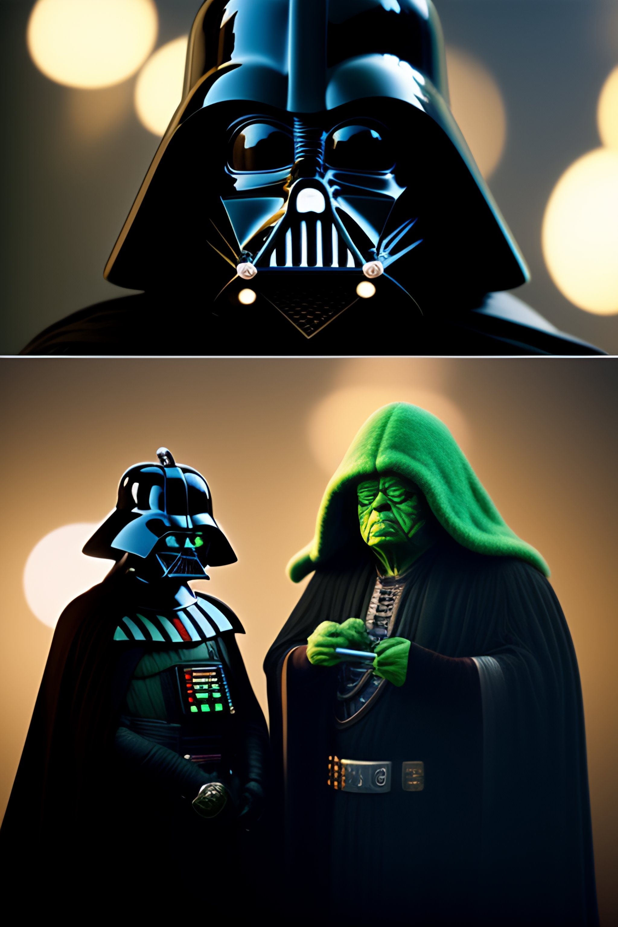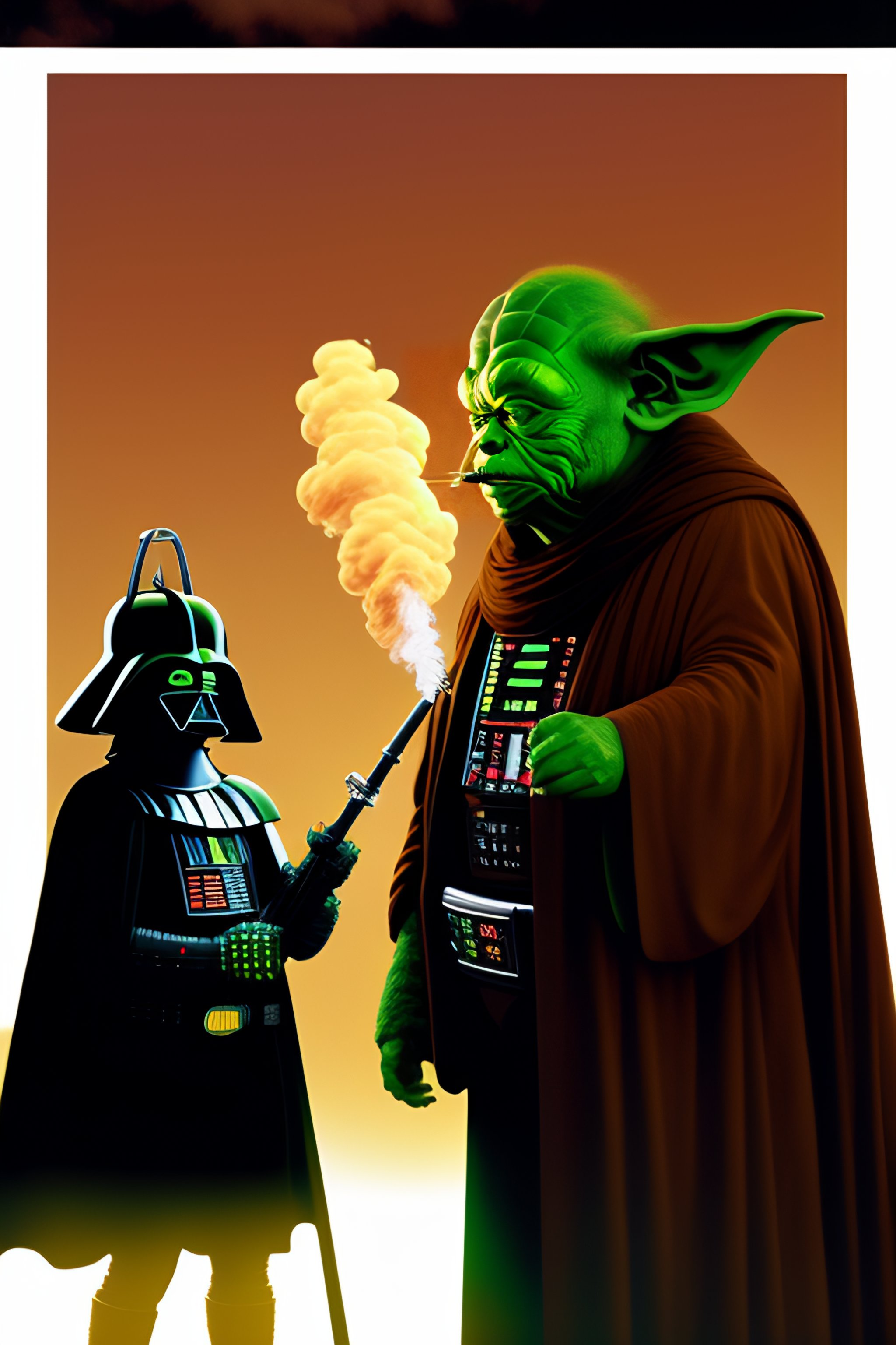 Darth vader and yoda smoking a giant blunt