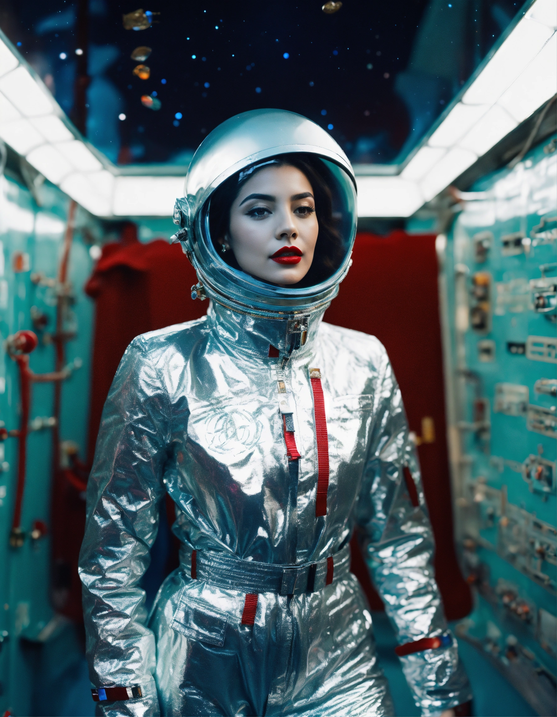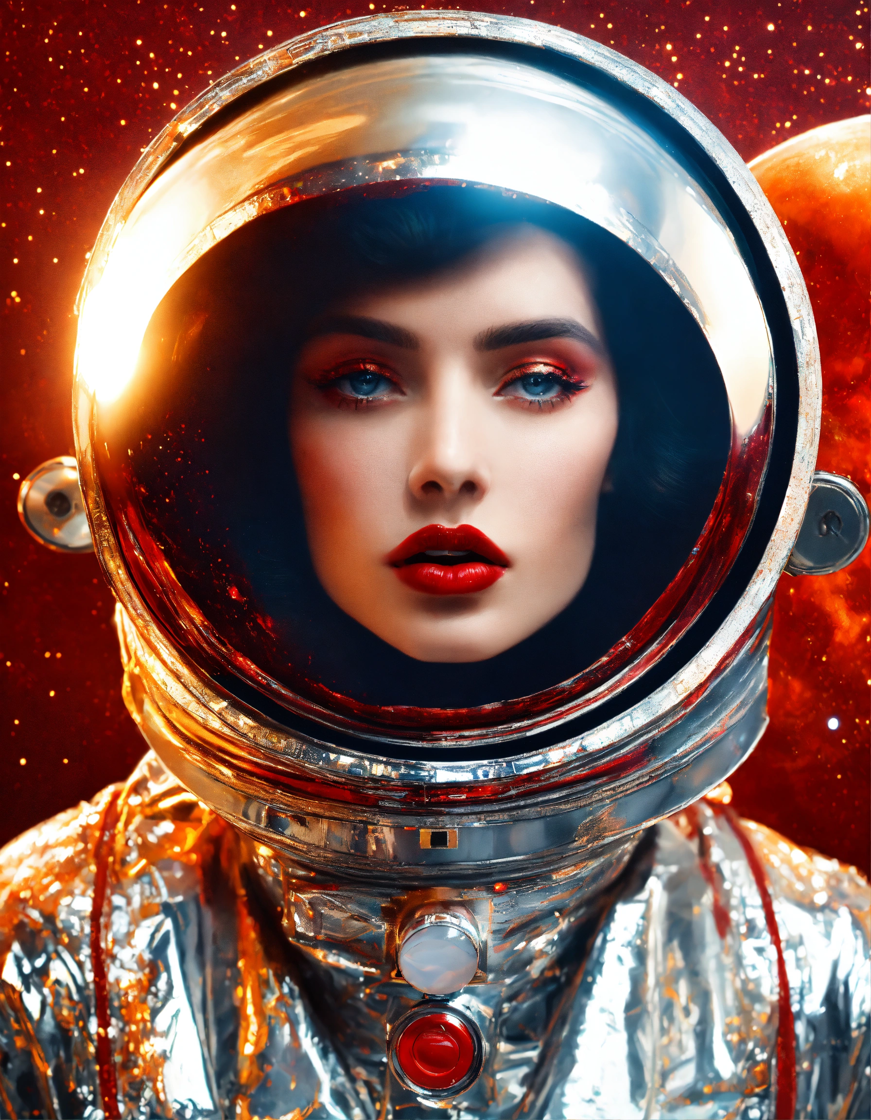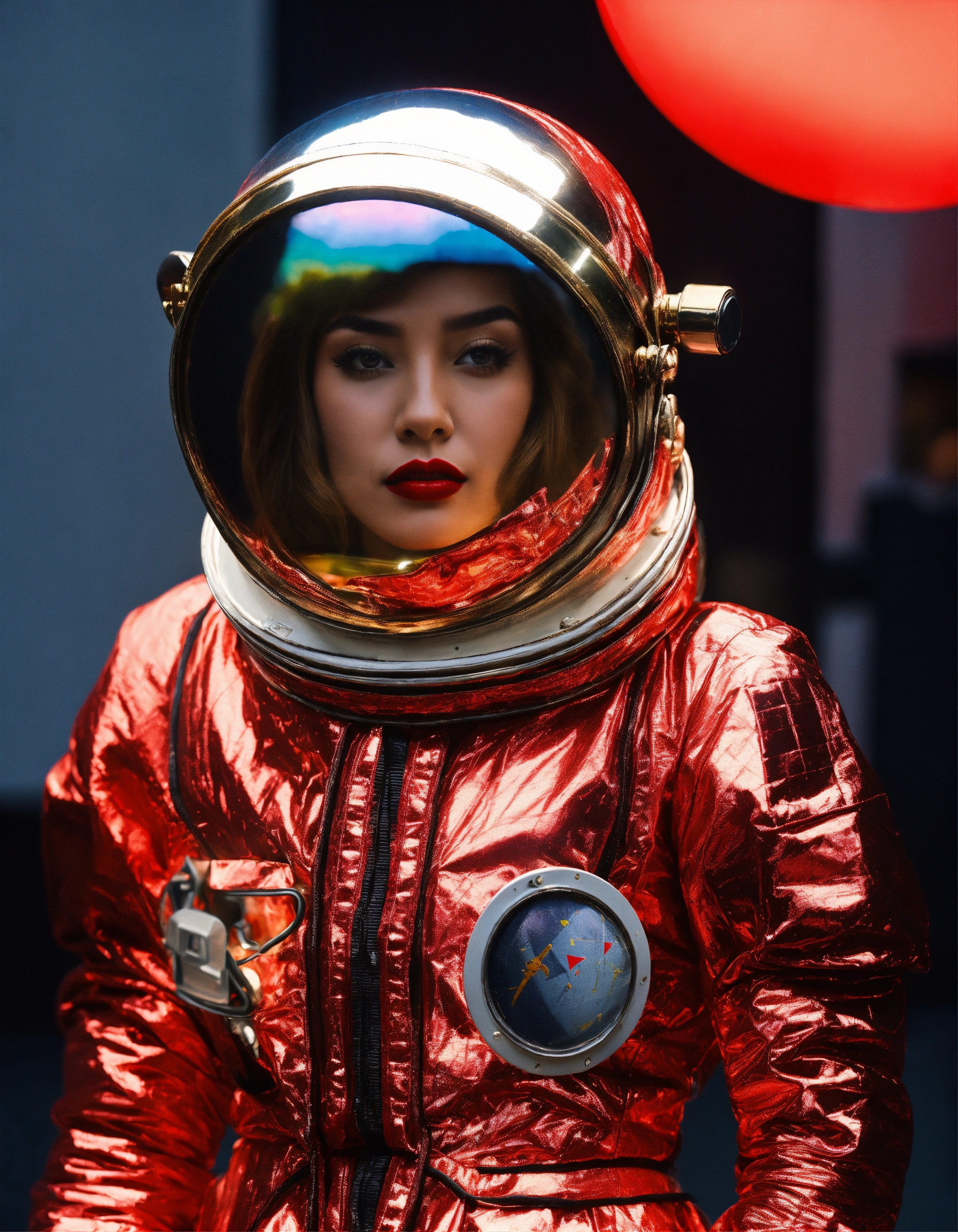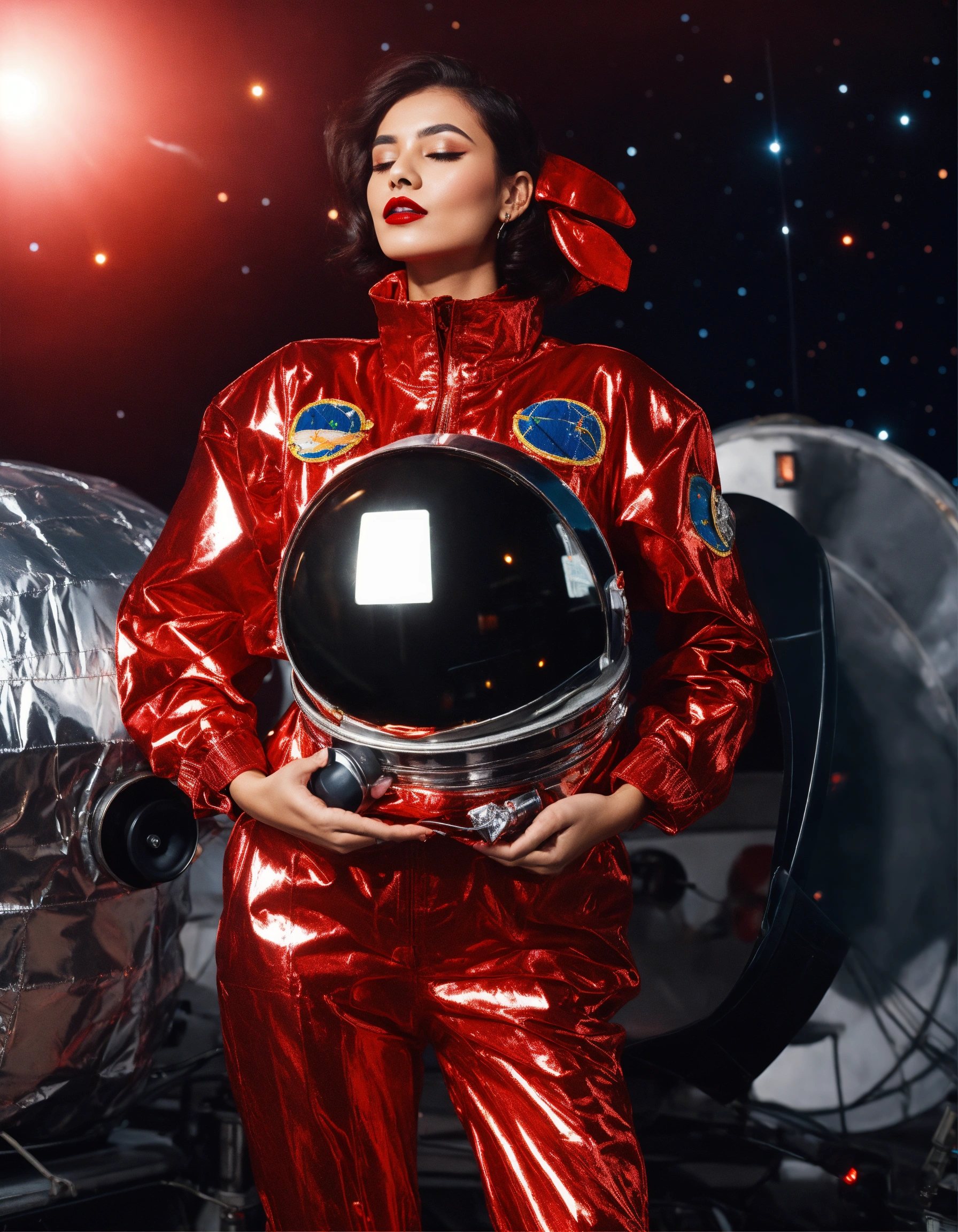 Space satellite petrol mirror lux bisht chanel suit solar panel tin foil red lipstick