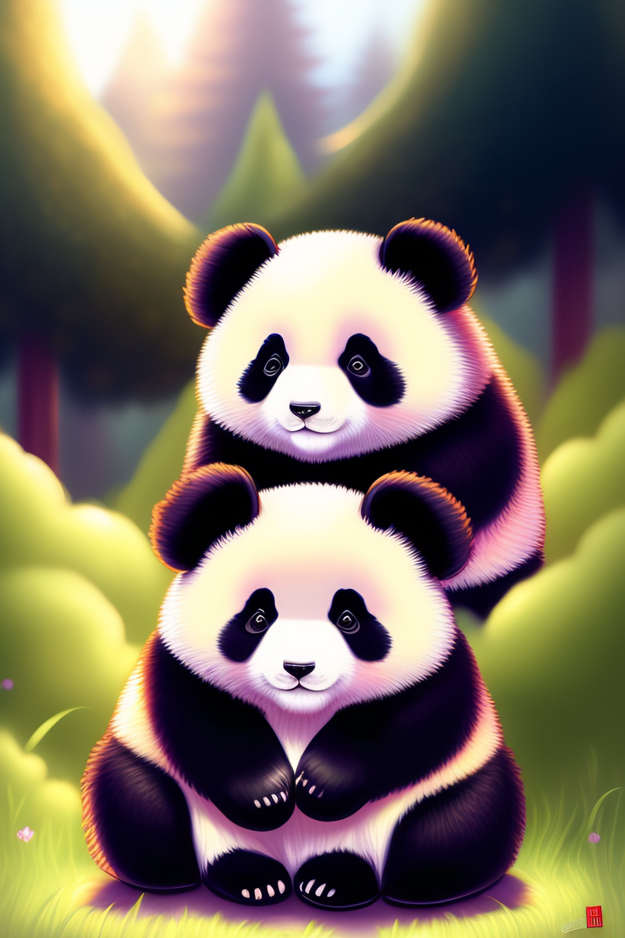 Cute fluffy panda drawing, fantasy, illustration, dreamlike, super cute, high octane, childrens room art, silverfox5213 deviant art