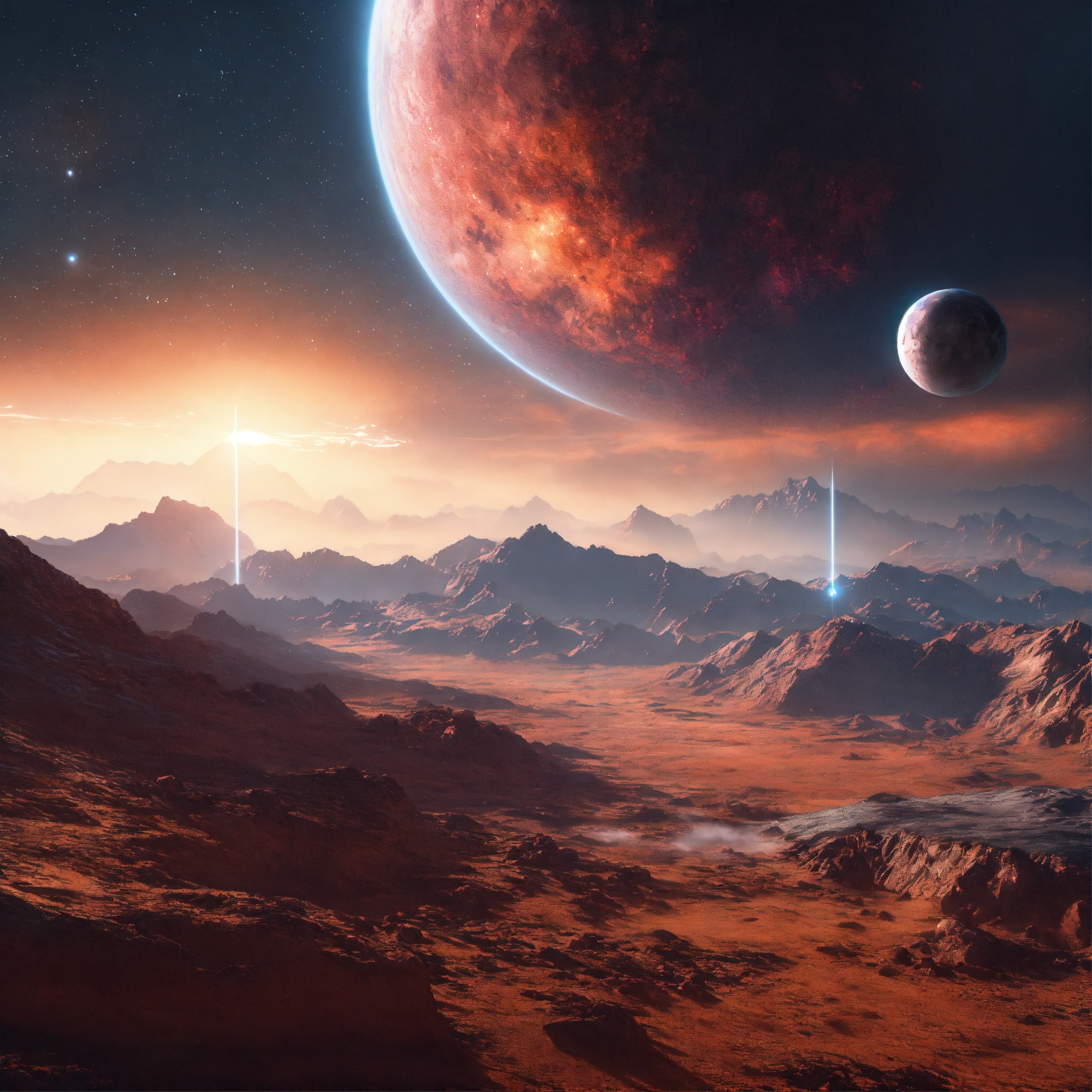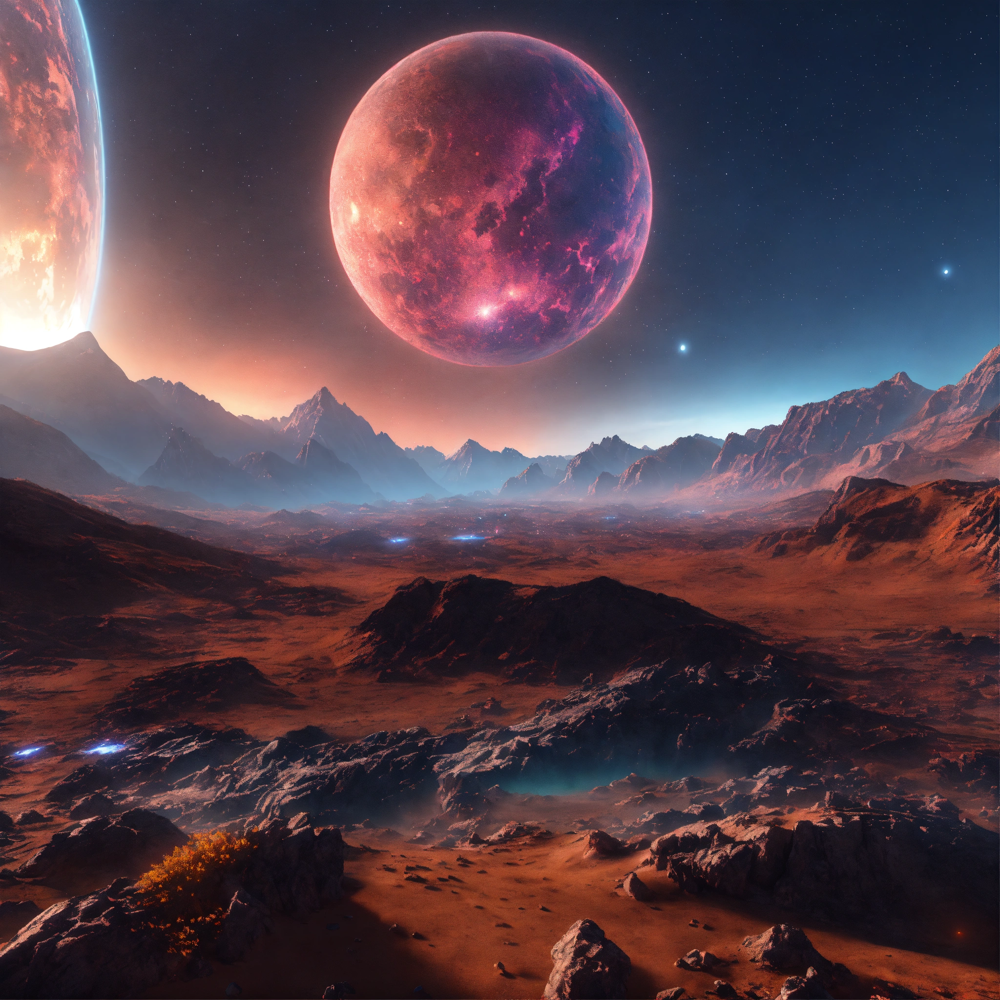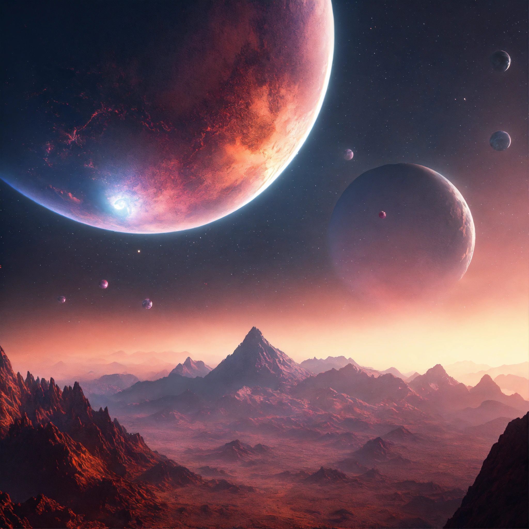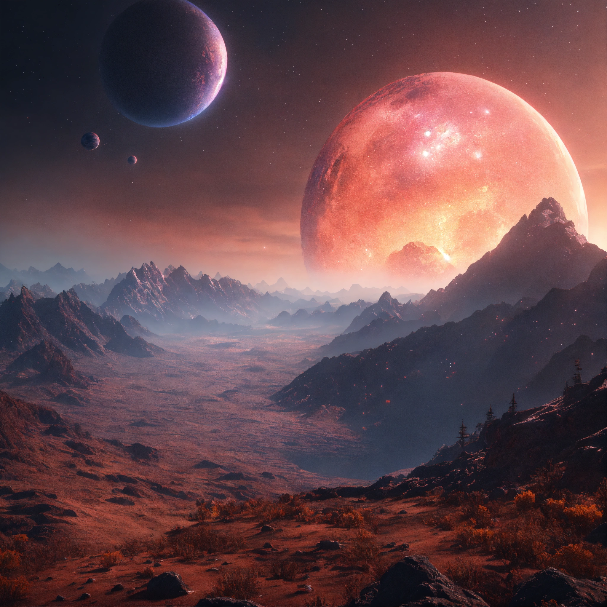 Planet in background, being reincarnated into a new world, sky nebula, artstation scifi 3d scene of a showing mountains, maximalism, ambient occlusion, atmospheric haze, unreal engine, hyper realism, realistic shading, cinematic composition, realistic render, octane render, detailed textures, photorealistic, wide shot