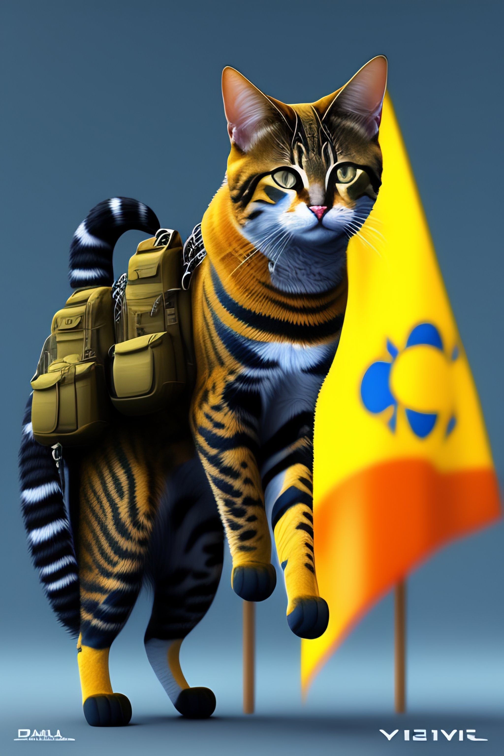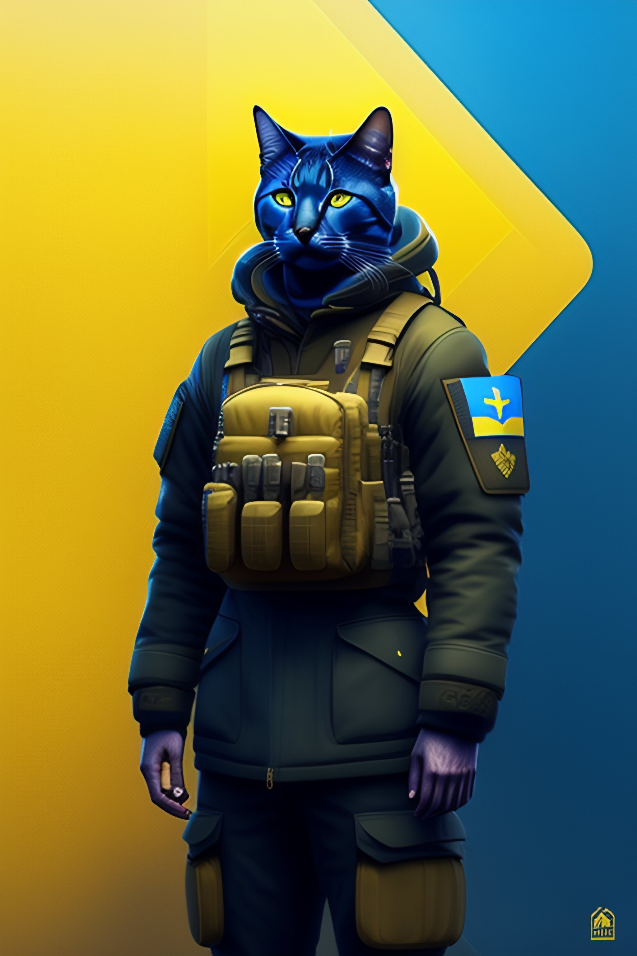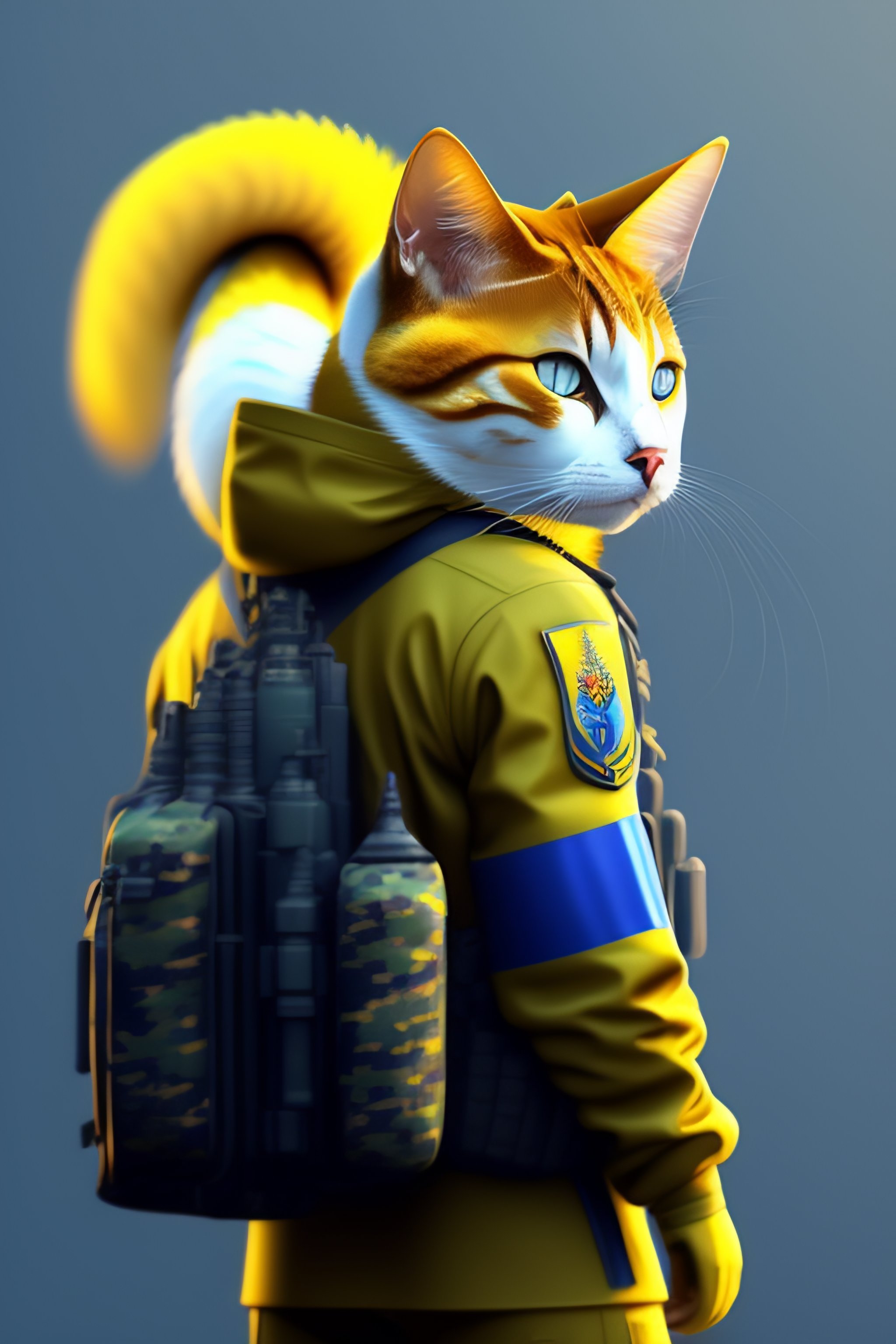 Ukraine, cat, ukrainian military, trident, yellow, blue, flag of ukraine, pixel camo, character concept, concept art, character design, 3d character