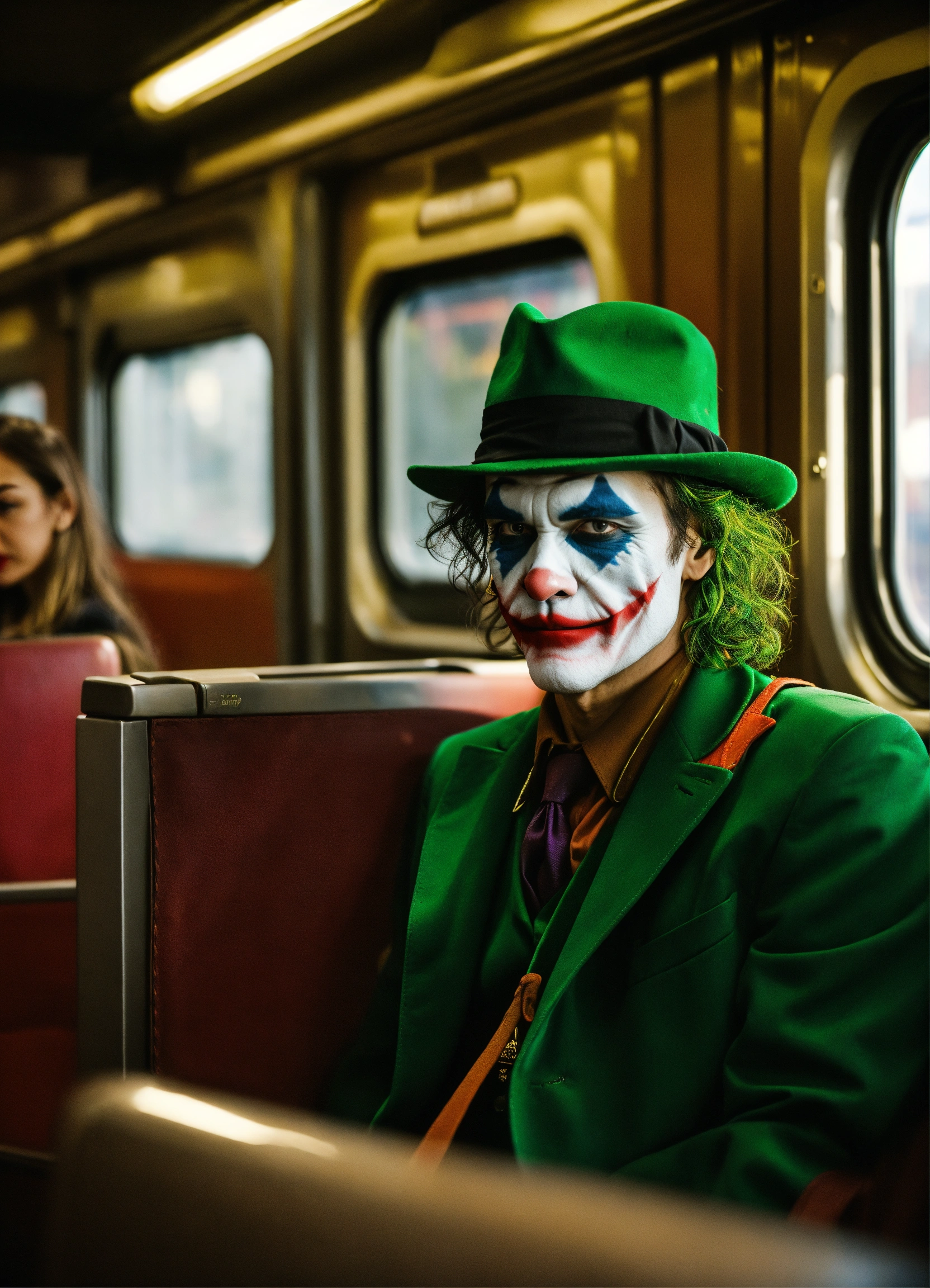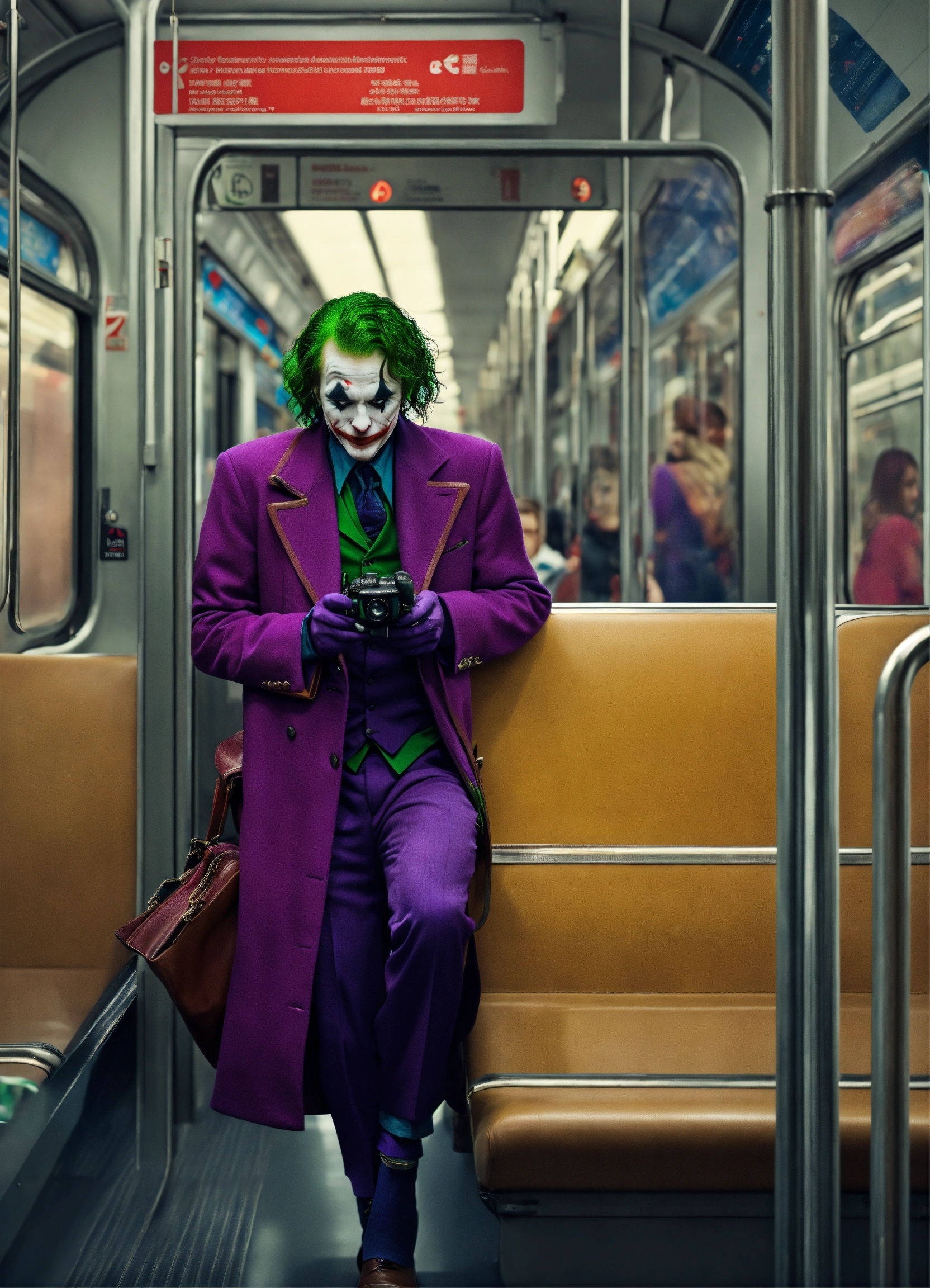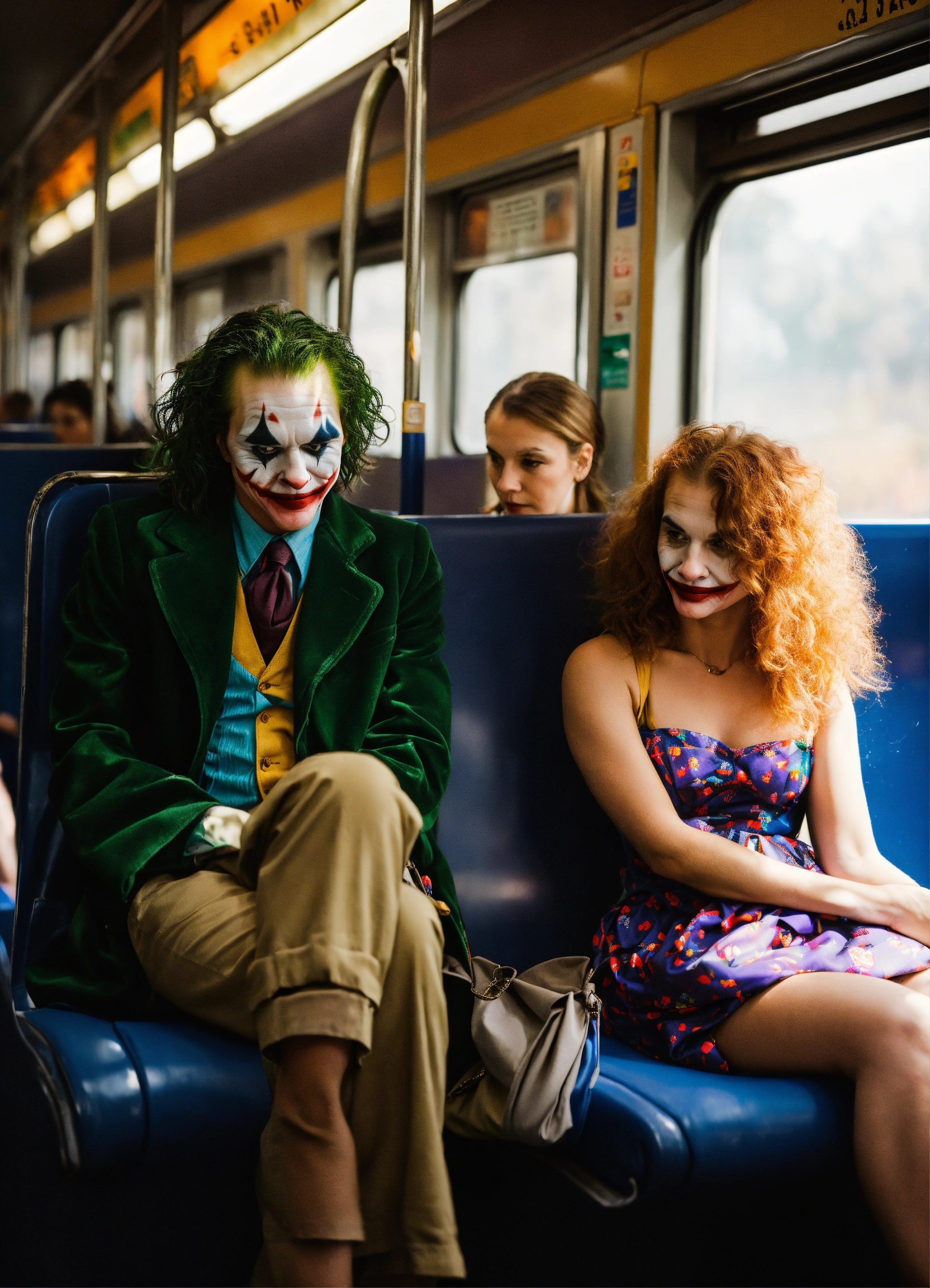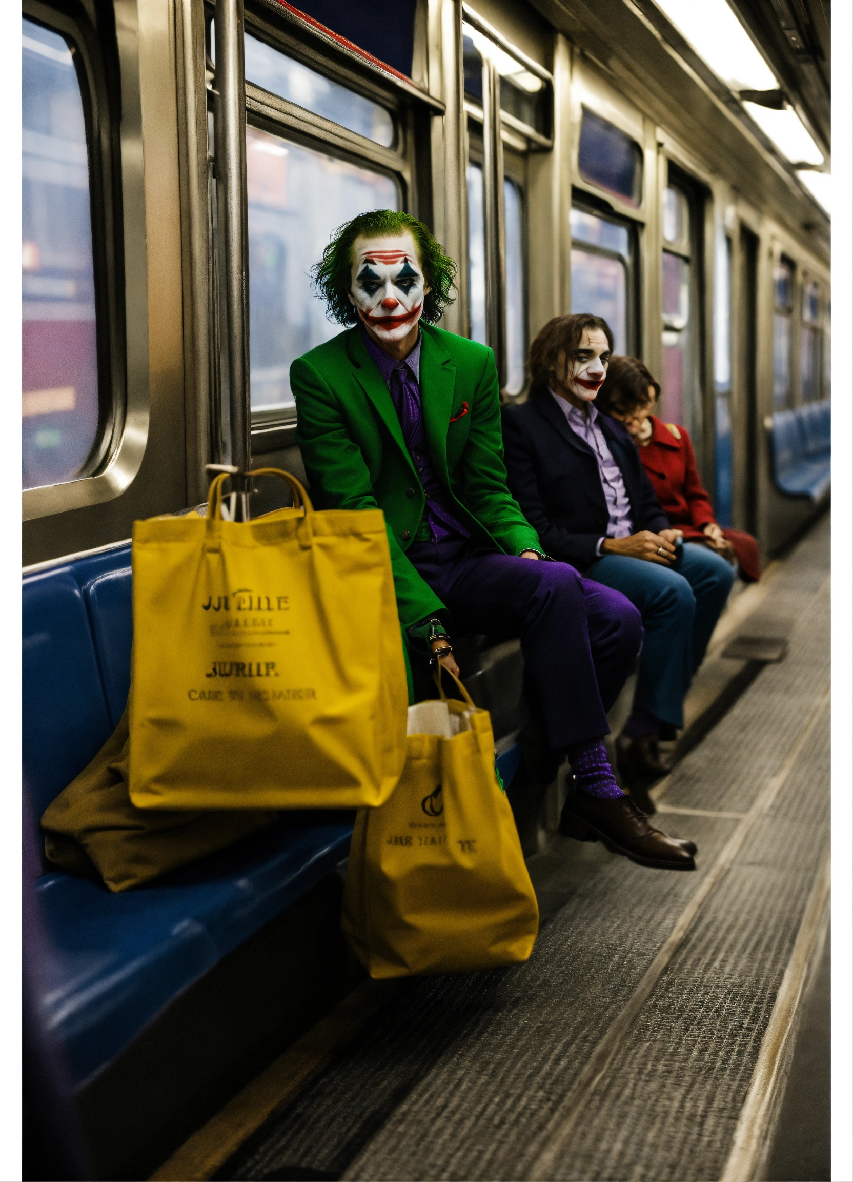 Joker wears a bag. riding the train with juliet