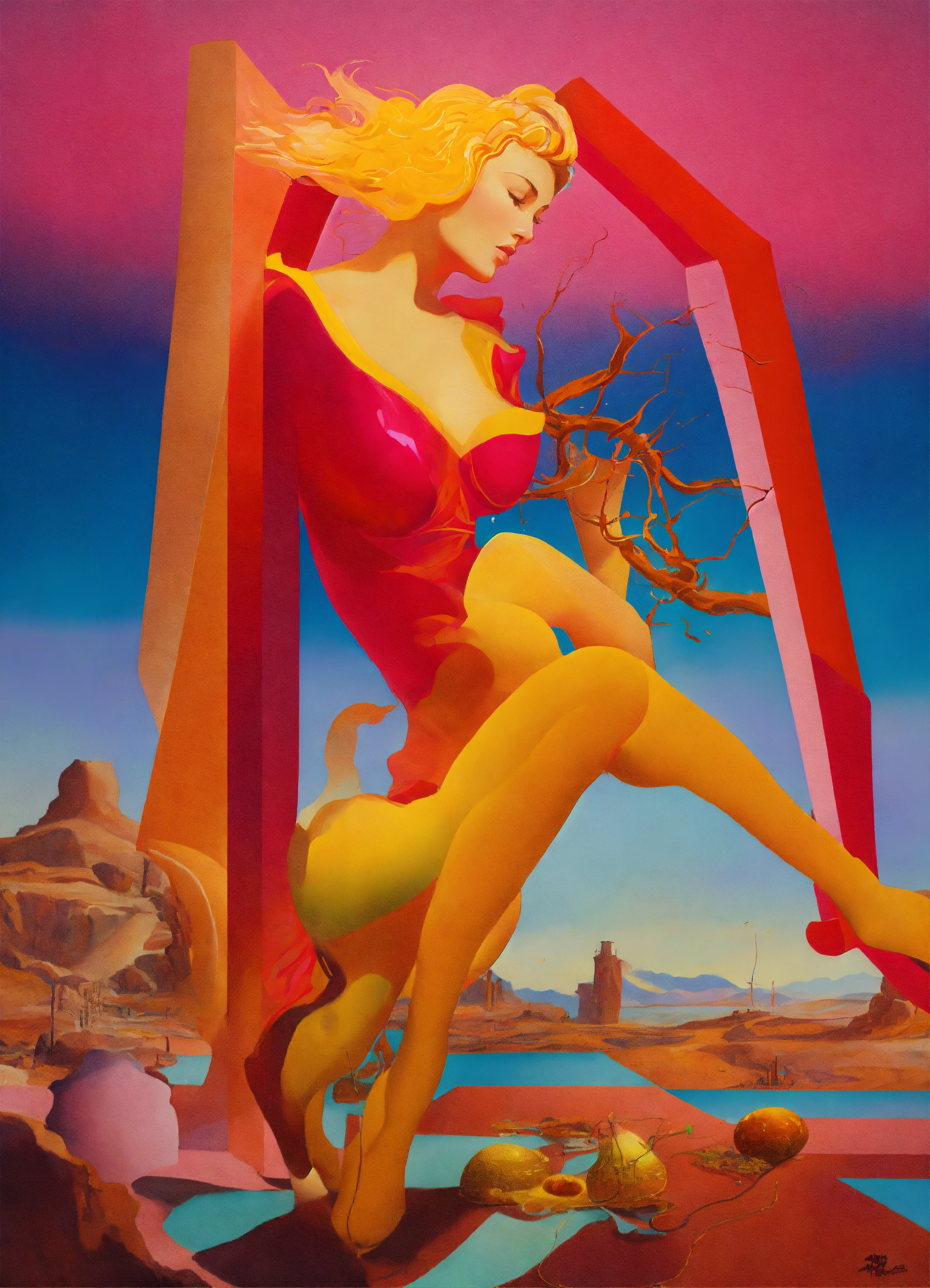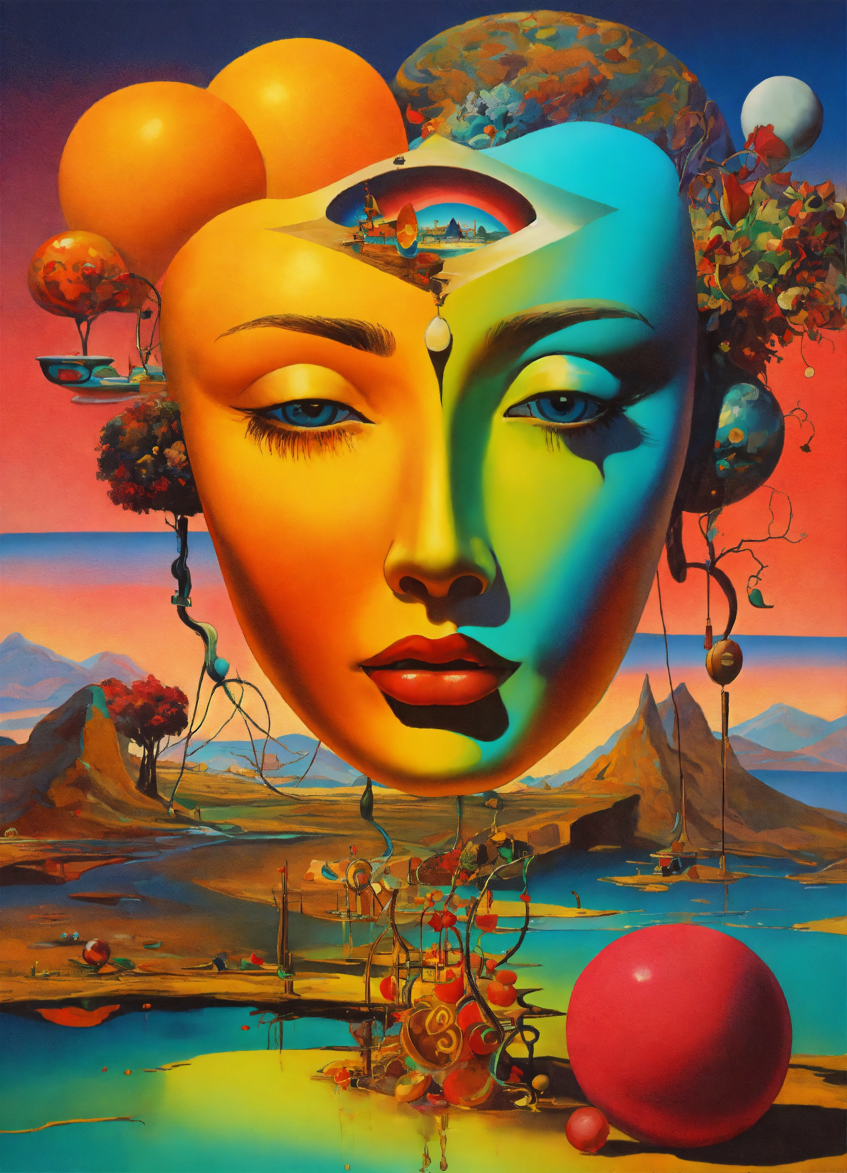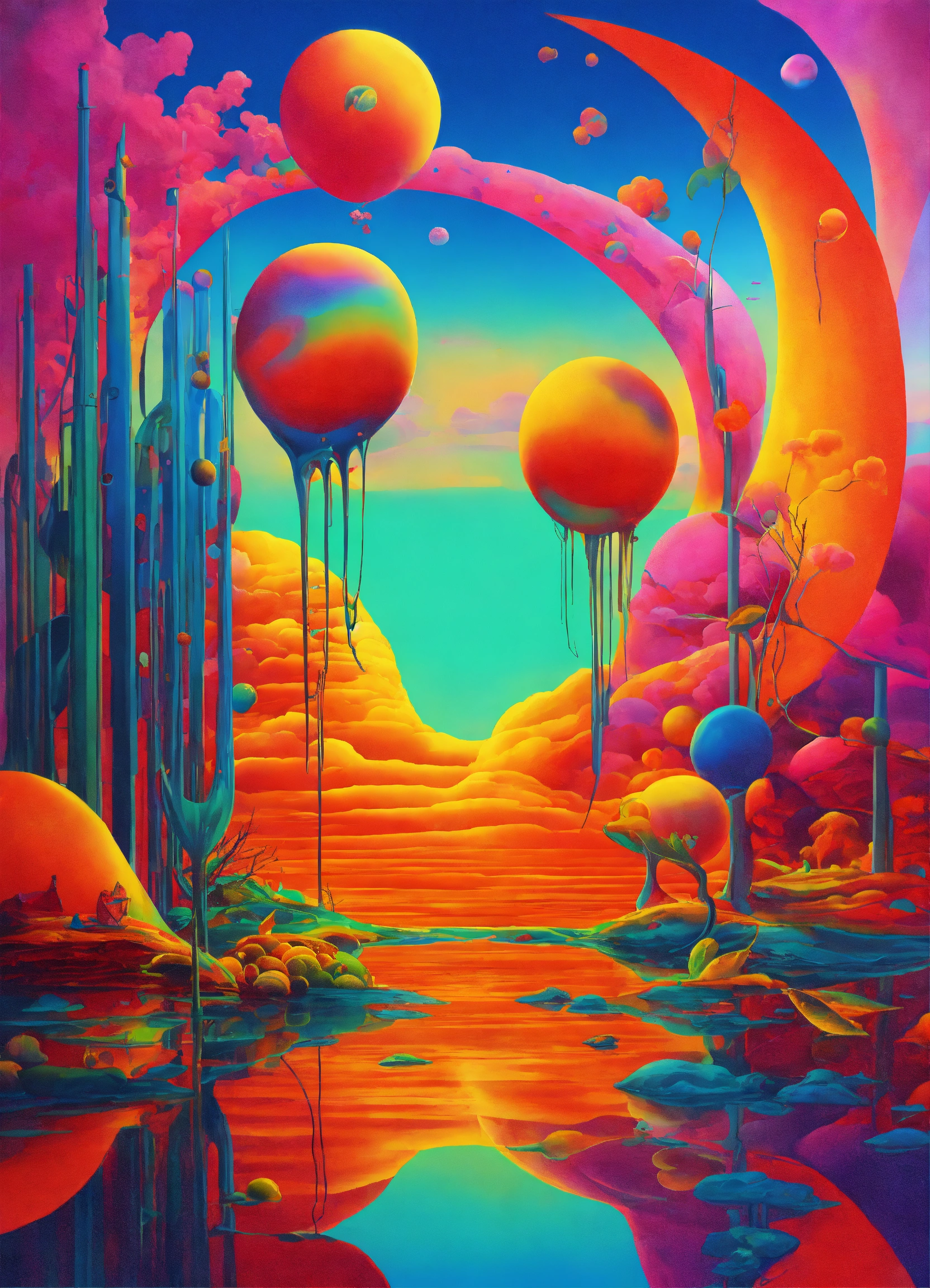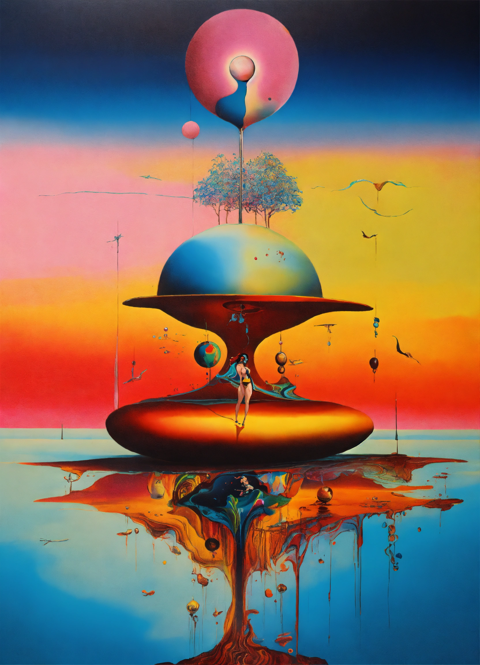 Surrealism dali style art neon colors and surrelism forms ing and yang love