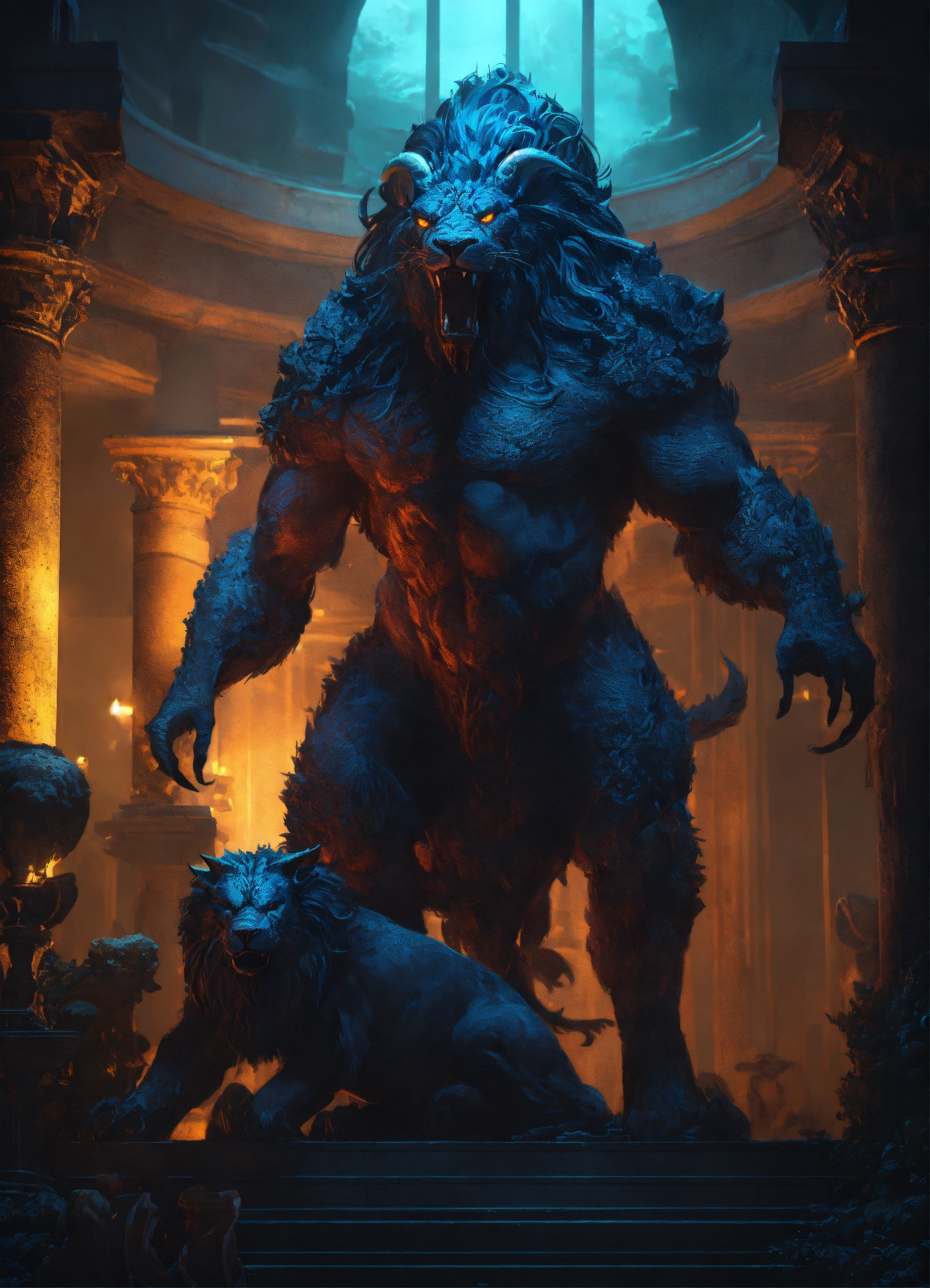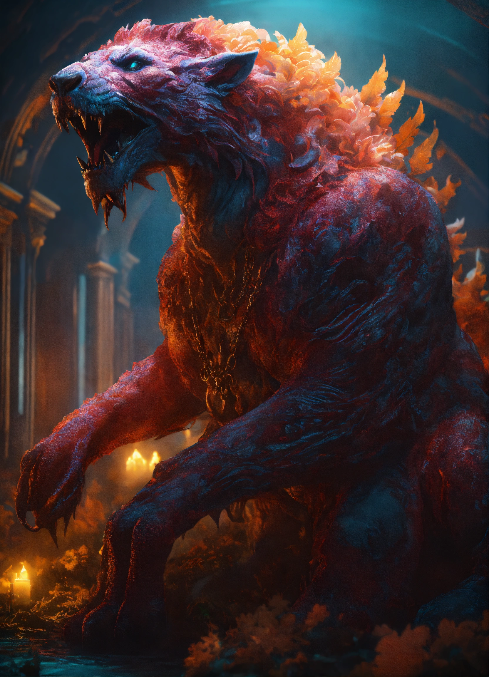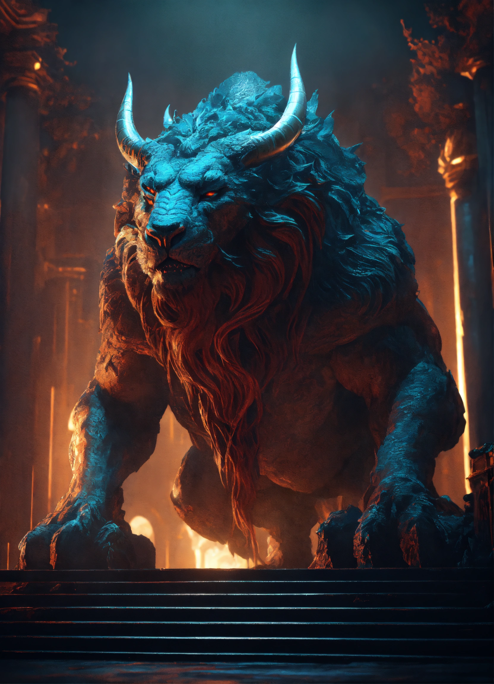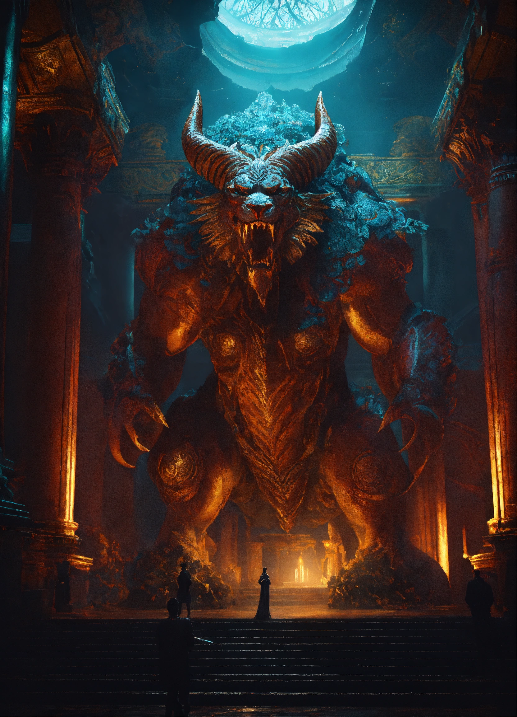 Text concept art of a colossal ancient gigantic mythical beast from the depths of the underworld, cinematic, dark forbodding atmosphere, in the style of alexandra manukyan, mystical colors, rim light, beautiful lighting, 8 k, stunning scene, raytracing, octane, trending on artstation