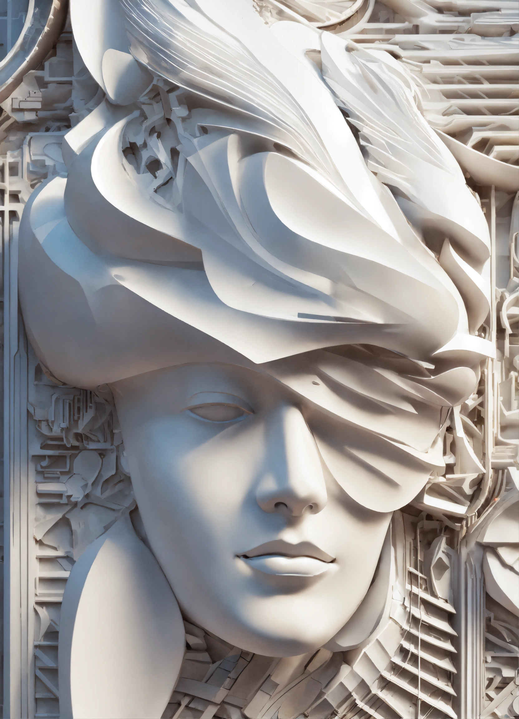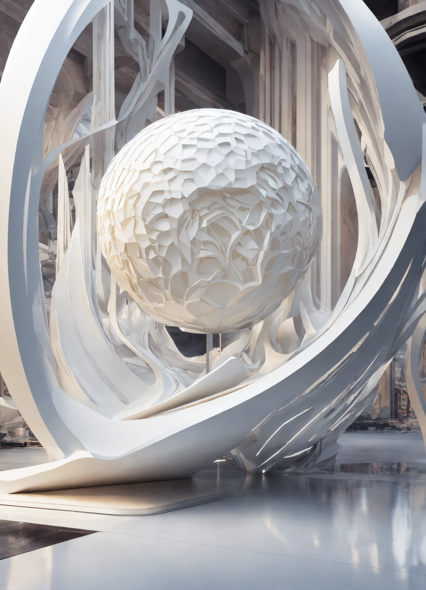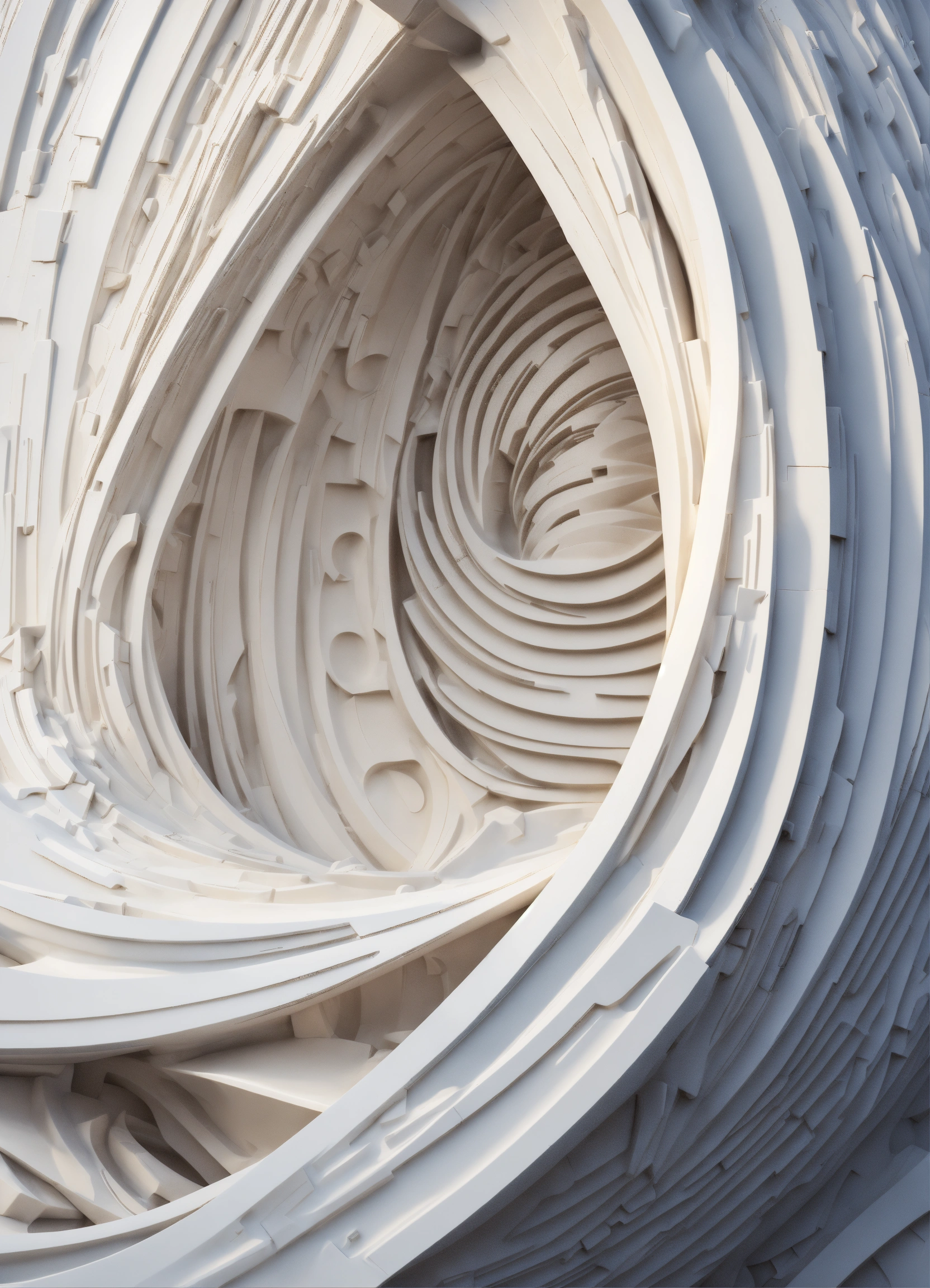 Formalist sculptures made of white plastic form futuristic bas-relief abstract forms. concept art, art station trends, highly detailed, complex, sharp focus, digital art, 8k