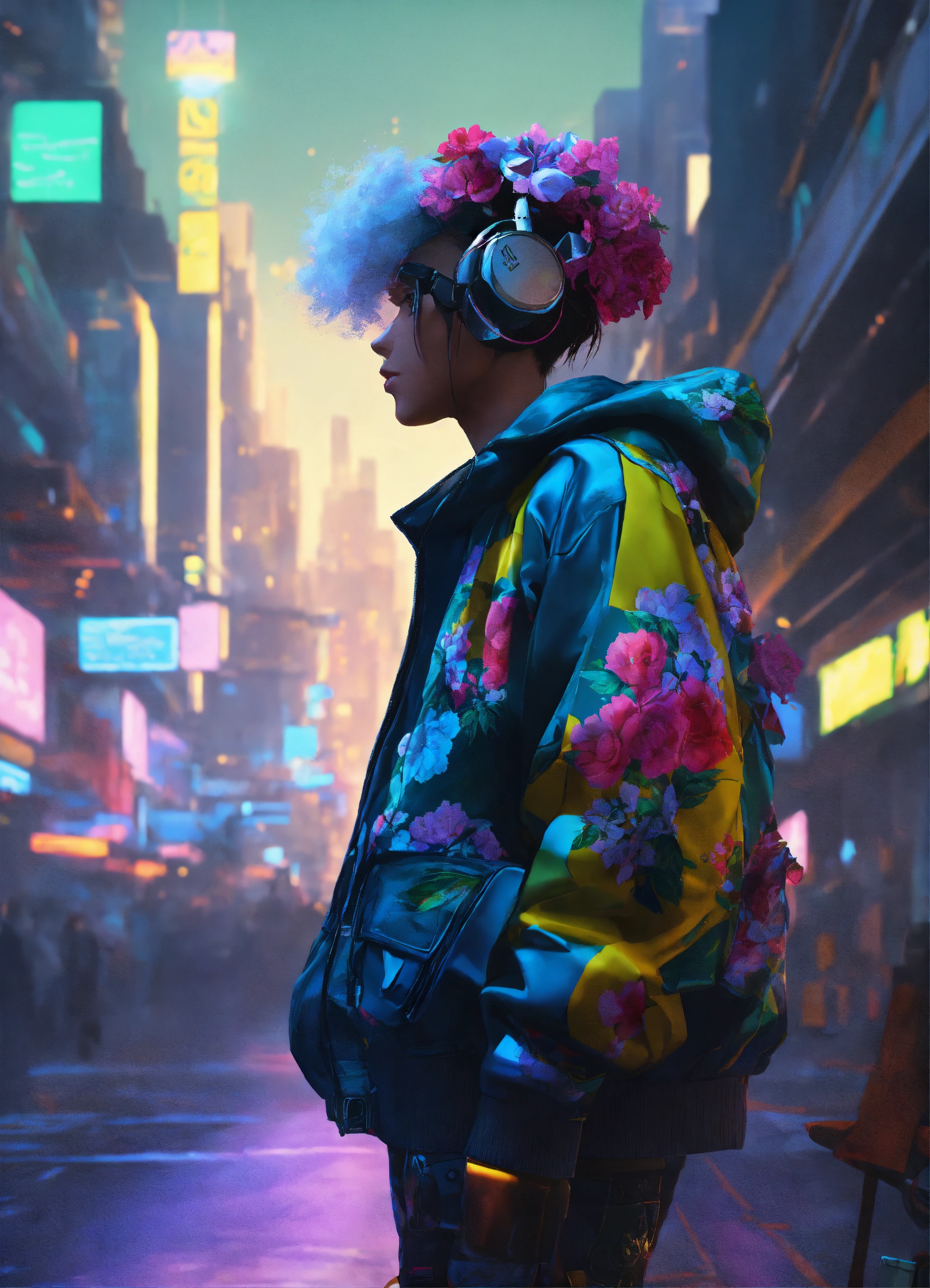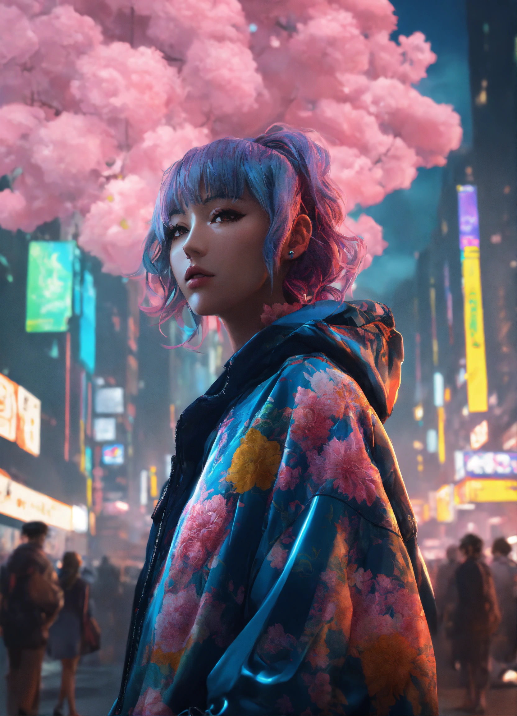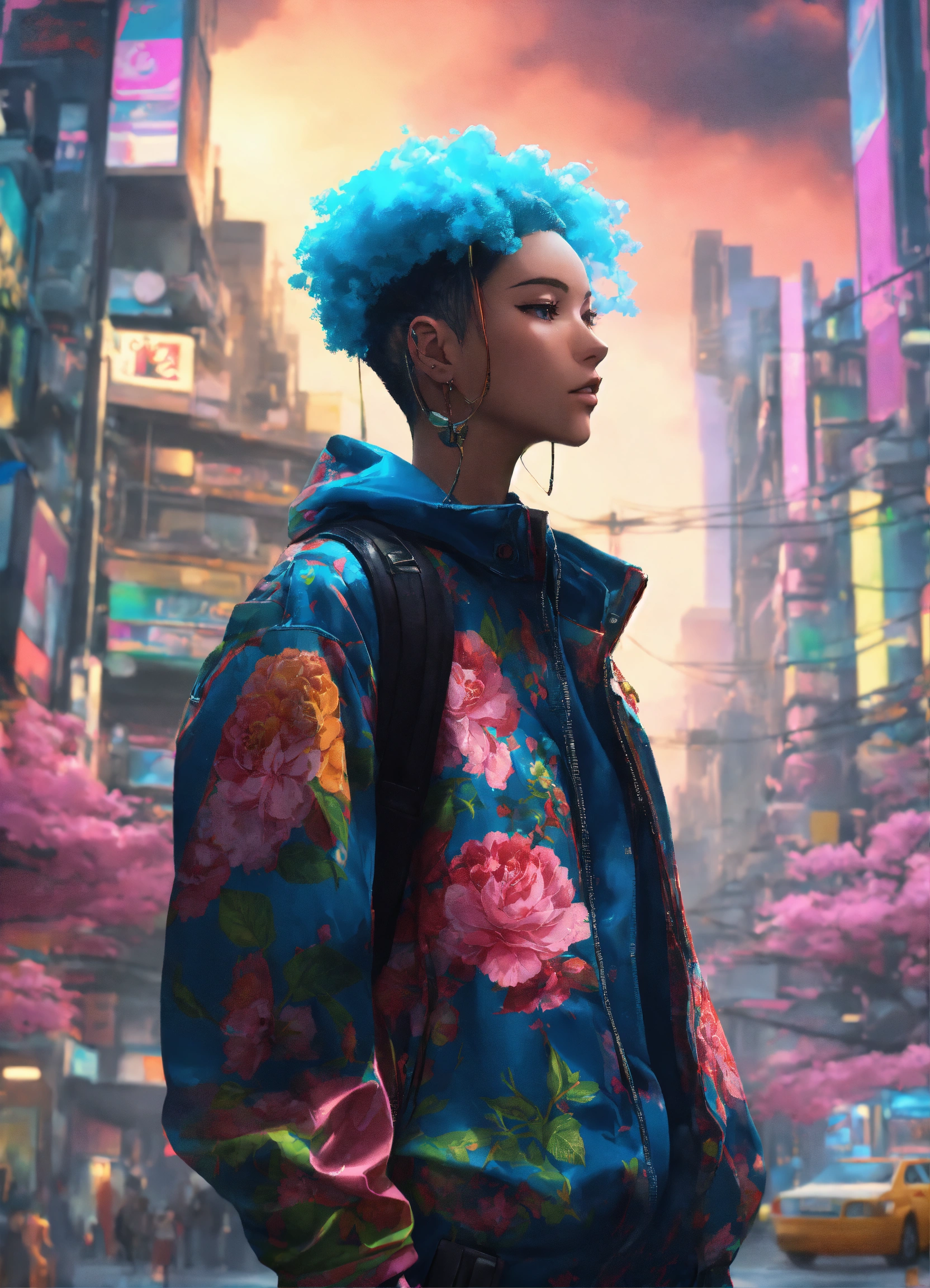 90s anime, cyberpunk style, of a person in urban floral wear, with a cloud as a head, photorealistic, volumetric lighting, 8k, highly detailed