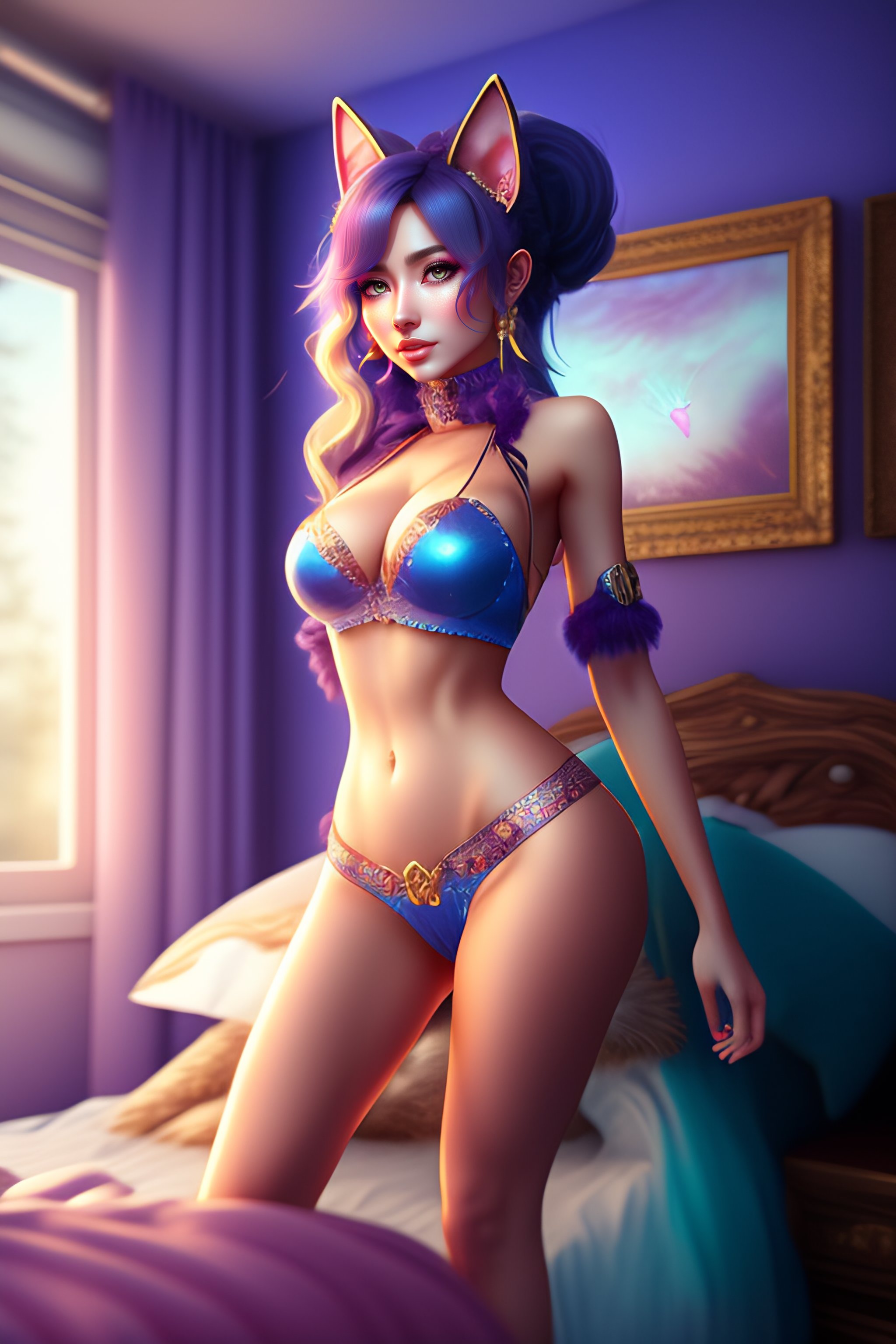 A cute catgirl in a cute sexy outfit in a bedroom