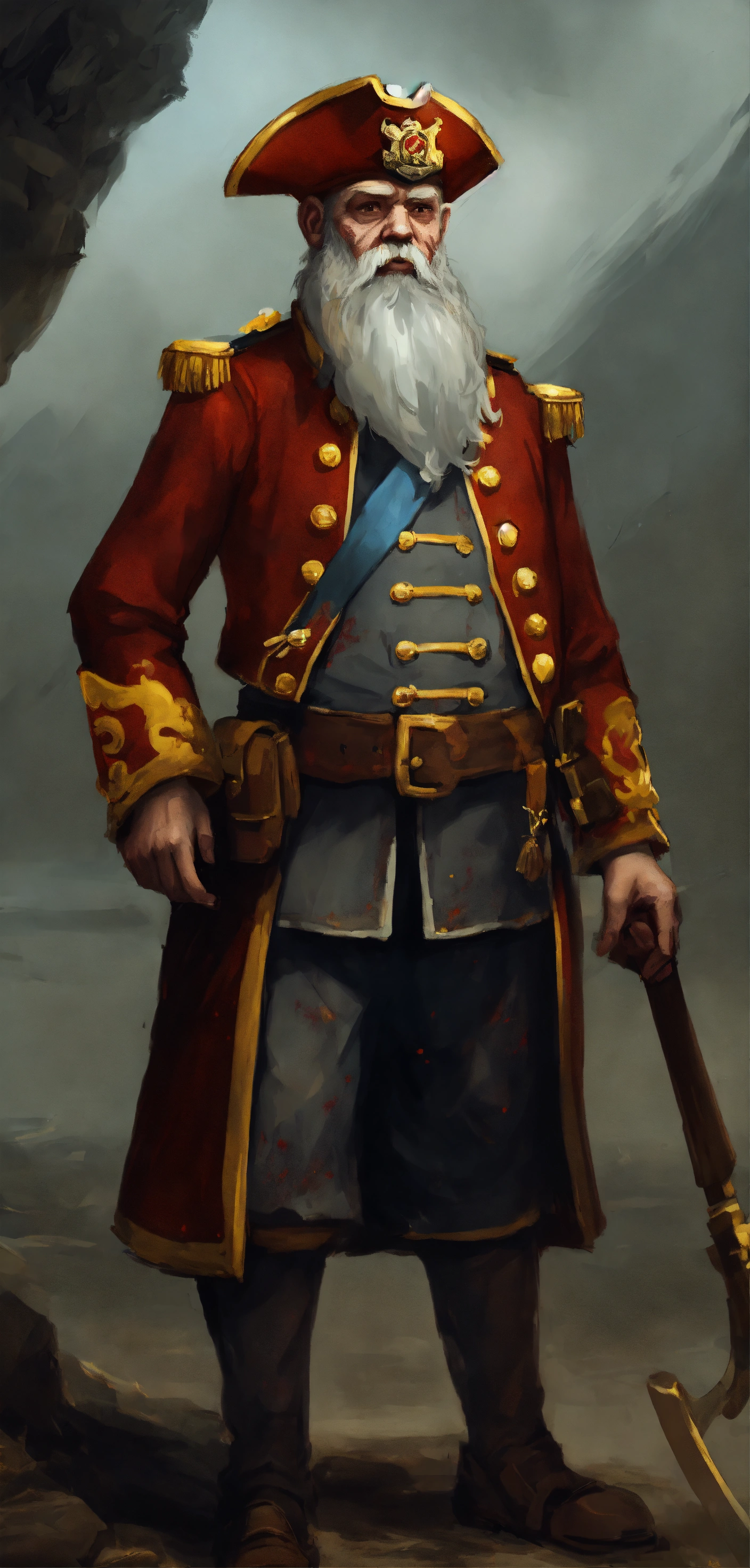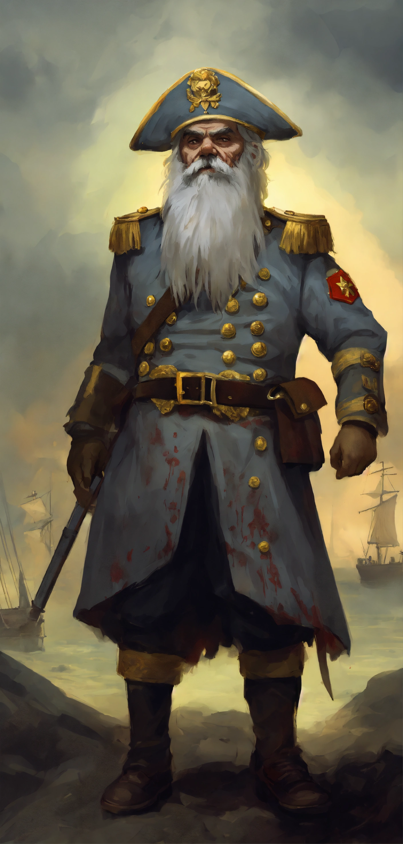 wearing 17th century naval uniform