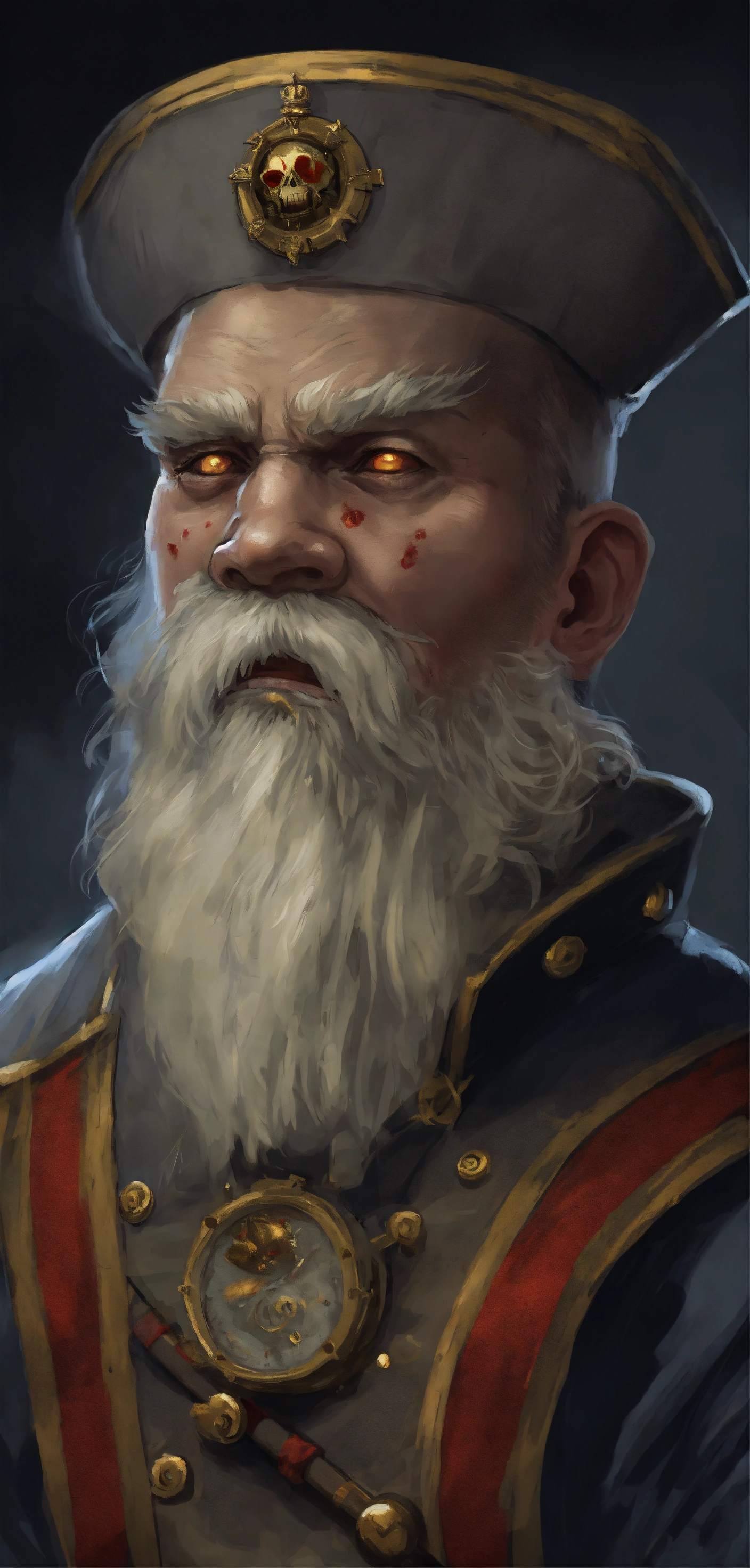 Grey skinned dwarf zombie with white beard
