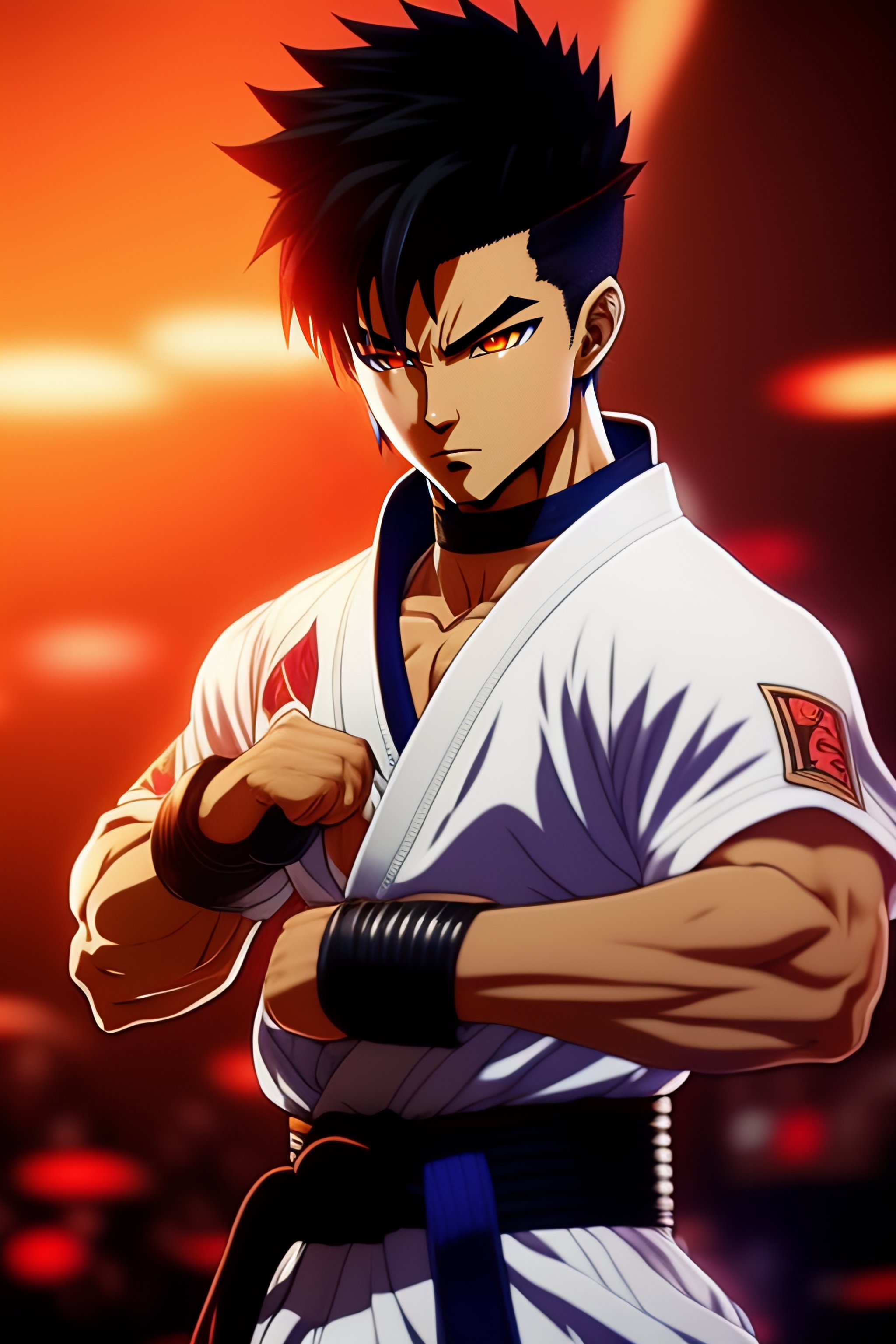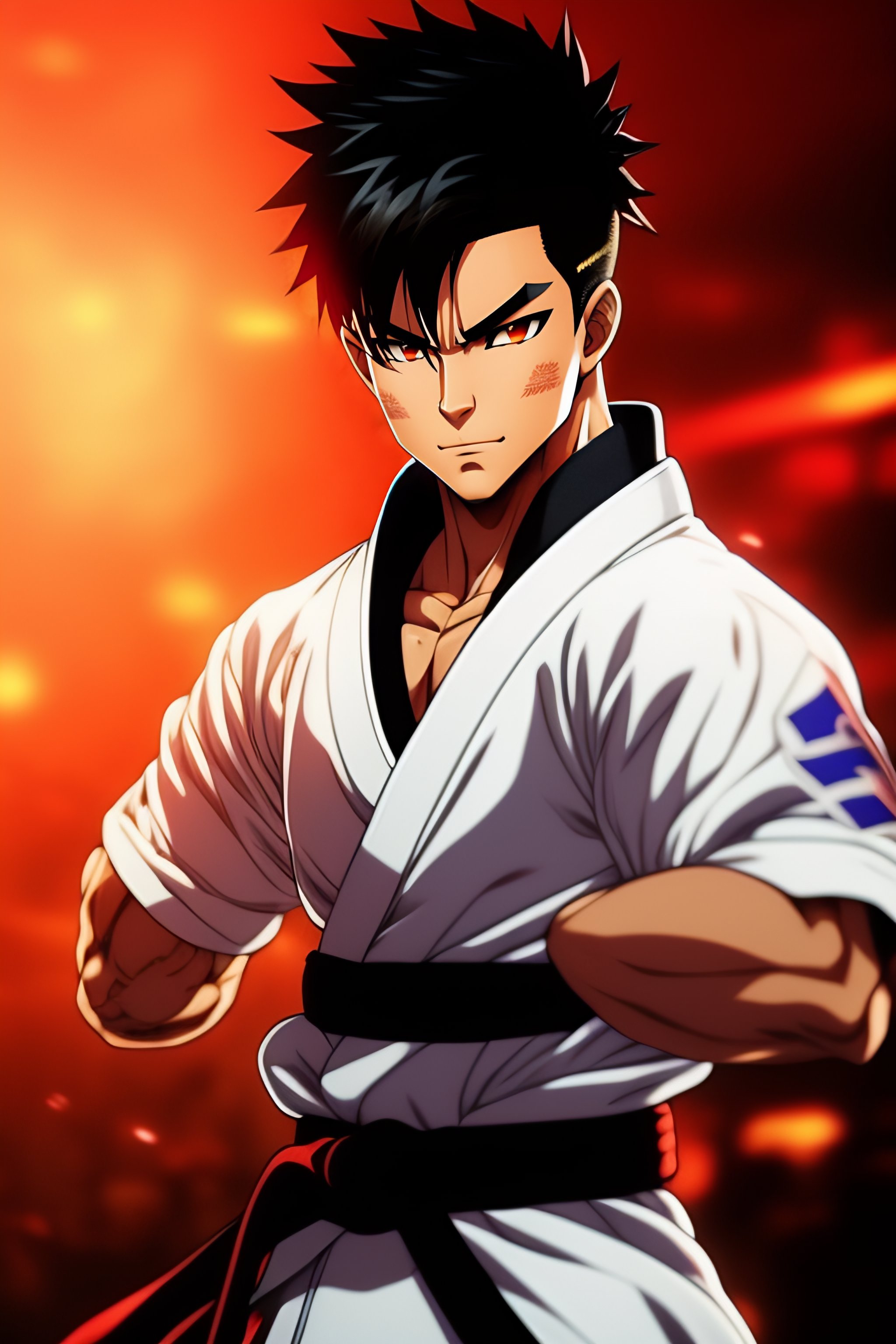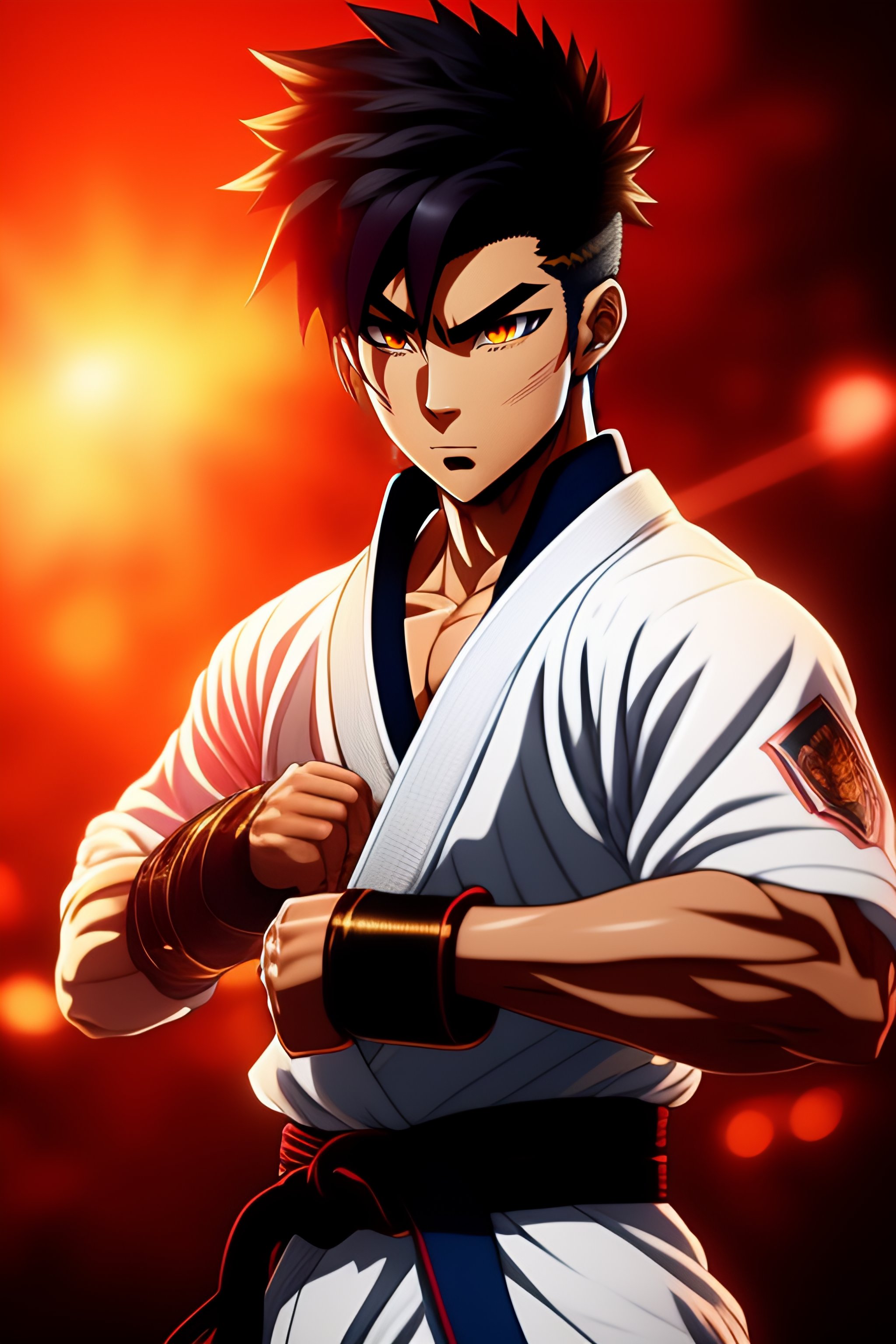 Anime character who is a scrappy and energetic young martial artist with a slender build and a determined expression. he has short, spiky hair and wears an elaborate and specialised martial arts attire.