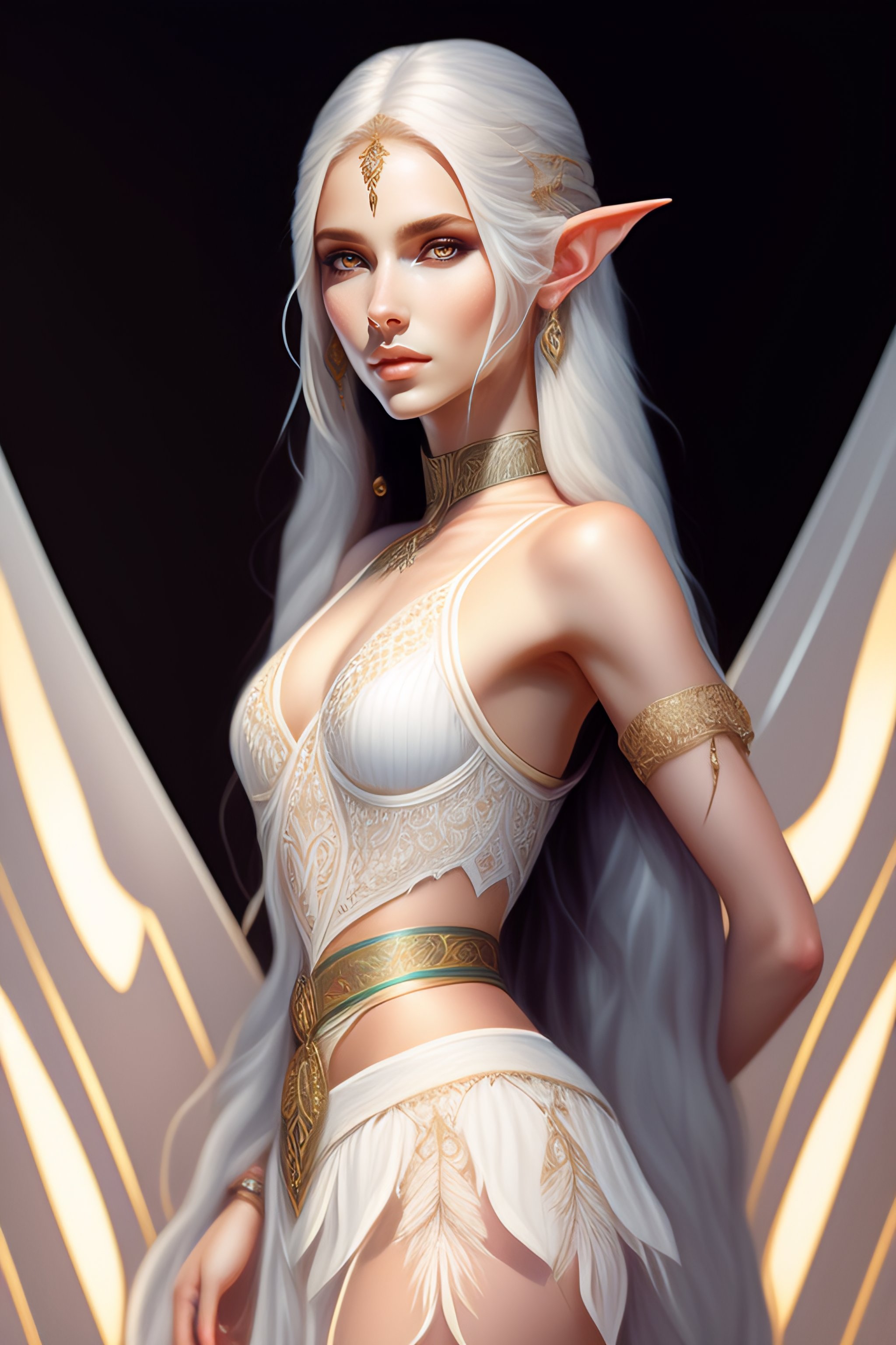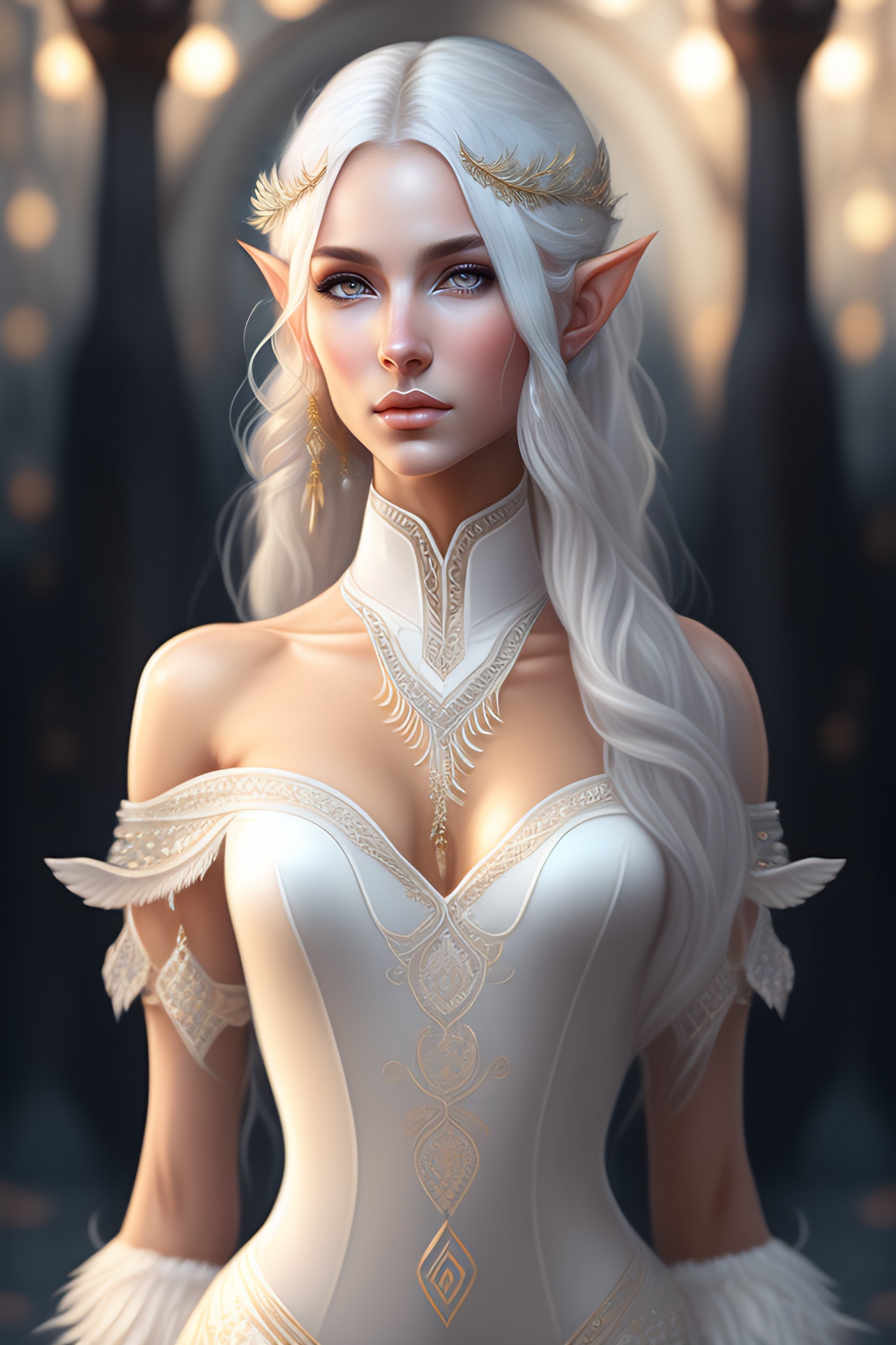 Full body portrait of a dancing beautiful female elf with gray eyes, white long hair, detailed symmetrical, intricate complexity in the art of ilya kuvshinov