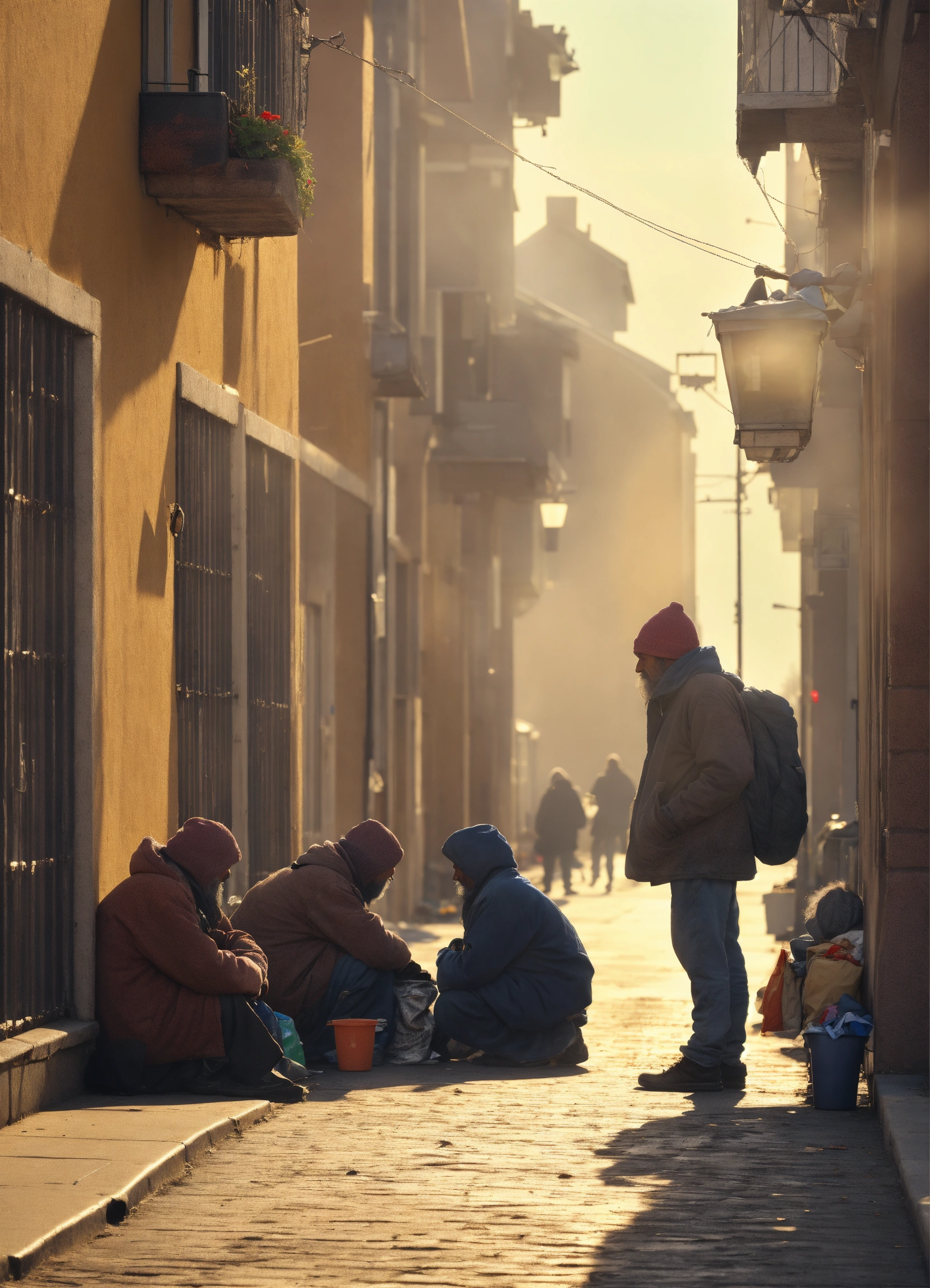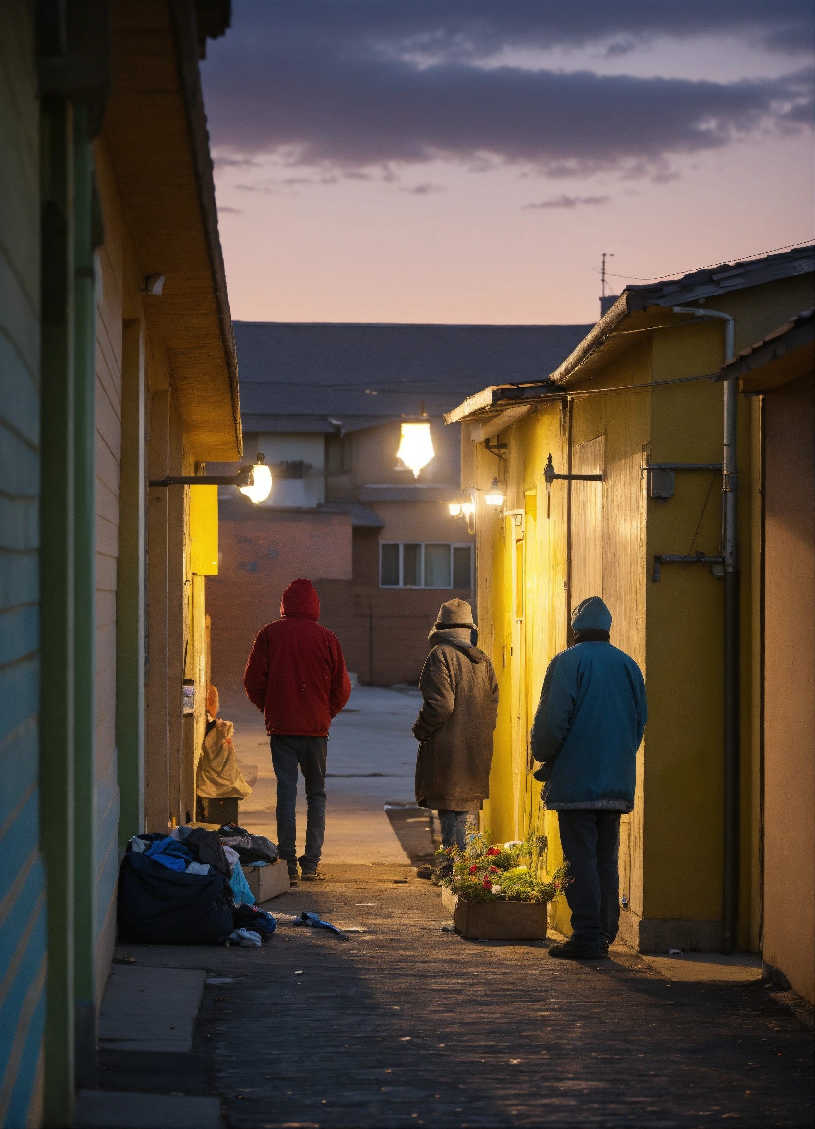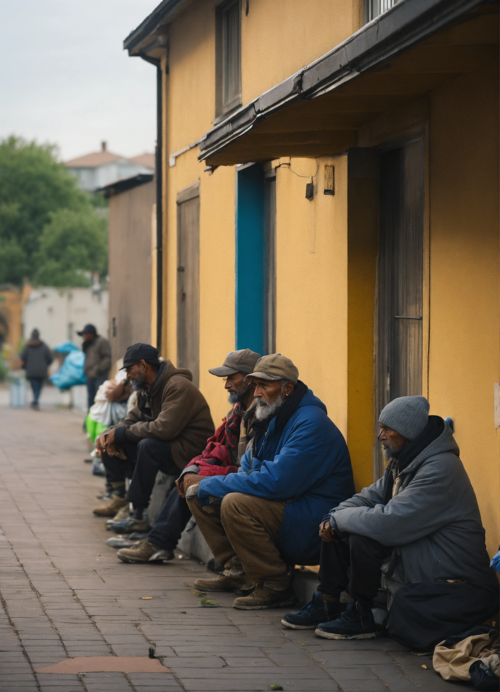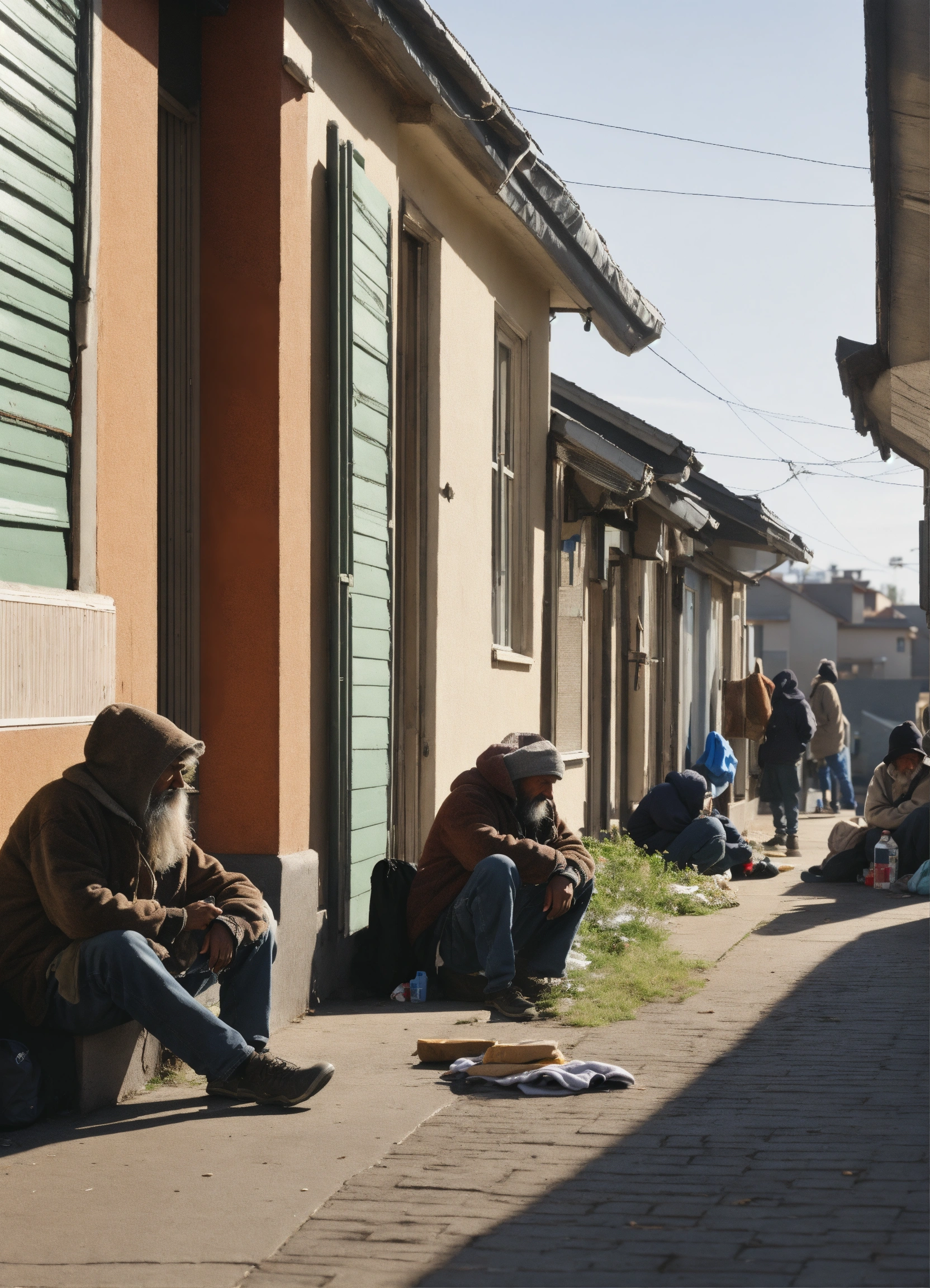 Homeless people looking at houses