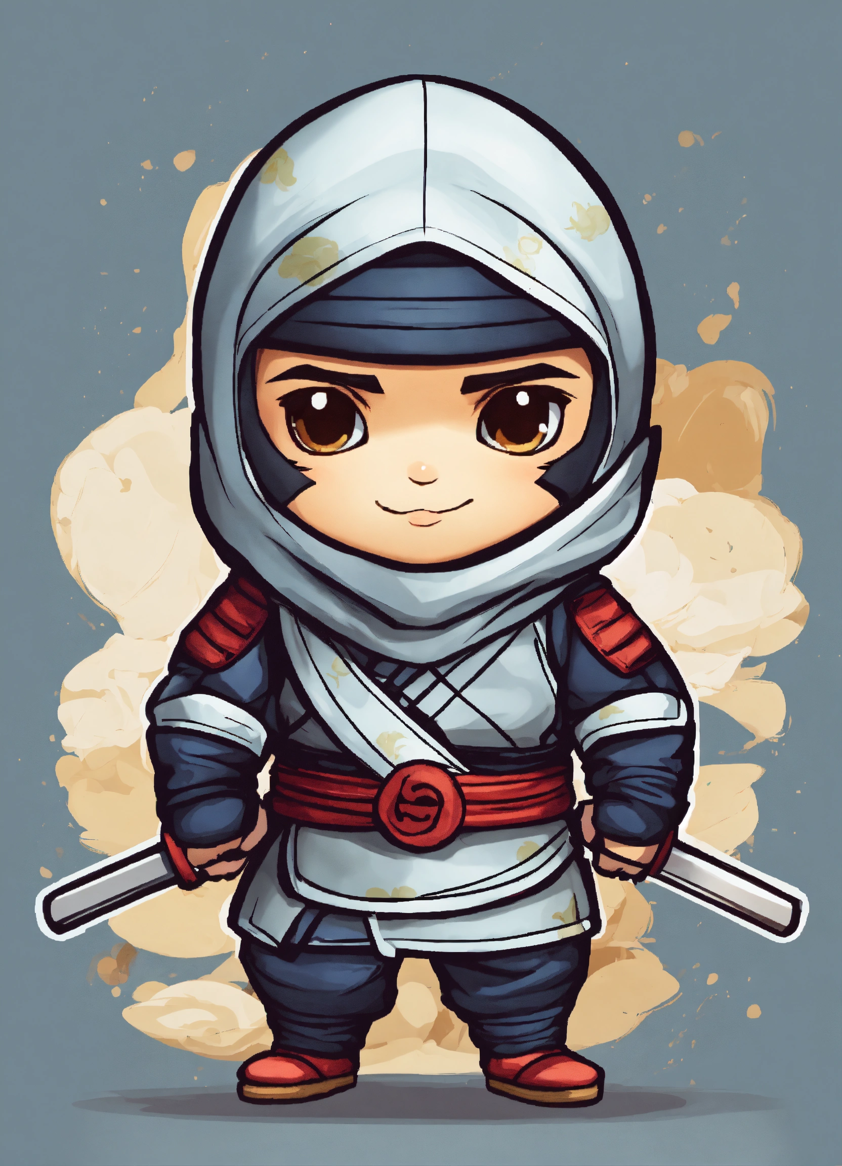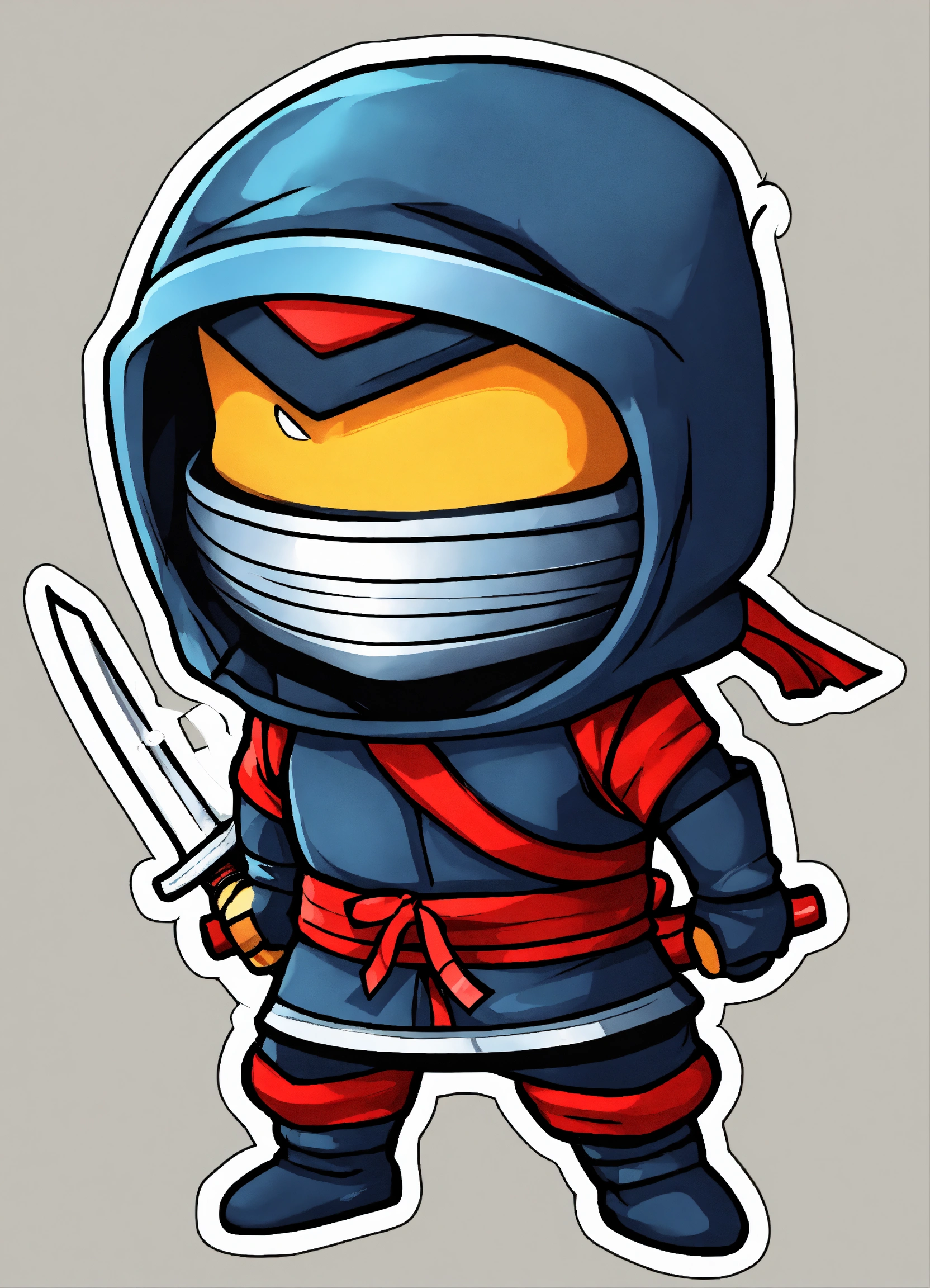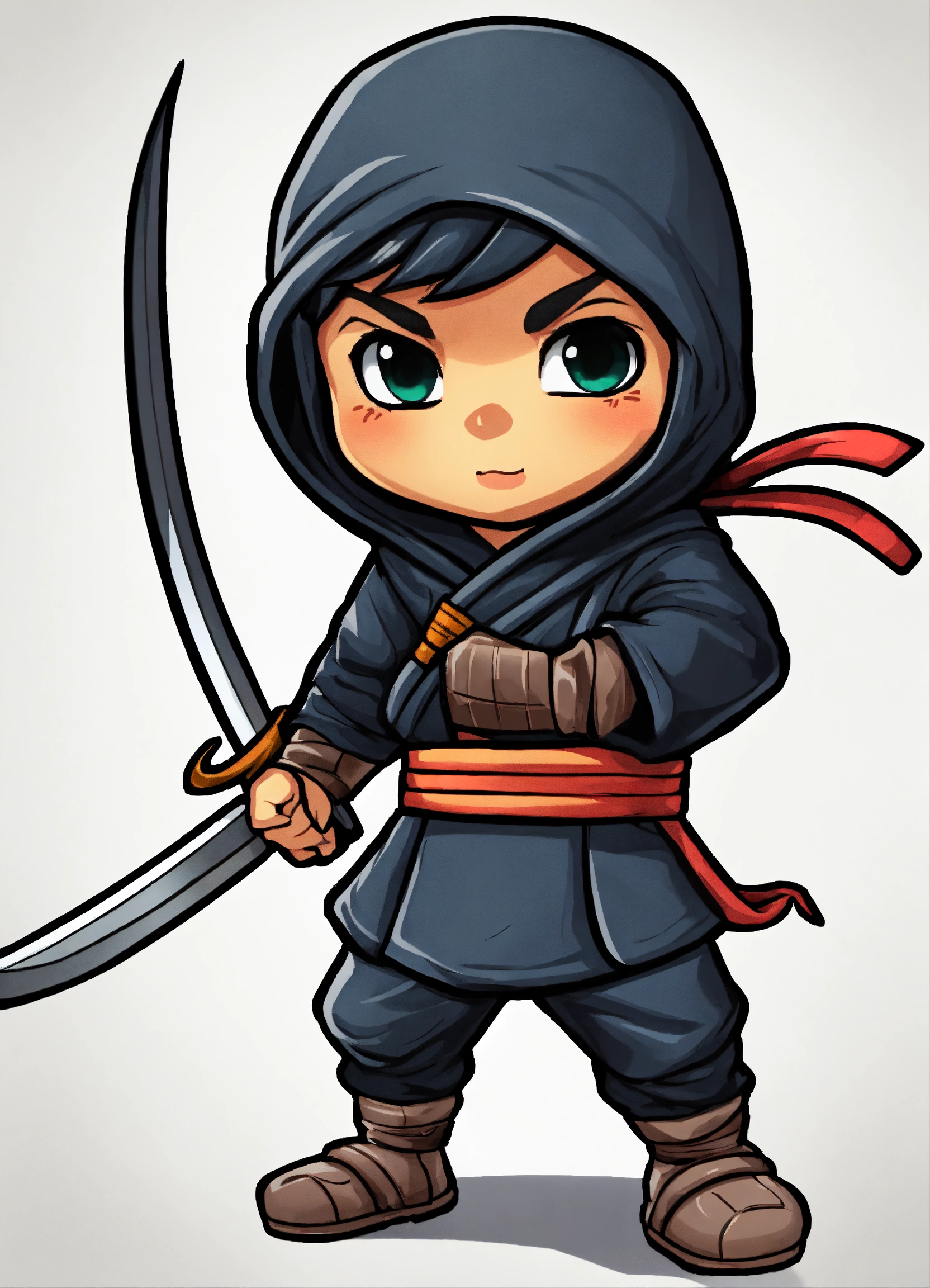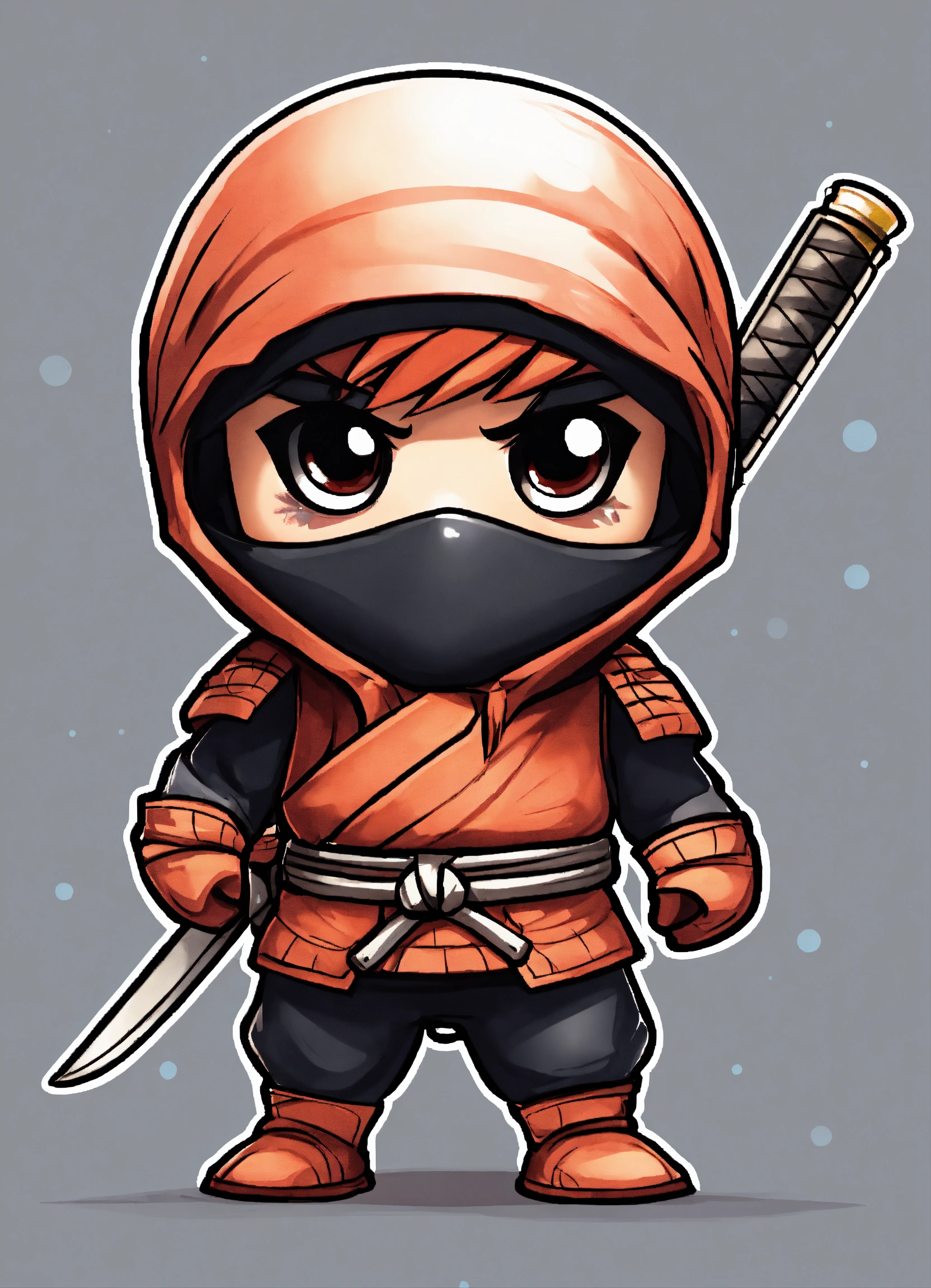Generate a cute ninja illustration, 4k resolution, cartoon-sticker style with clear lines on a pure white background suitable for a children's coloring book.