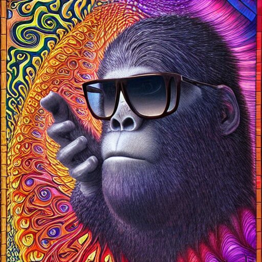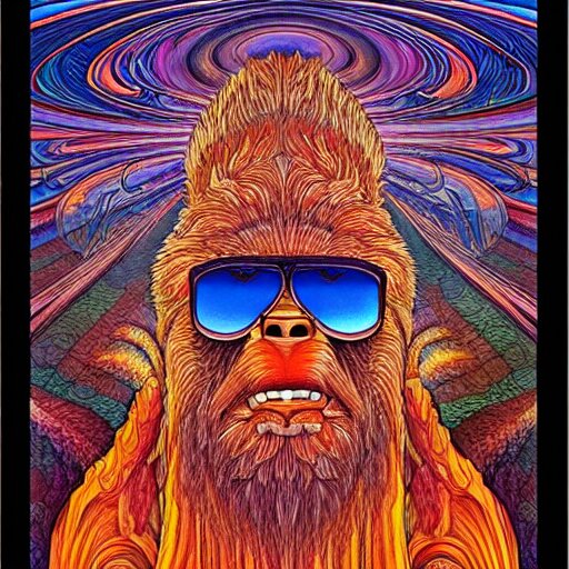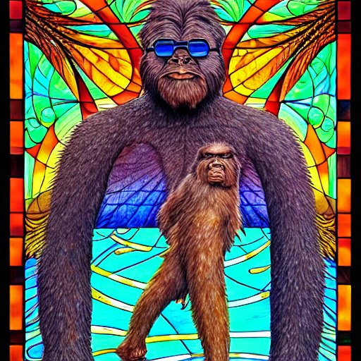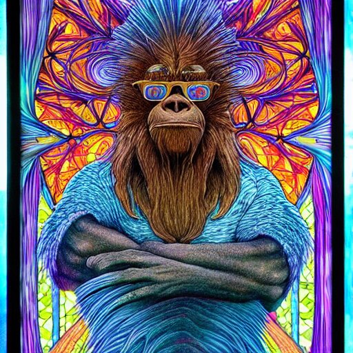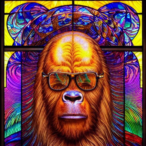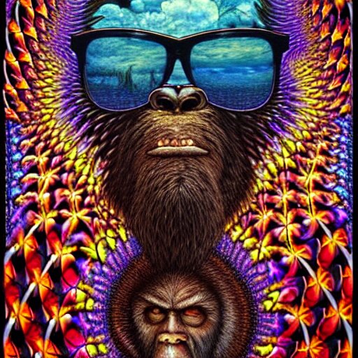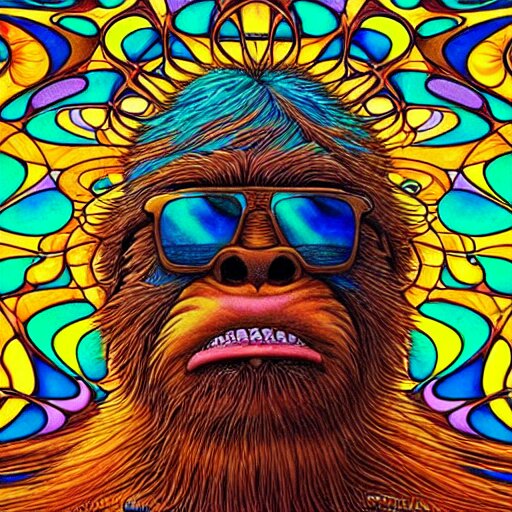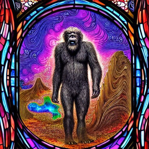 ( sasquatch, bigfoot wearing sunglasses ) ( ( ( hyper detailed masterpiece, psychedelic fractal pattern, jean giraud, digital art painting, dream wave aesthetic, ethereal, artgerm, donato giancola, tom bagshaw ) ) ) ( ( ( ( stained glass, ink painting ) ) ) )